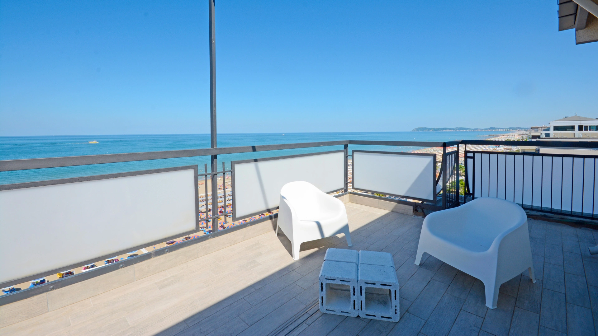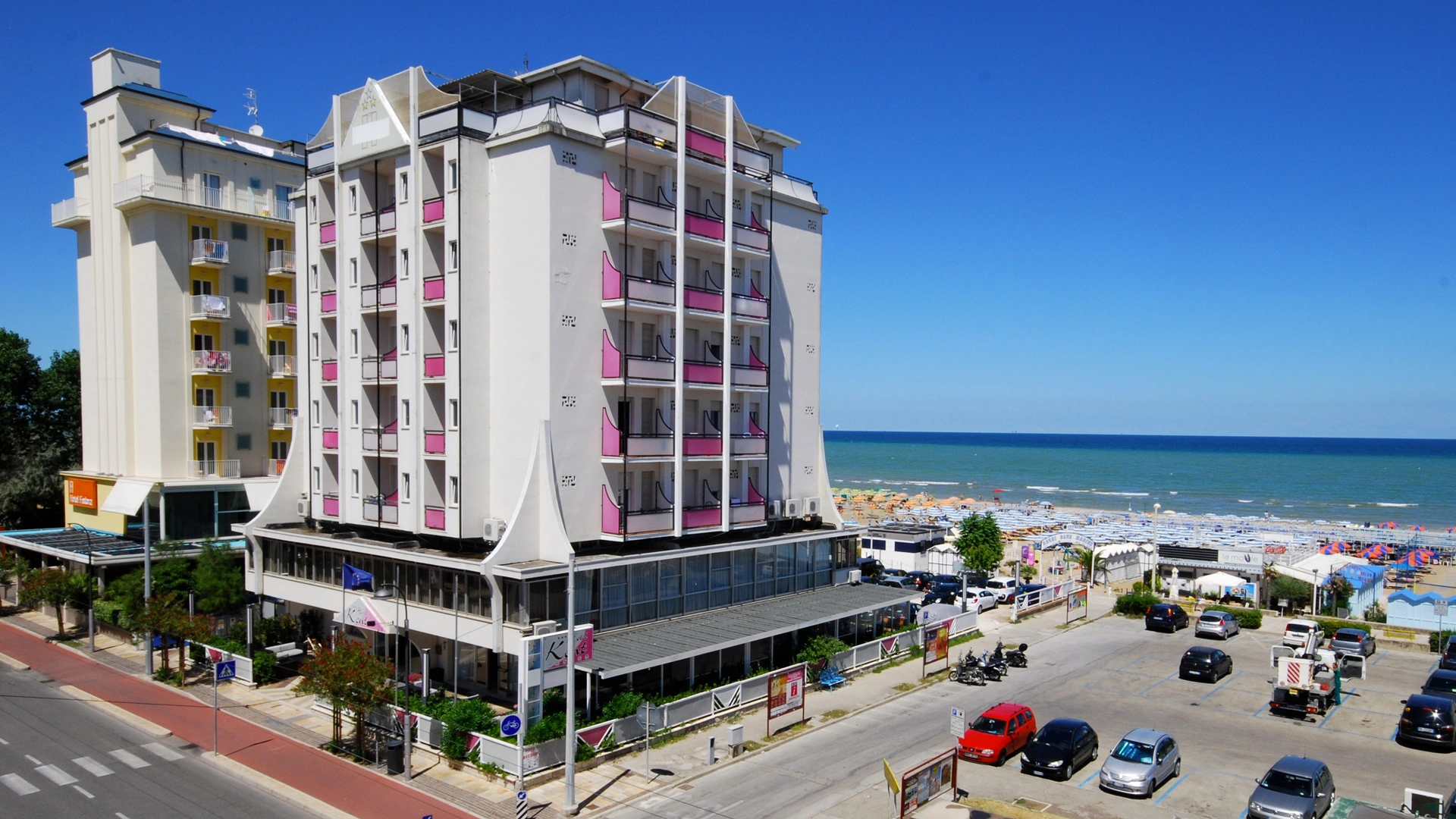 L'hôtel est situé à Riccione en face de la plage, donnant directement sur la promenade piétonne. Cela vous permet de rejoindre la mer en toute sécurité sans traverser de routes. Piazzale Roma et Viale Ceccarini sont à environ 15 minutes en bus (n. 11) ou 5 en voiture.