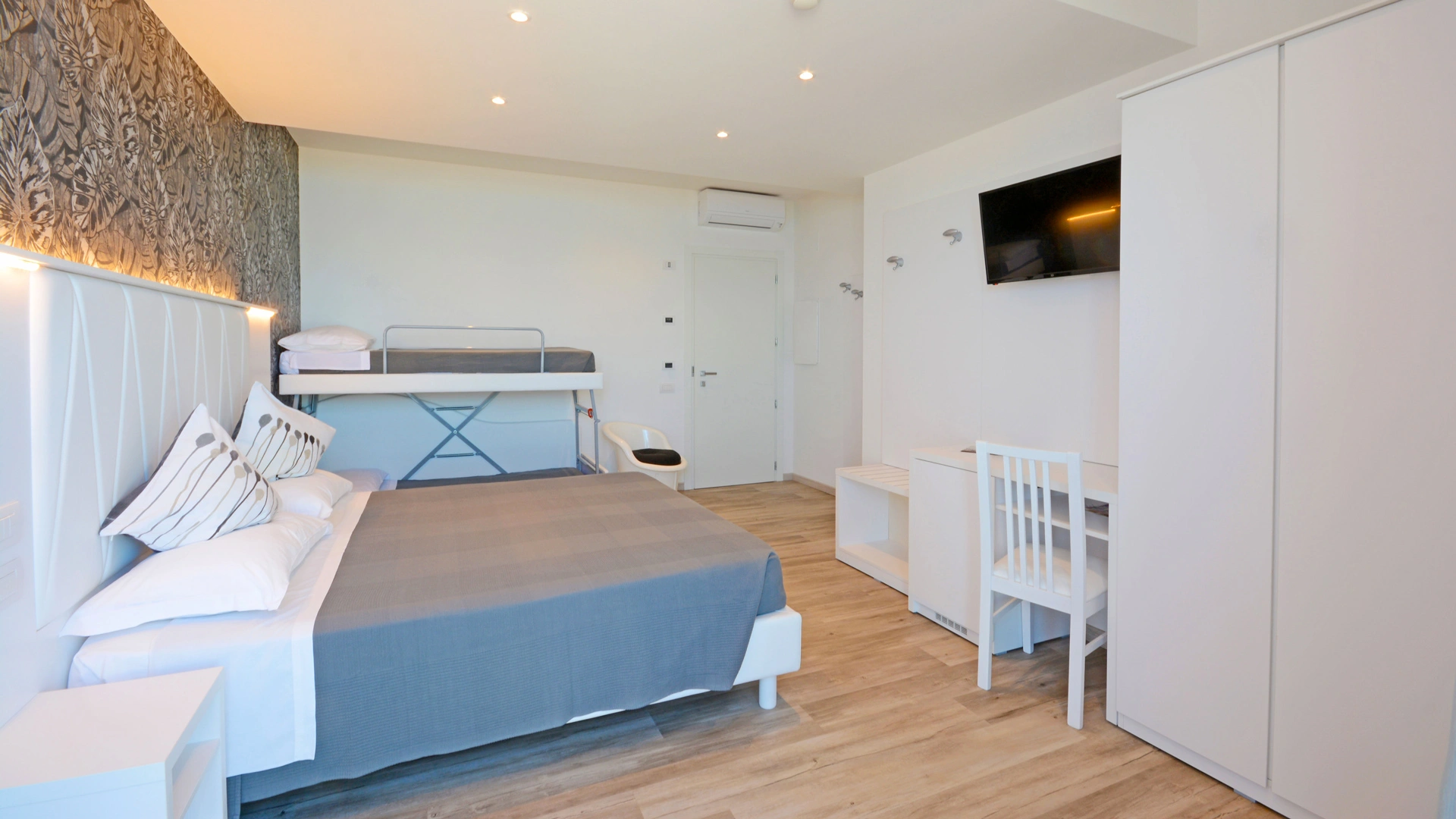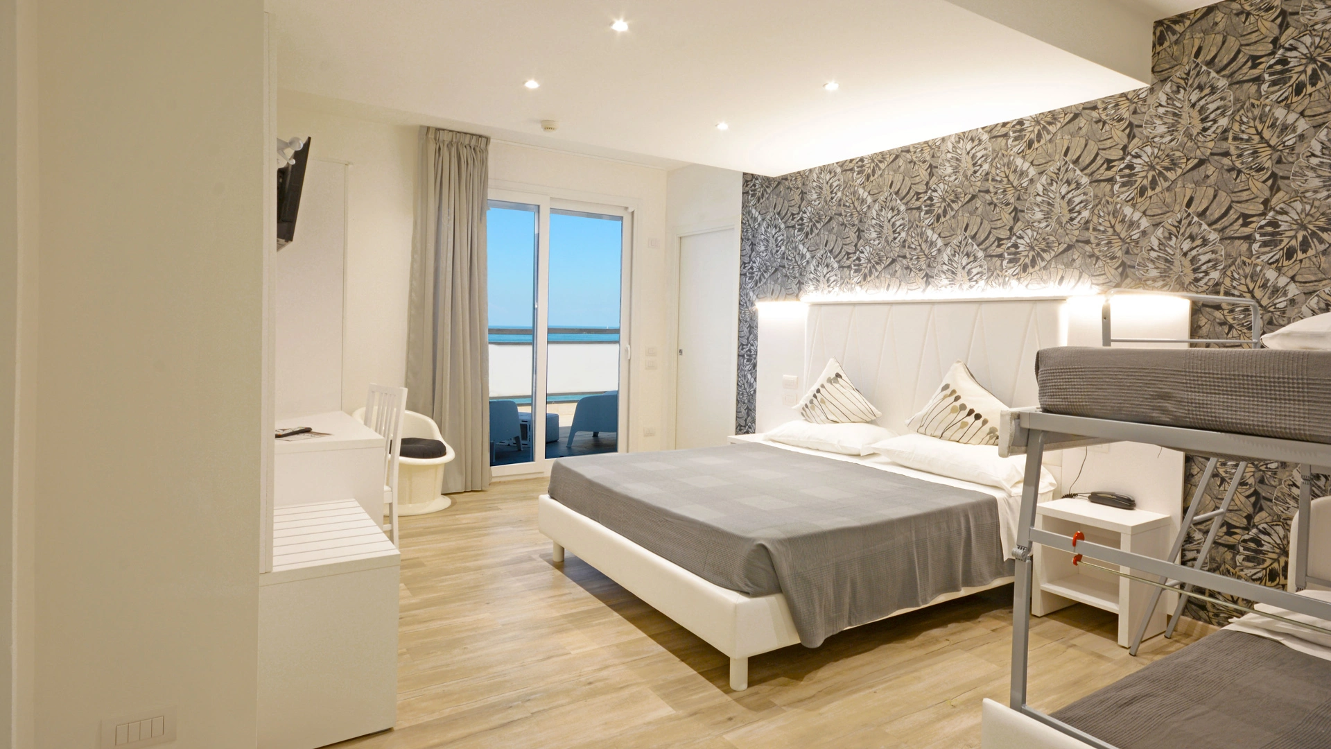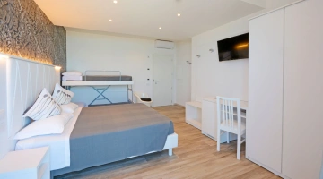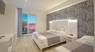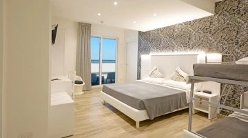 Toutes les chambres sont équipées d'un balcon avec vue mer, climatisation indépendante, téléphone, salle de bain privée avec douche et sèche-cheveux, coffre-fort, Wi-Fi fibre 100 Mbit/s, TV LED 32" (Smart TV dans certaines chambres). Petit-déjeuner en chambre. chambre payante.