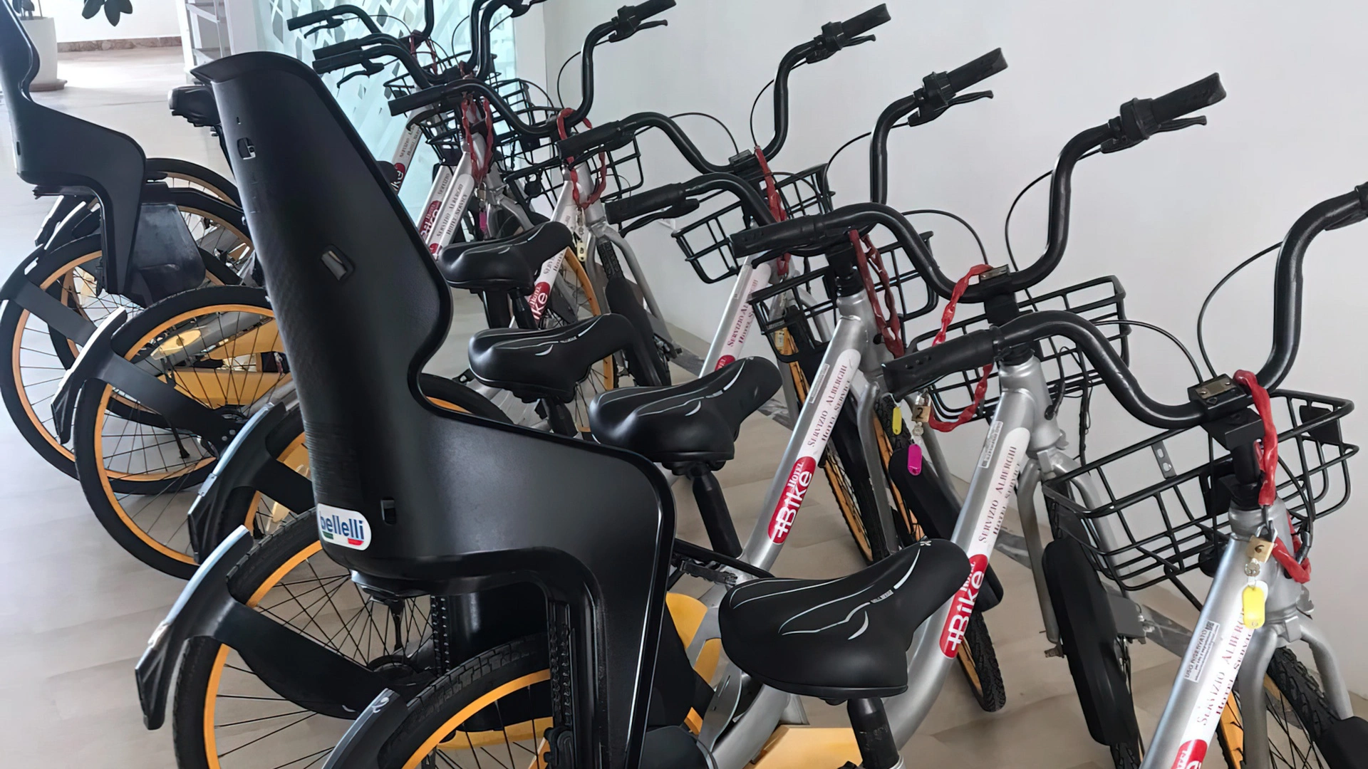 En hôtel : vélos pour enfants de 6/10 ans et vélos avec sièges enfants.