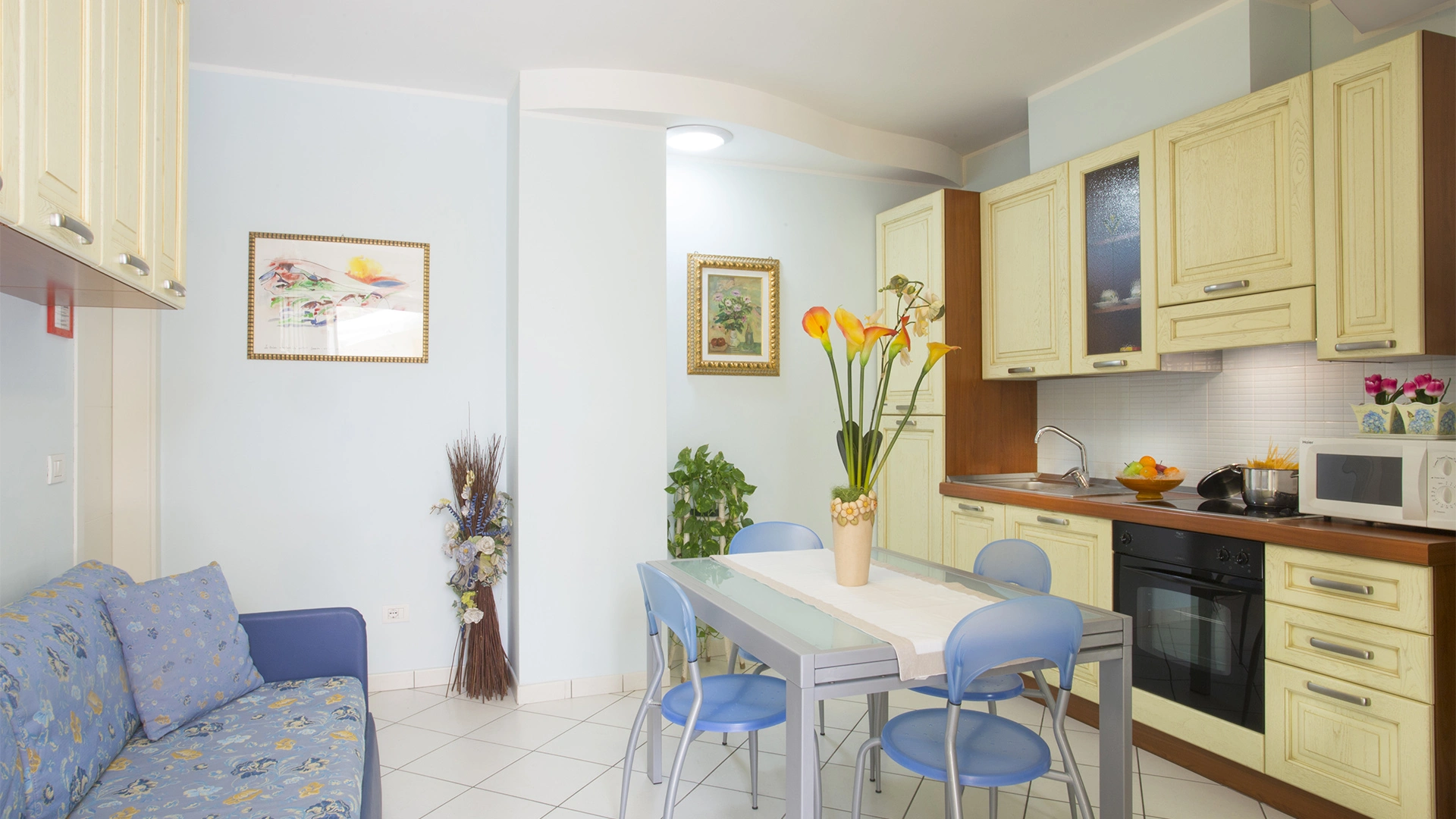 Tous les appartements disposent d'au moins un balcon et sont équipés de climatisation, Smart TV avec chaînes Sky, Wi-Fi, coffre-fort, téléphone, salle de bain avec cabine de douche et sèche-cheveux. La cuisine est complète avec appareils électroménagers: lave-linge, lave-vaisselle, réfrigérateur et congélateur, four, micro-ondes. Sont inclus le rangement de l'appartement en milieu de semaine, le nettoyage final et un approvisionnement hebdomadaire en linge de lit, de toilette et de cuisine, comprenant également un peignoir et une serviette de plage. Sur demande et payant : ménage quotidien et changement supplémentaire du linge, de la serviette de plage et du peignoir.