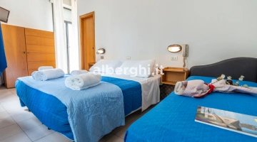 L'hôtel est situé à Rimini, dans le quartier de Marina Centro, à quelques pas de la Piazzale Kennedy et à quelques minutes à pied de la plage. Son emplacement est idéal pour découvrir à pied les principales attractions de la ville: la gare et le port fluvial de Rimini sont accessibles en 15 minutes, et le centre-ville en 20 minutes.