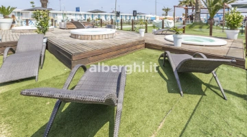 L'hôtel a conclu un accord avec Bagno Tiki n° 26, équipé de jacuzzis, bar de plage, espace fitness, bar, restaurant, location de pédalos et de paddle, espace animaux, cours de sport et possibilité de livraison de repas sous le parasol.