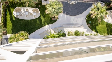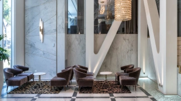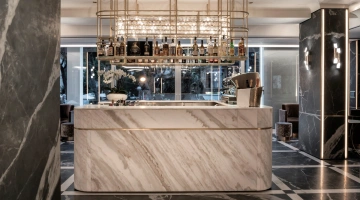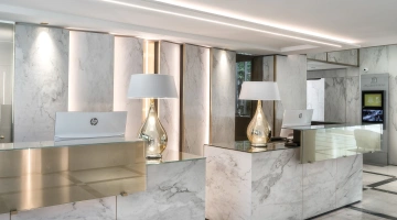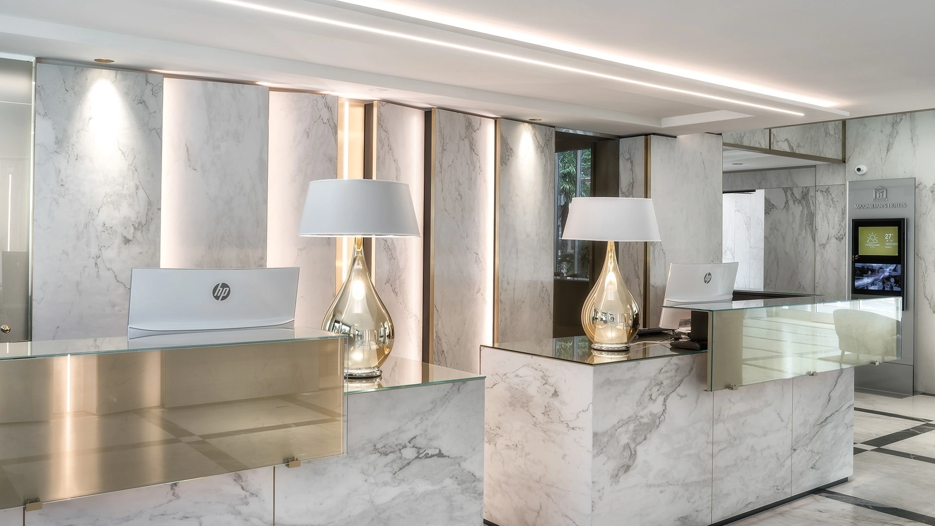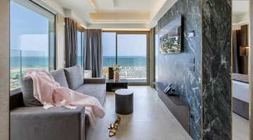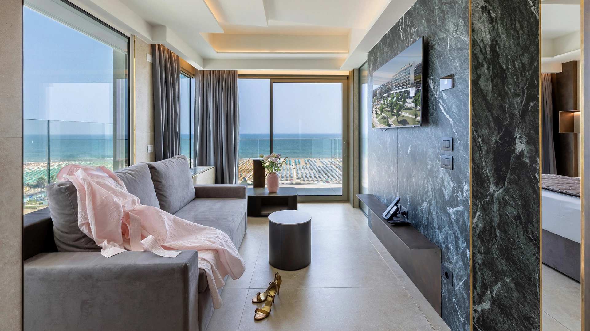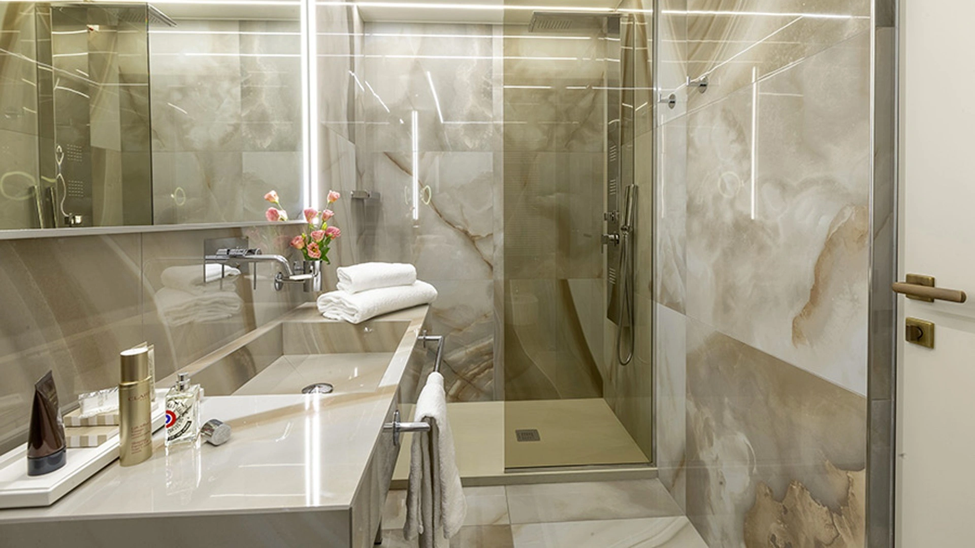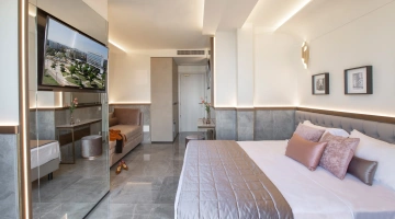 SUITE LUXURY: grandes suites avec vue panoramique au dernier étage de l'hôtel, ornées de marbre statuaire et dotées d'équipements de qualité.