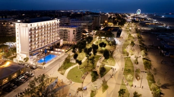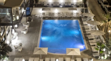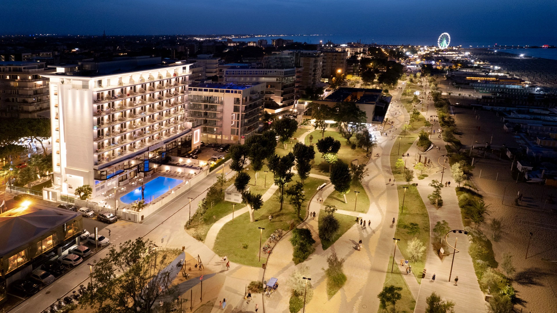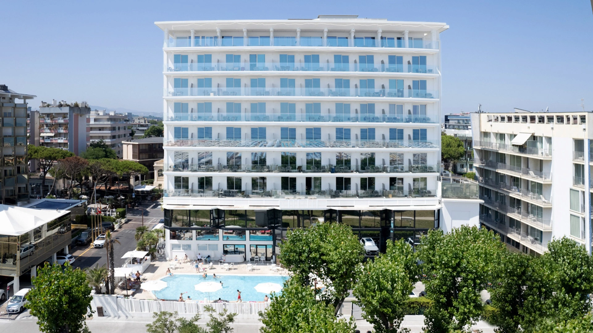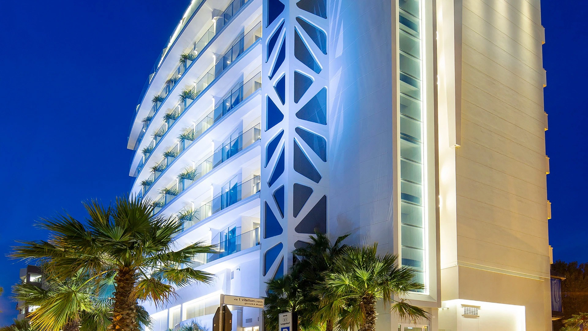 L'hôtel est situé dans le quartier Marina Centro, Viale Vespucci, dans la partie la plus animée du front de mer de Rimini. La plage se trouve à quelques mètres, tandis que le centre historique de Rimini est à seulement 15 minutes à pied.