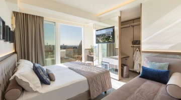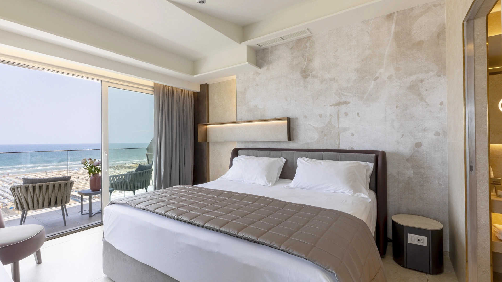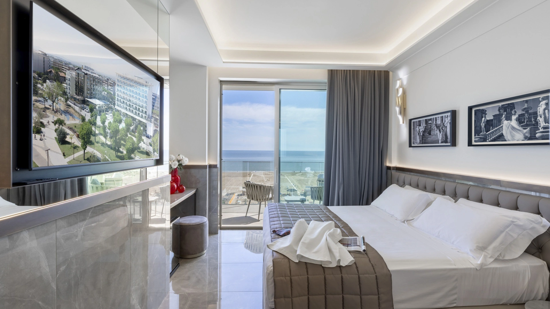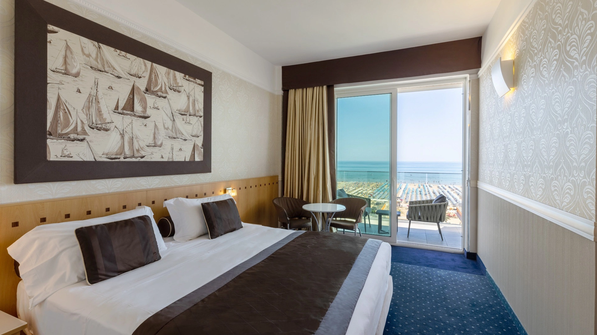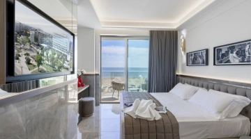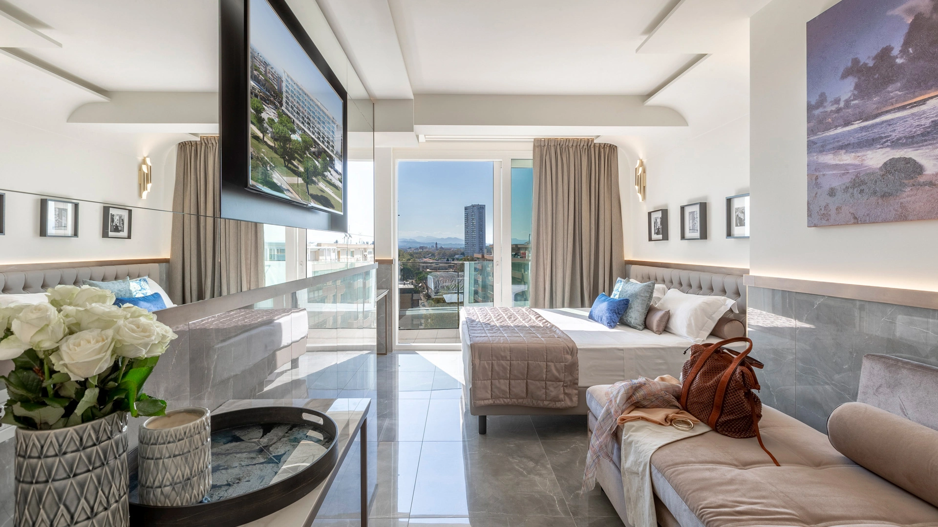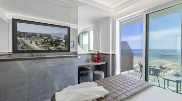 EXECUTIVE: rénovée dans un style contemporain, située aux étages supérieurs de l'hôtel, avec un petit balcon donnant sur la mer.