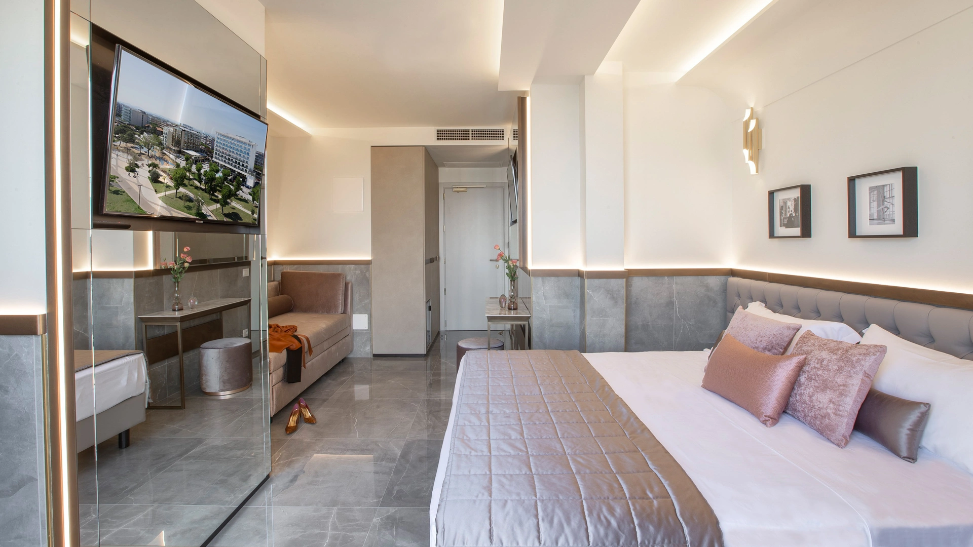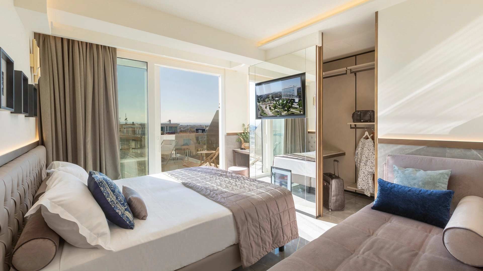 FAMILY DELUXE: 2 chambres communicantes, 2 salles de bains, 2 télévisions LCD et 2 balcons privés.