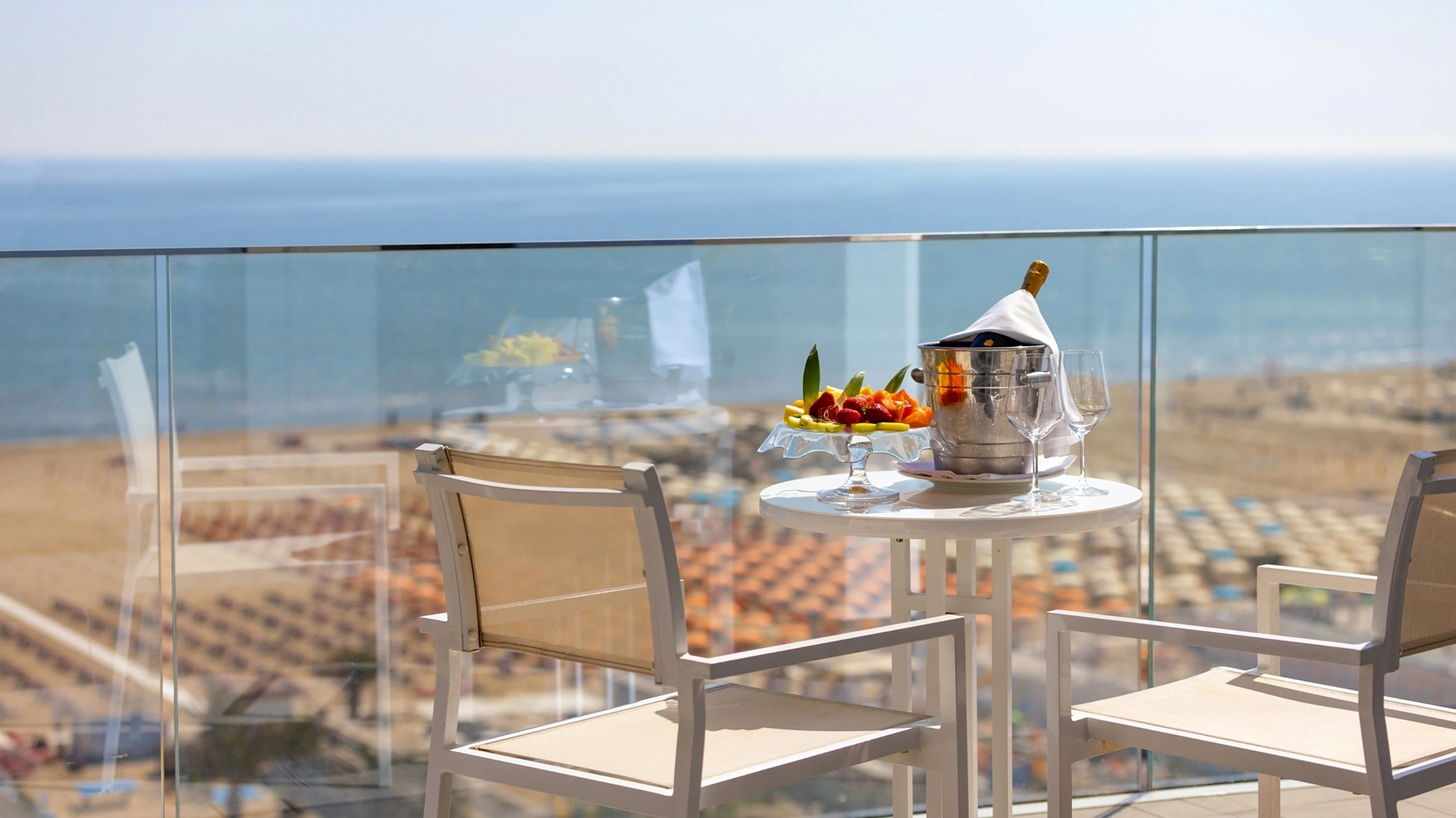 SUPERIOR: petit balcon donnant sur le Parco del Mare; certaines chambres peuvent offrir une vue partielle sur la mer.
