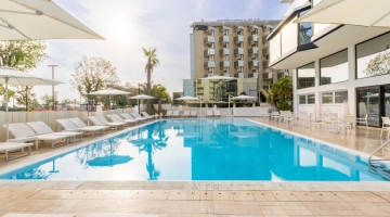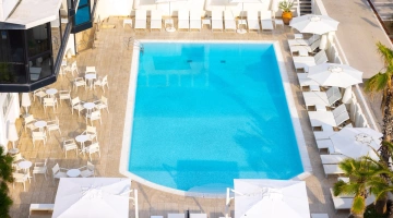 Avec ses 124 m2, la piscine chauffée du Sporting est l'une des plus grandes de Marina Centro. Grâce à des zones de différentes profondeurs, elle est également idéale pour les plus petits, qui peuvent participer au «Tournoi de natation pour bébés» organisé tous les jeudis. Elle dispose d'une zone Wi-Fi.
