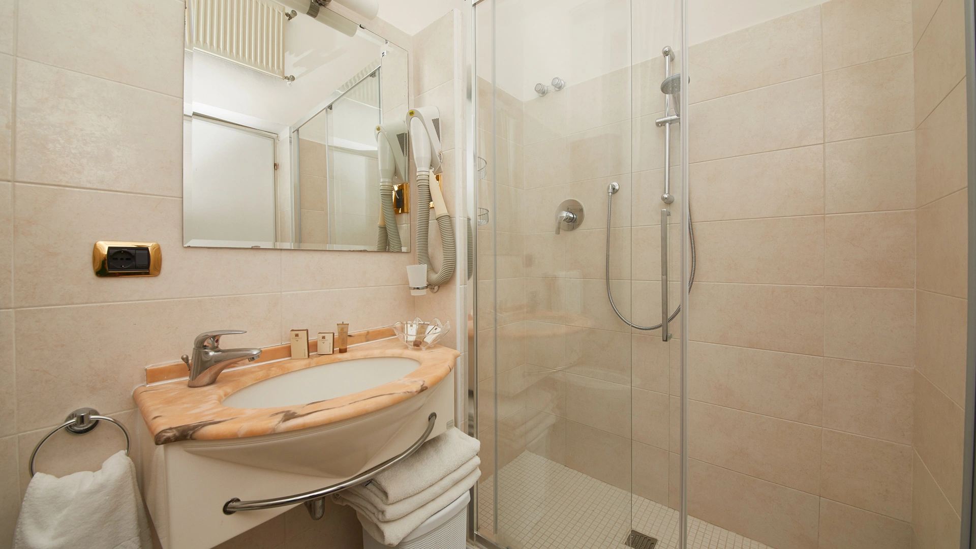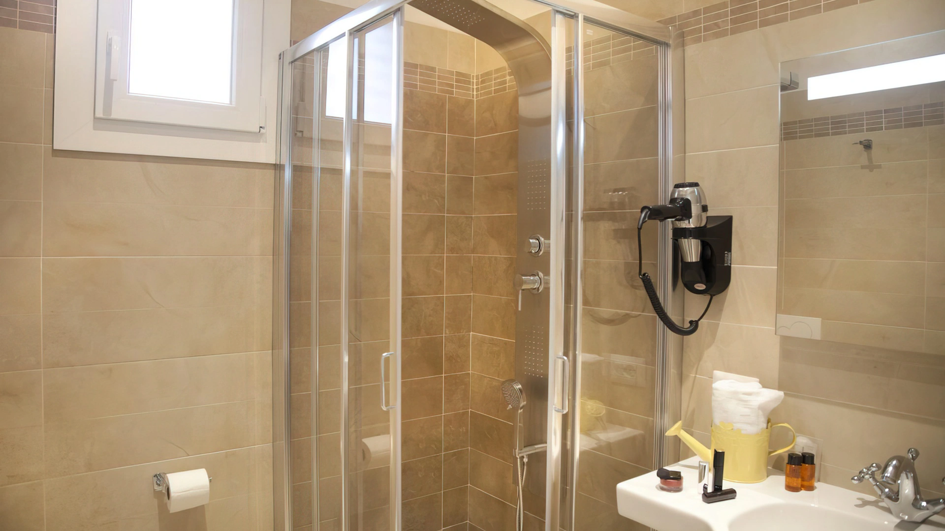 Les chambres sont équipées de TV LCD par satellite, téléphone, minibar, Wi-Fi fibre 200 Mbit/s, coffre-fort, climatisation indépendante et salle de bain privée avec douche et sèche-cheveux. Des chambres avec balcon (également vue mer), salon, douche ou baignoire d'hydromassage, musique d'ambiance sont disponibles.