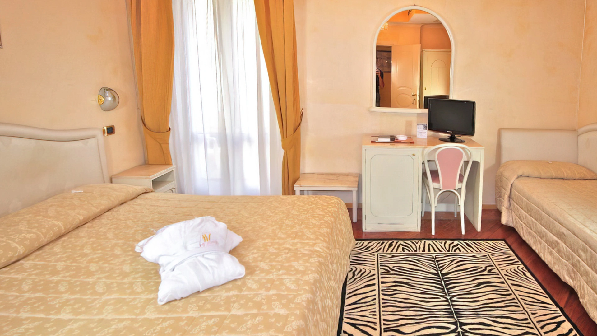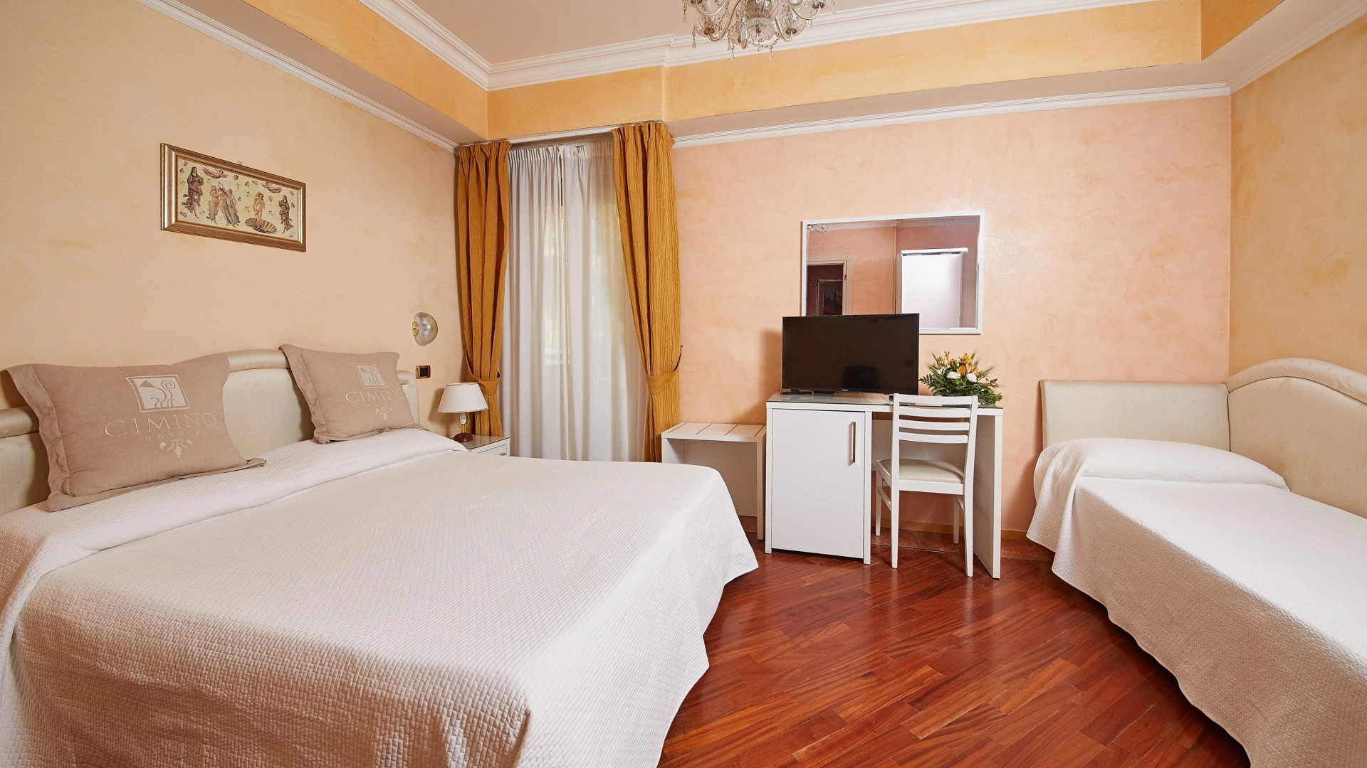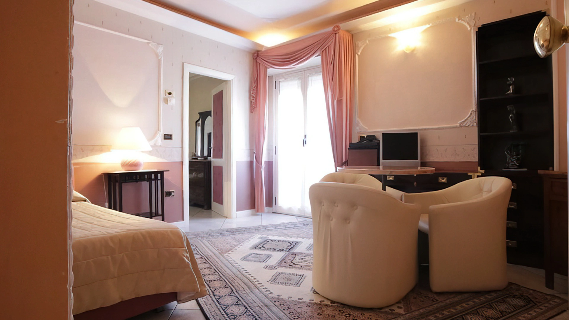 SUITE JUNIOR: elles sont situées dans la partie rénovée de l'hôtel et peuvent disposer d'une baignoire d'hydromassage et d'un balcon.
