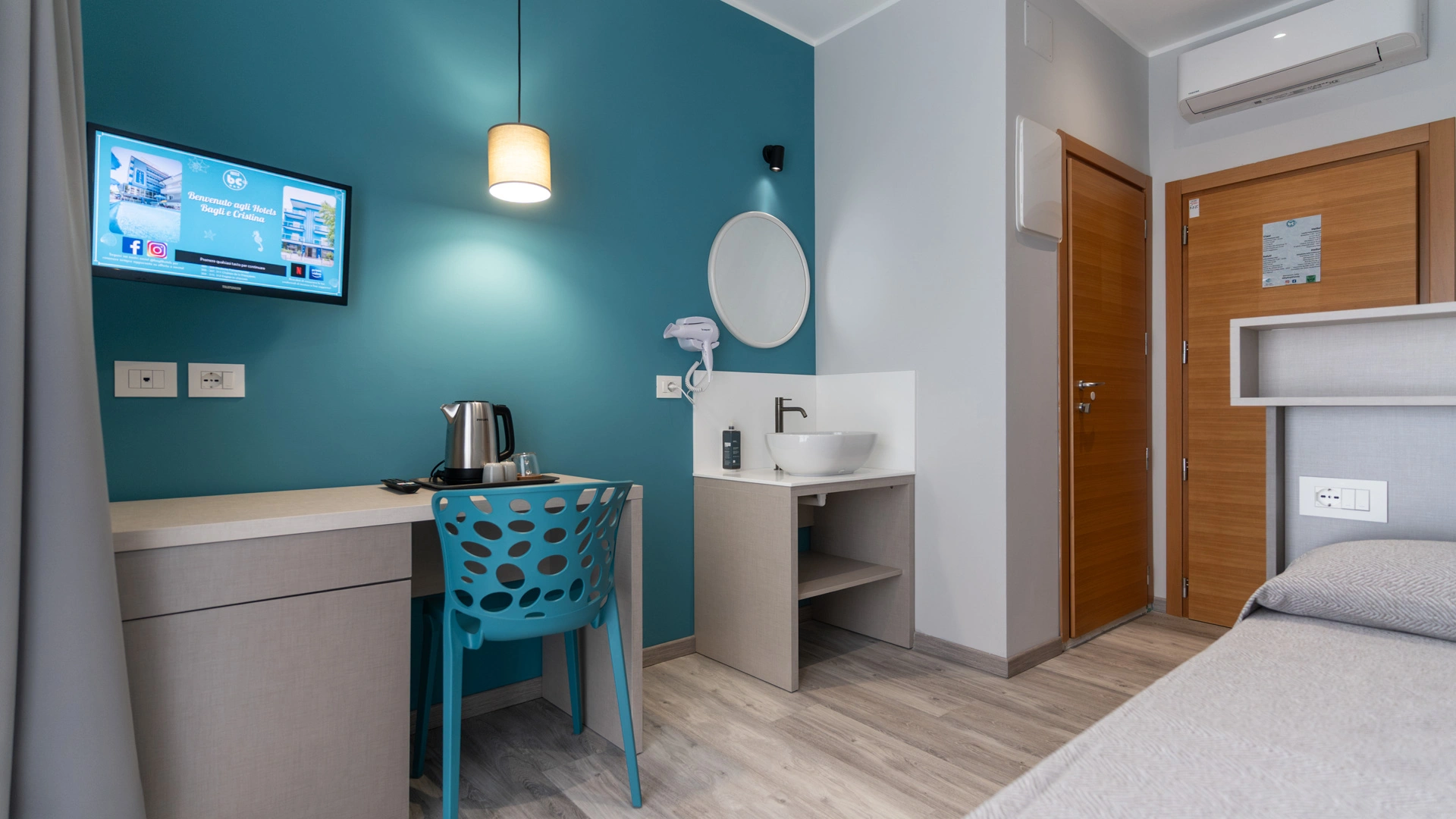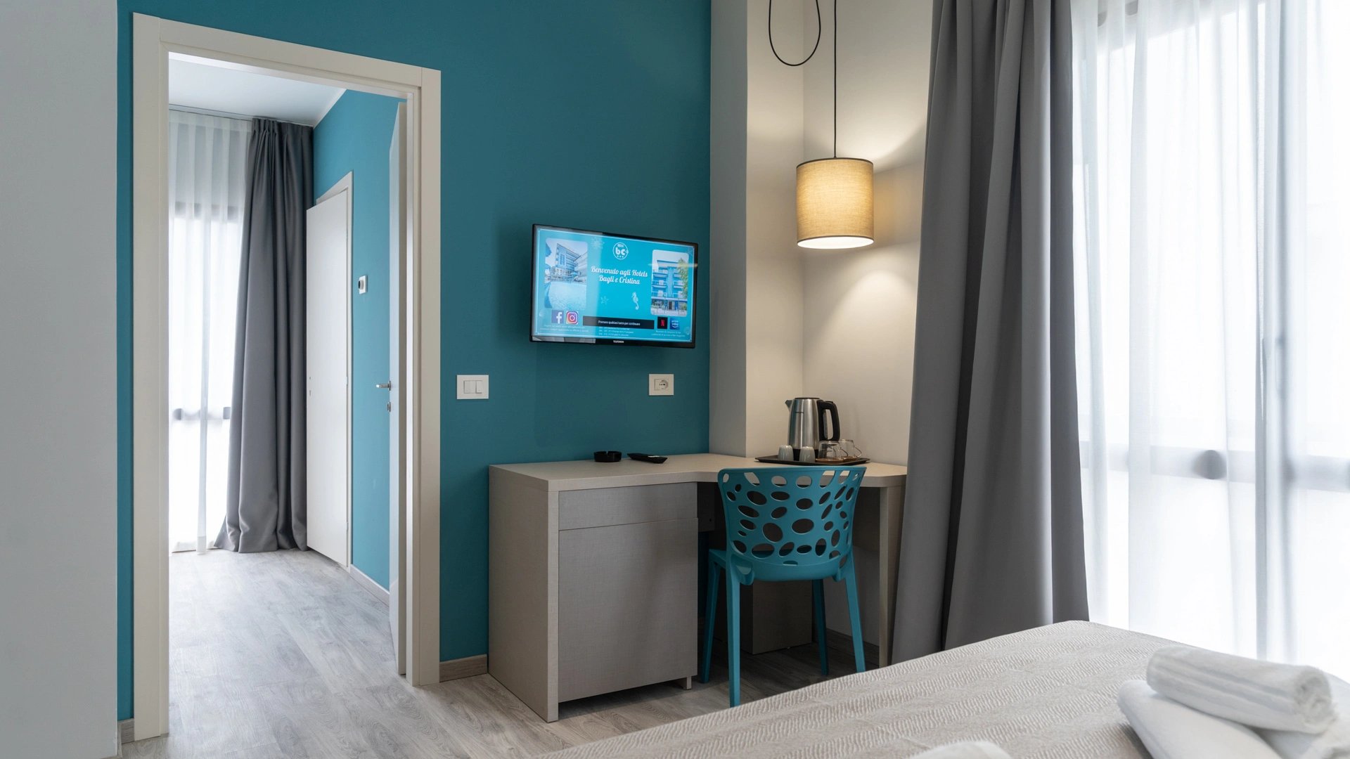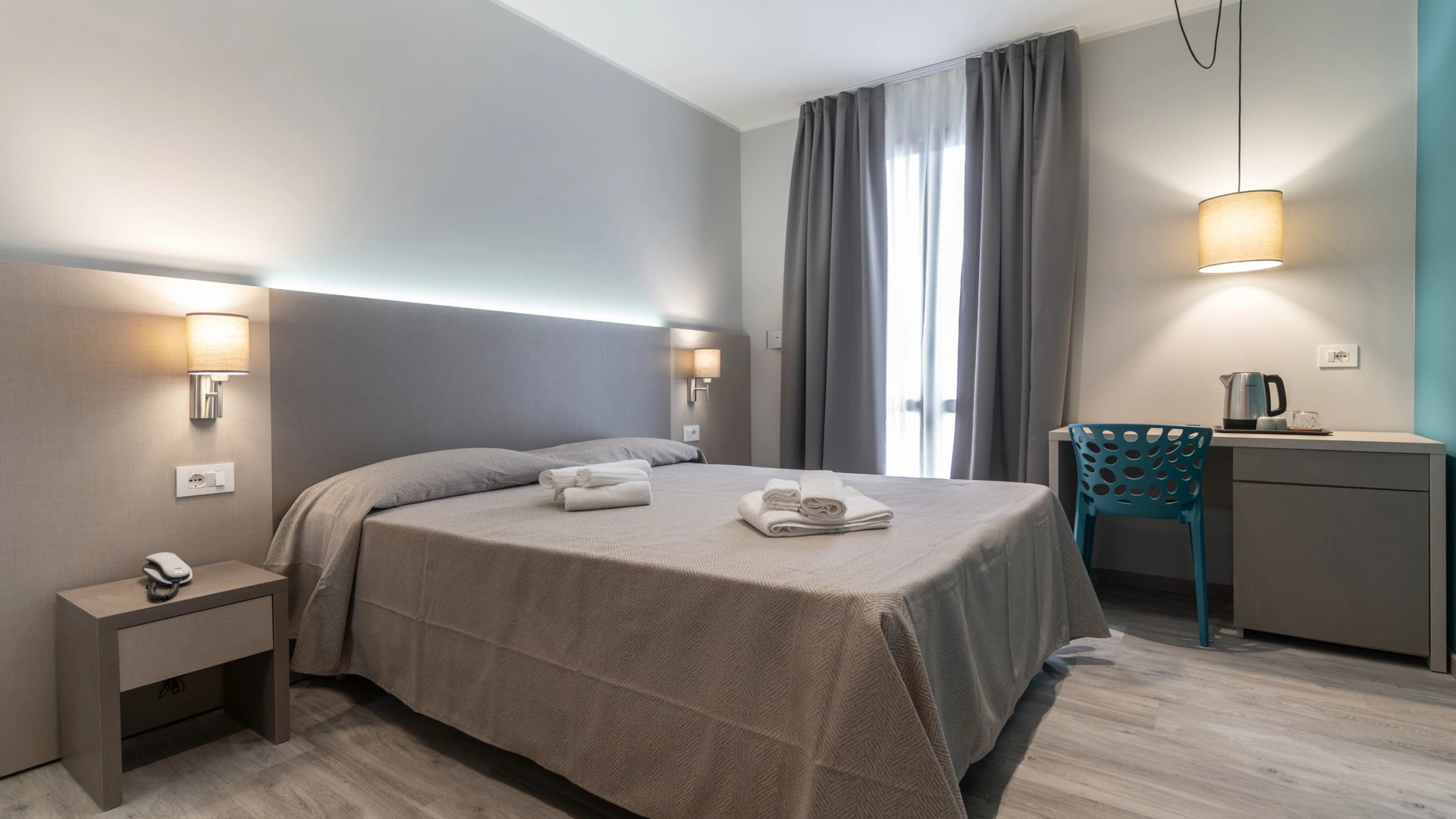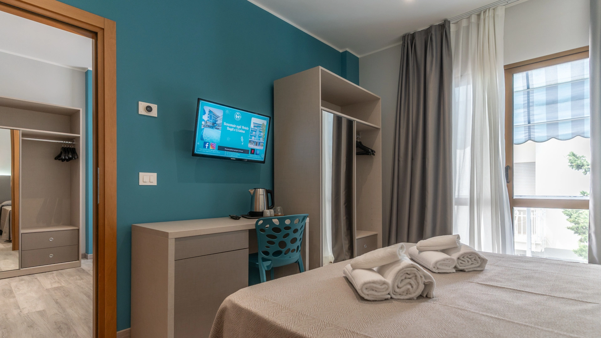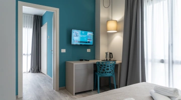 Les chambres sont équipées de balcon, climatisation, Wi-Fi fibre 100 Mbit/s, TV satellite, coffre-fort, téléphone, salle de bain avec cabine de douche et sèche-cheveux. Minibar sur demande.