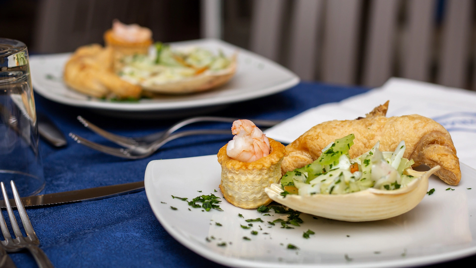 DÉJEUNER ET DÎNER: chaque jour, un choix entre différents menus à base de viande, poisson et légumes; à la fin du repas, desserts maison, sorbet, glace ou fruits. Riche buffet d'entrées et d'accompagnements toujours disponibles.