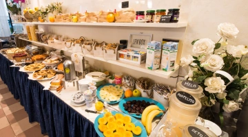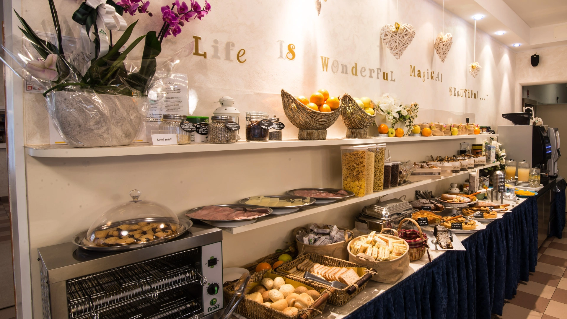 PETIT DÉJEUNER: petit-déjeuner buffet international avec produits salés, charcuterie, fromage fontina, grille-pain, gâteaux faits maison, yaourts, céréales et bien plus encore.