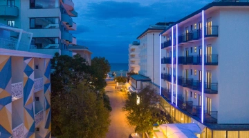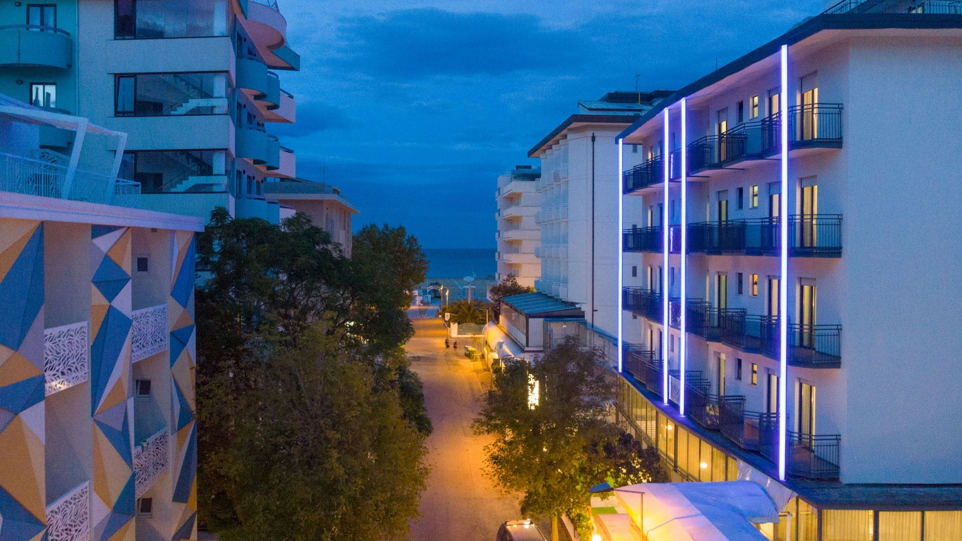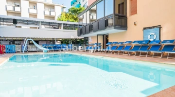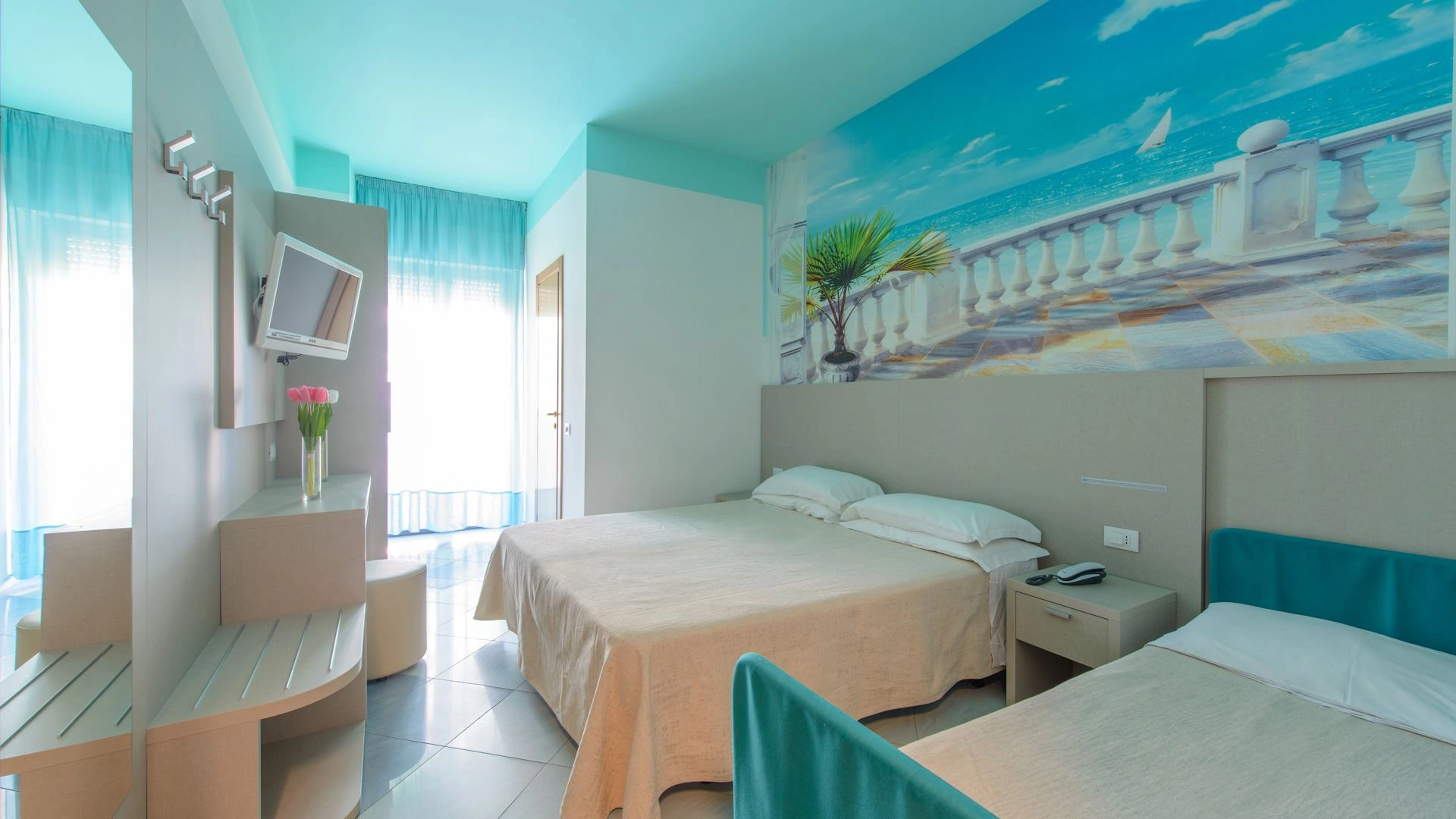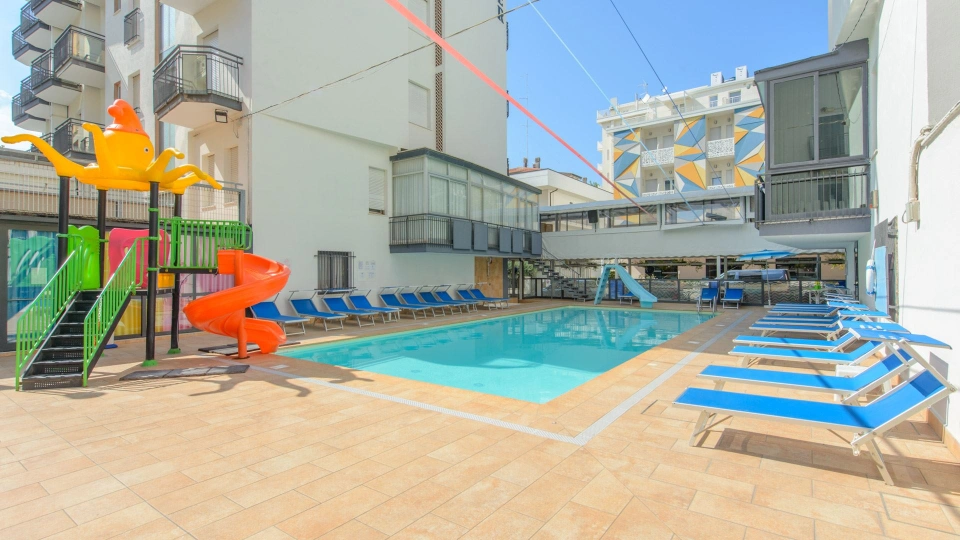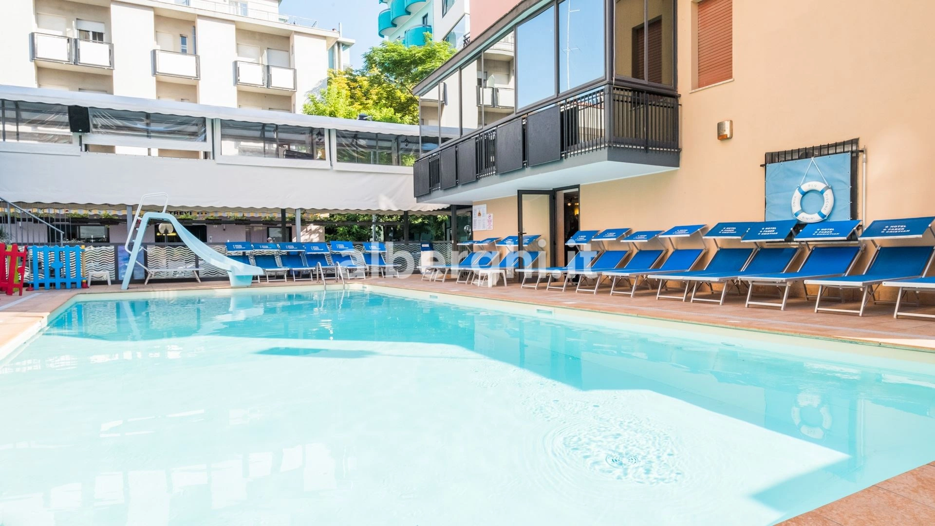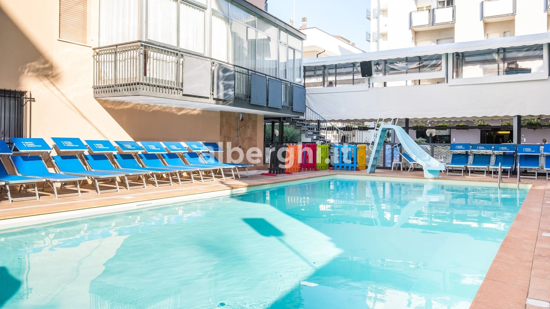 L'hôtel est situé à Rivazzurra di Rimini, à quelques pas de la plage et de la promenade. Le parc Fiabilandia se trouve également à dix minutes à pied.