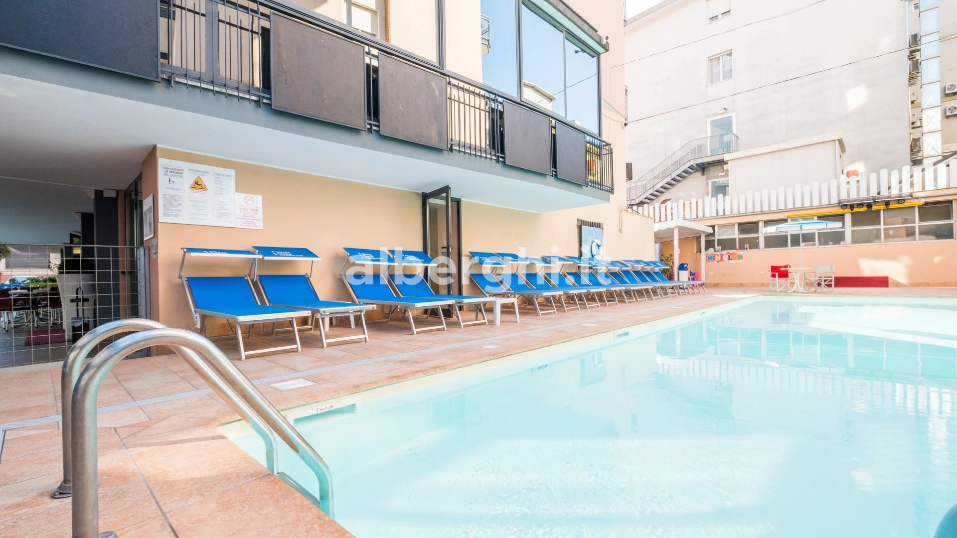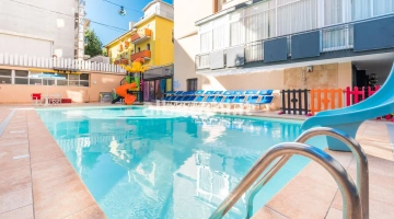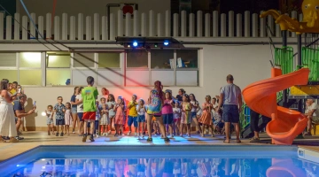 L'hôtel propose une grande piscine chauffée avec un espace pour enfants équipé de toboggans et de structures gonflables. L'espace est entouré de chaises longues et de parasols, des cours d'aquagym et de nombreuses autres activités sont organisées au bord de la piscine, aussi bien en journée qu'en soirée.