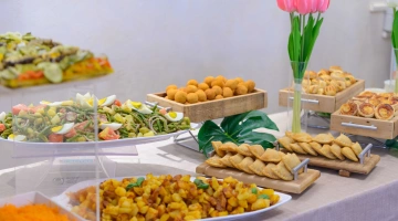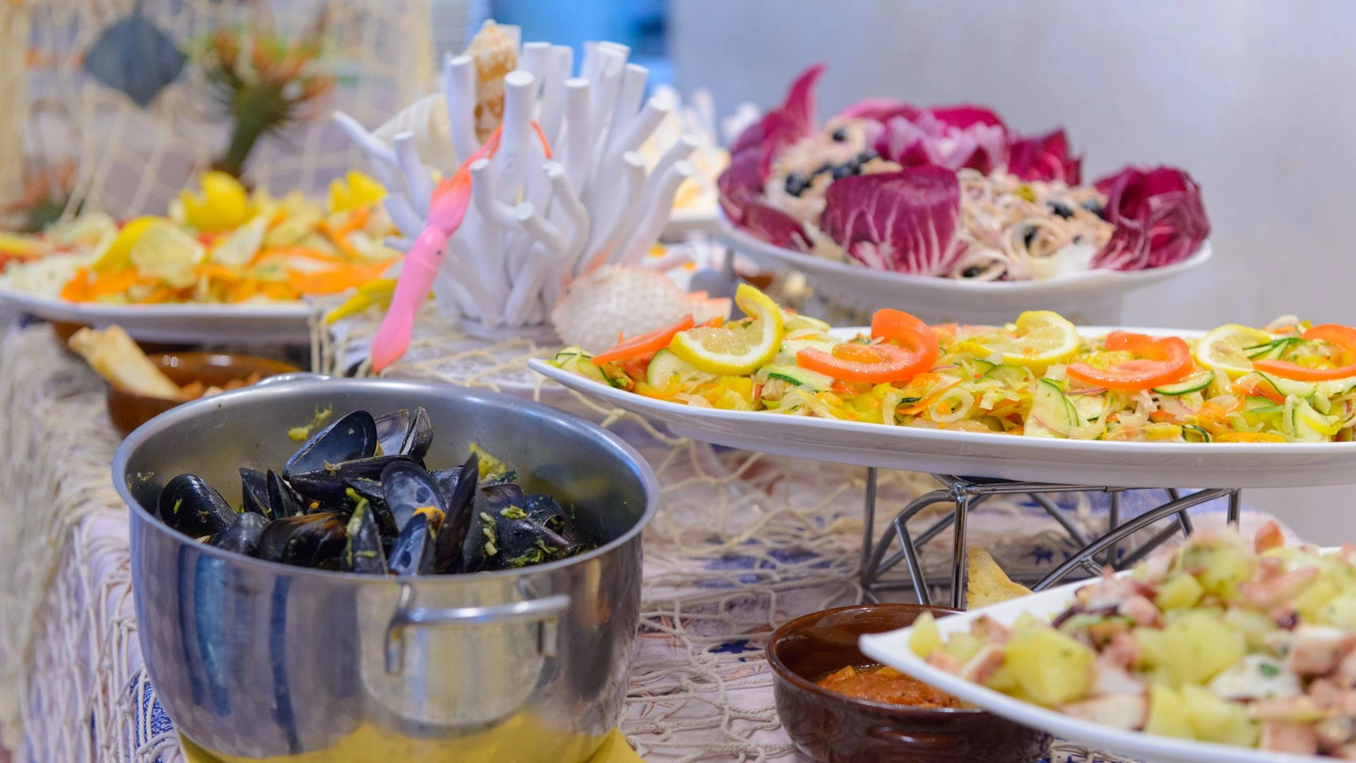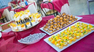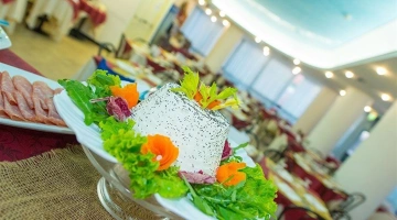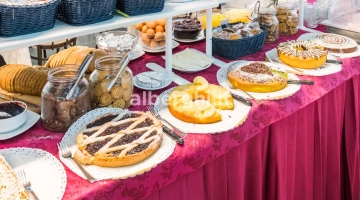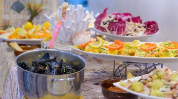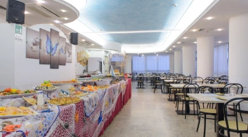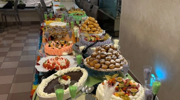 DÉJEUNER ET DÎNER: chaque jour, un choix entre trois entrées et trois plats principaux à base de viande ou de poisson élaborés avec des matières premières sélectionnées et accompagnés d'amuse-bouches, d'accompagnements et de légumes. A la fin de chaque repas, desserts maison. Tous les plats sont servis sous forme de buffet, desserts compris.