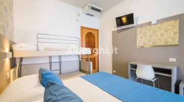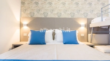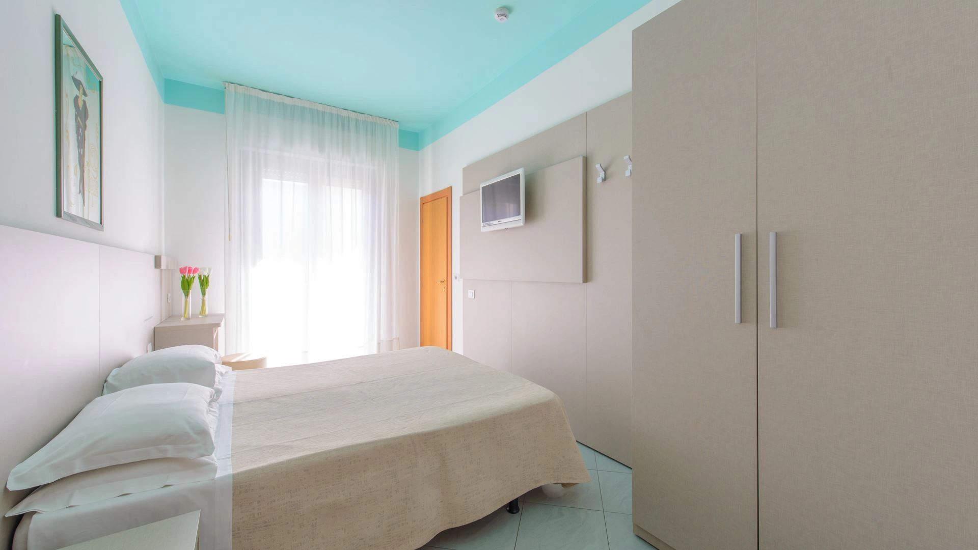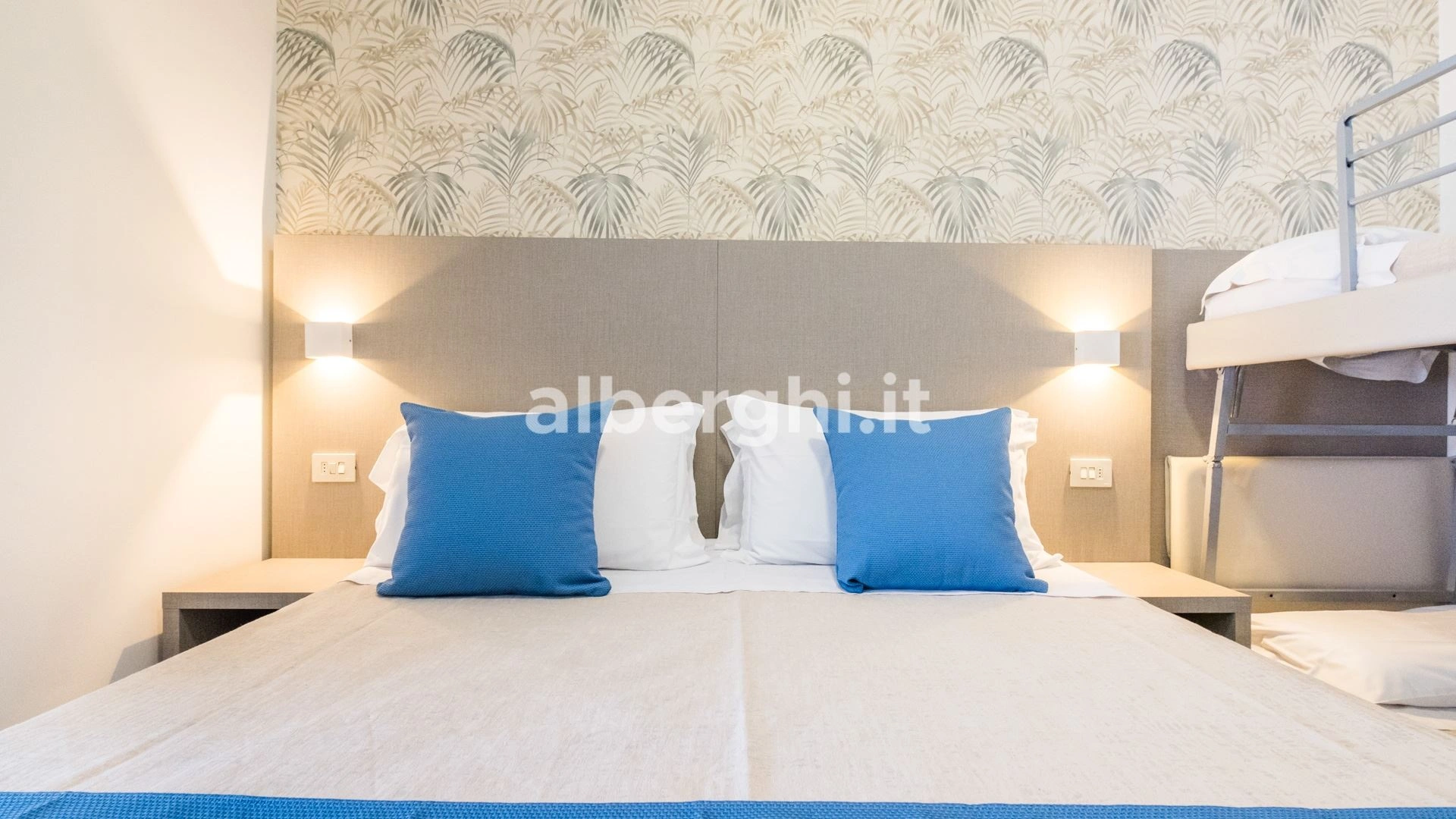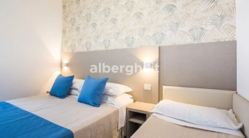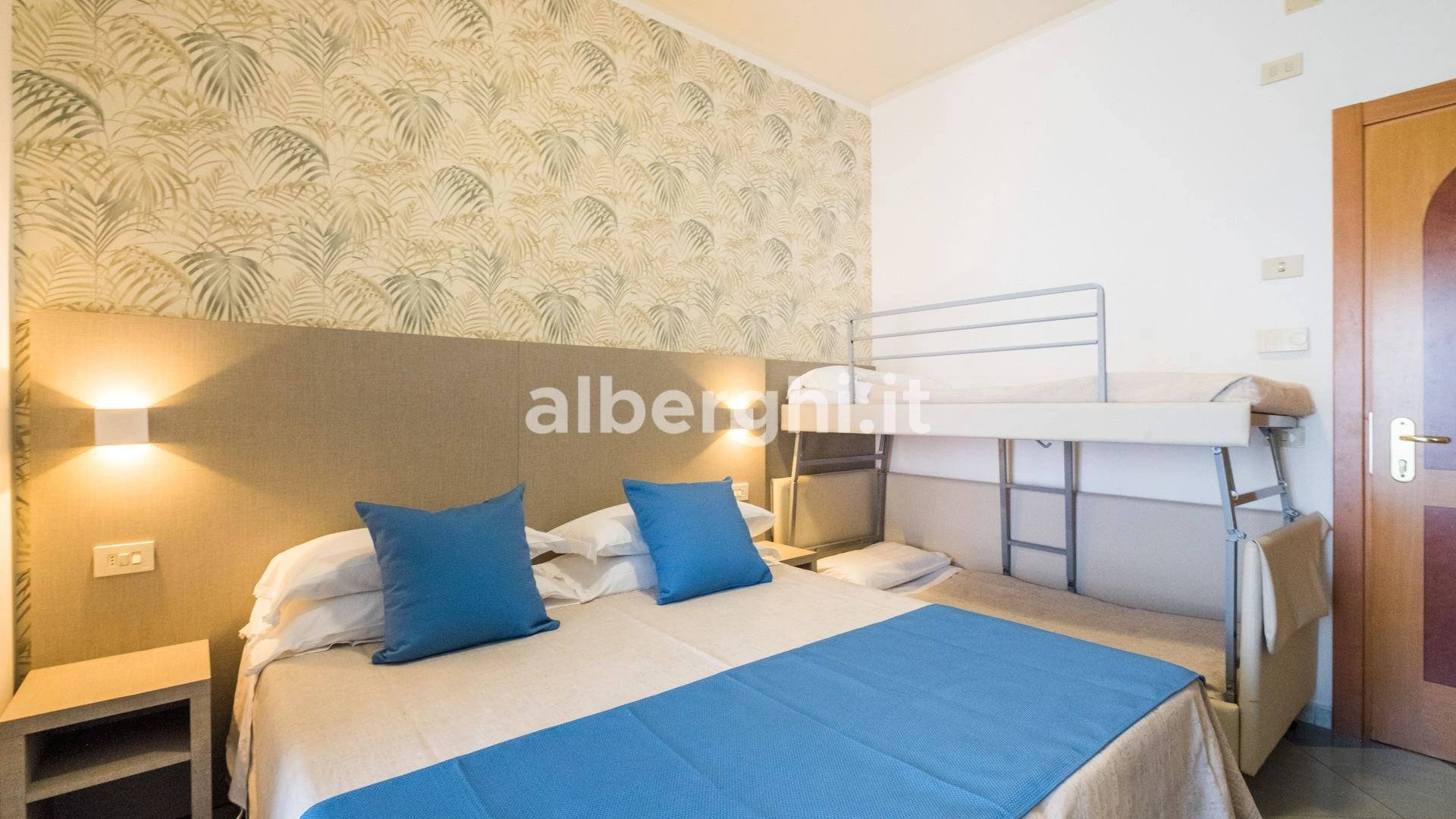 CONFORT PLUS: à l'avant de l'hôtel avec mobilier rénové en 2023, boissons de bienvenue dans le mini-réfrigérateur, balcon avec vue latérale sur la mer (plus visible à partir du deuxième étage; set de courtoisie avec 2 peignoirs, chaussons, serviettes de plage à usage personnel.