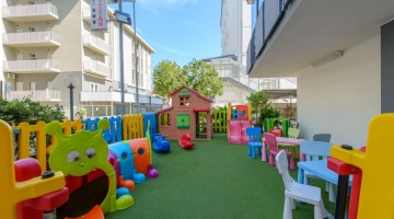 Dans l'hôtel: poussettes, vélos avec sièges enfants, aire de jeux intérieure et extérieure, espace enfants dans la piscine avec toboggan et structures gonflables, table à langer et riche programme d'animations, soirées avec mascottes Disney, maquillage, bulles géantes, barbe à papa et pop corn. Baby-sitter et pédiatre disponibles sur demande et contre paiement.