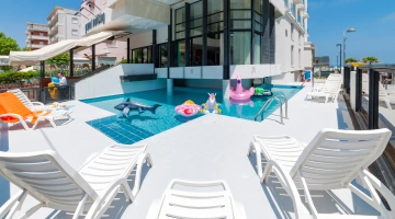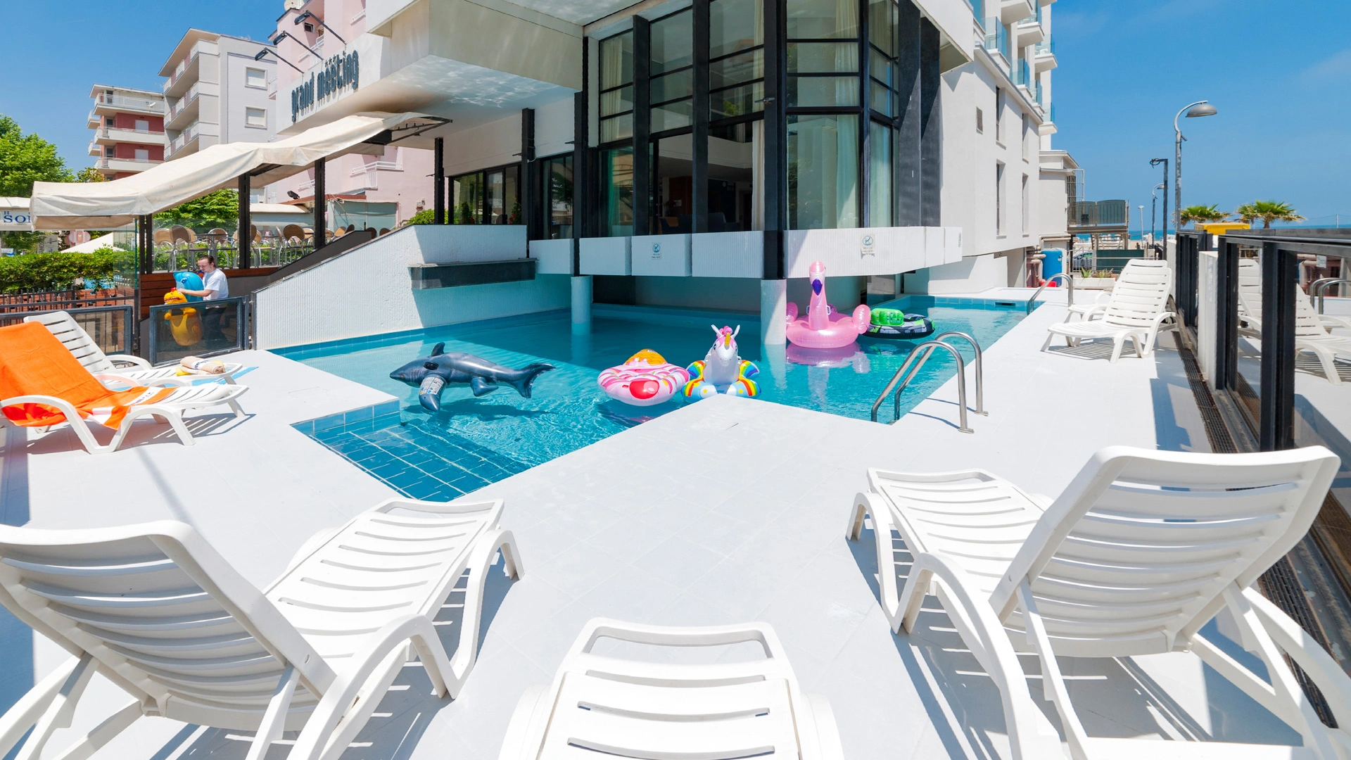La propriété est située à quelques pas de la plage de Rivazzurra, au sud de Rimini. Le quartier est bien relié au centre historique de Rimini et de Riccione par le Metromare (système de transport sur voie réservée) et par le bus n° 11. De plus, à proximité immédiate de l'hôtel se trouvent de nombreux clubs et magasins.