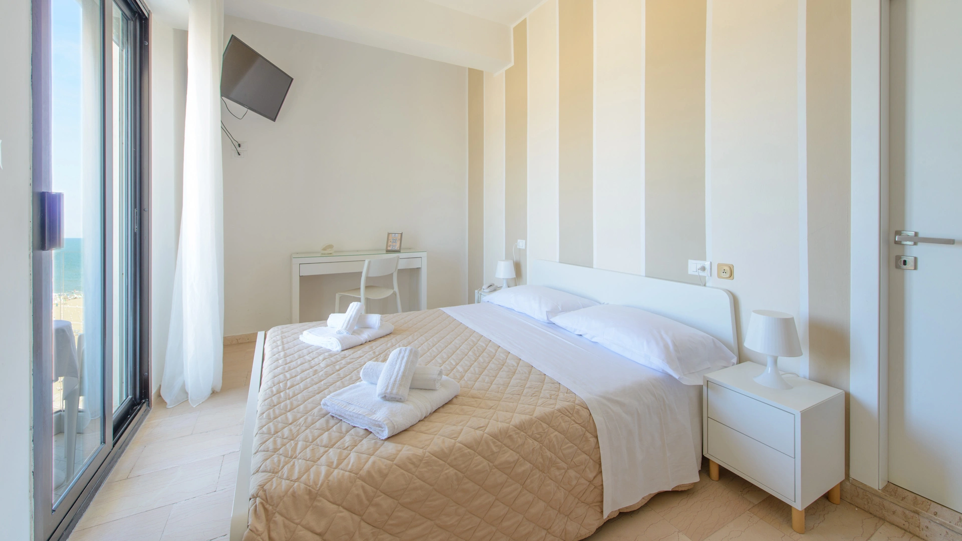 Les chambres sont équipées de balcon, climatisation, Wi-Fi rapide, TV, téléphone, coffre-fort, salle de bain avec sèche-cheveux et douche ou baignoire. Sur demande : vue mer et mini réfrigérateur.
