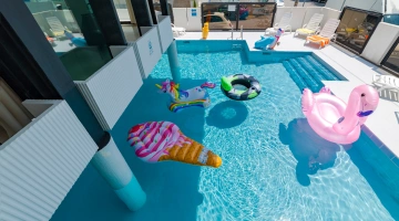 La piscine de l'hôtel, de 70 m2 et de 100 à 140 cm de profondeur, est exposée au soleil toute la journée et est entourée d'un espace solarium équipé, idéal pour des moments de détente ou un apéritif. Equipé d'une cascade et surveillé par un sauveteur.