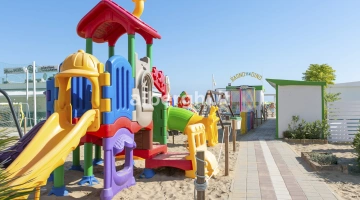 L'établissement est situé à Rivazzurra di Rimini, directement sur la plage, sans route à traverser, dans un emplacement particulièrement sûr pour les familles et les enfants. L'hôtel se trouve à proximité de la nouvelle station de métro Mare di Costa et du parc Fiabilandia, accessibles à pied en une dizaine de minutes.