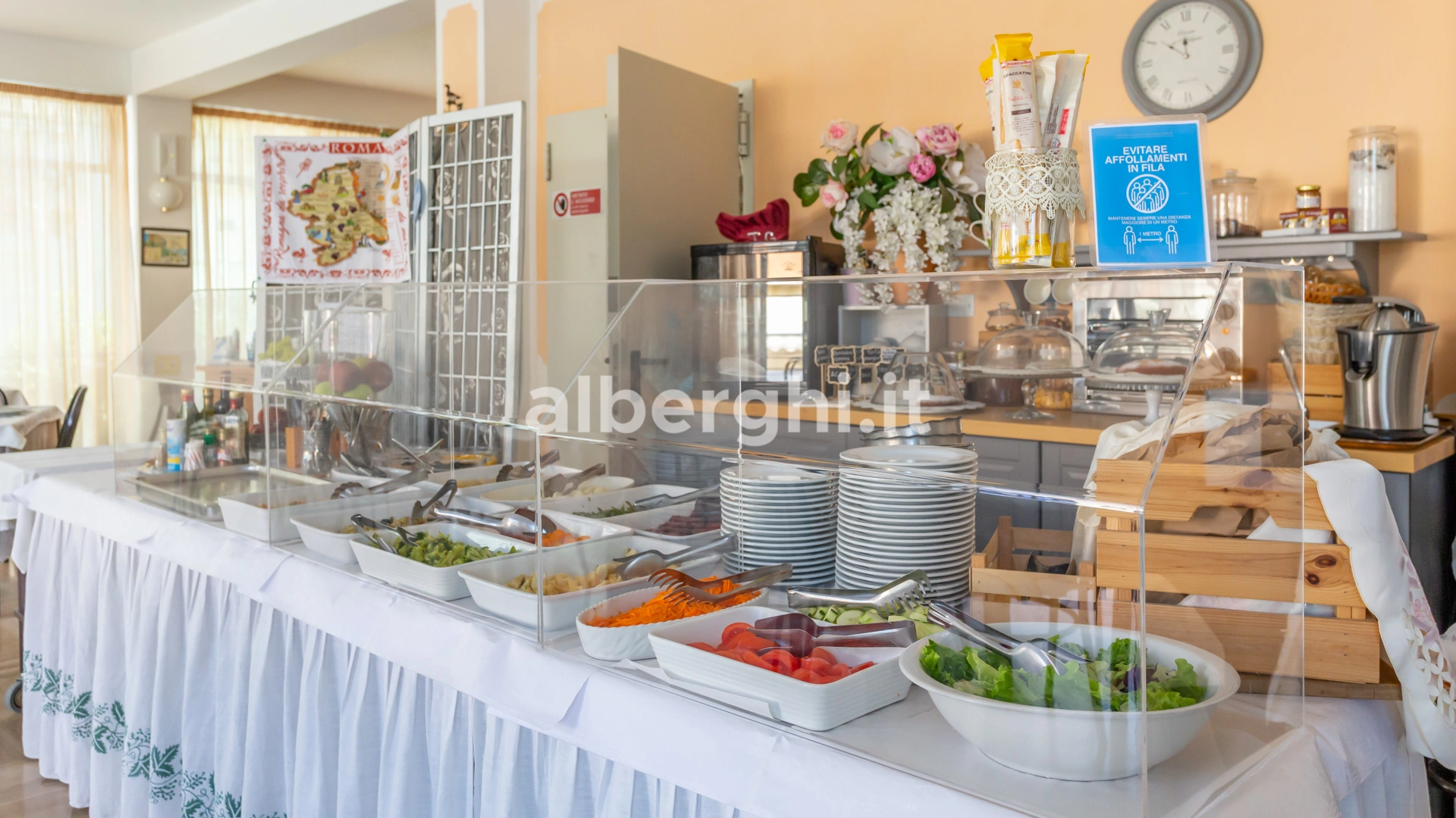 DÉJEUNER ET DÎNER: Cuisine traditionnelle romagnole à base de produits locaux, piadinas, pâtes fraîches et poissons de la région. Deux menus sont proposés, chacun accompagné d’un buffet de légumes. Pâtes et desserts sont faits maison. L’eau est incluse à tous les repas et le vin est inclus dans la formule tout compris.