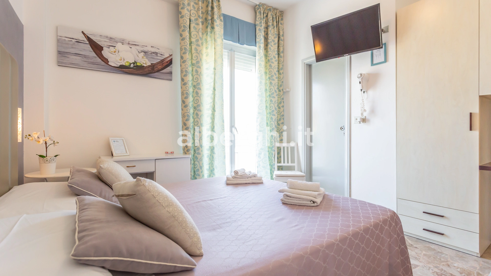 L'hôtel est situé à Torre Pedrera, un hameau au nord de Rimini, à quelques minutes à pied de la plage. Le quartier est bien desservi par la ligne de bus n° 4 qui permet de rejoindre le centre historique de Rimini et la gare.