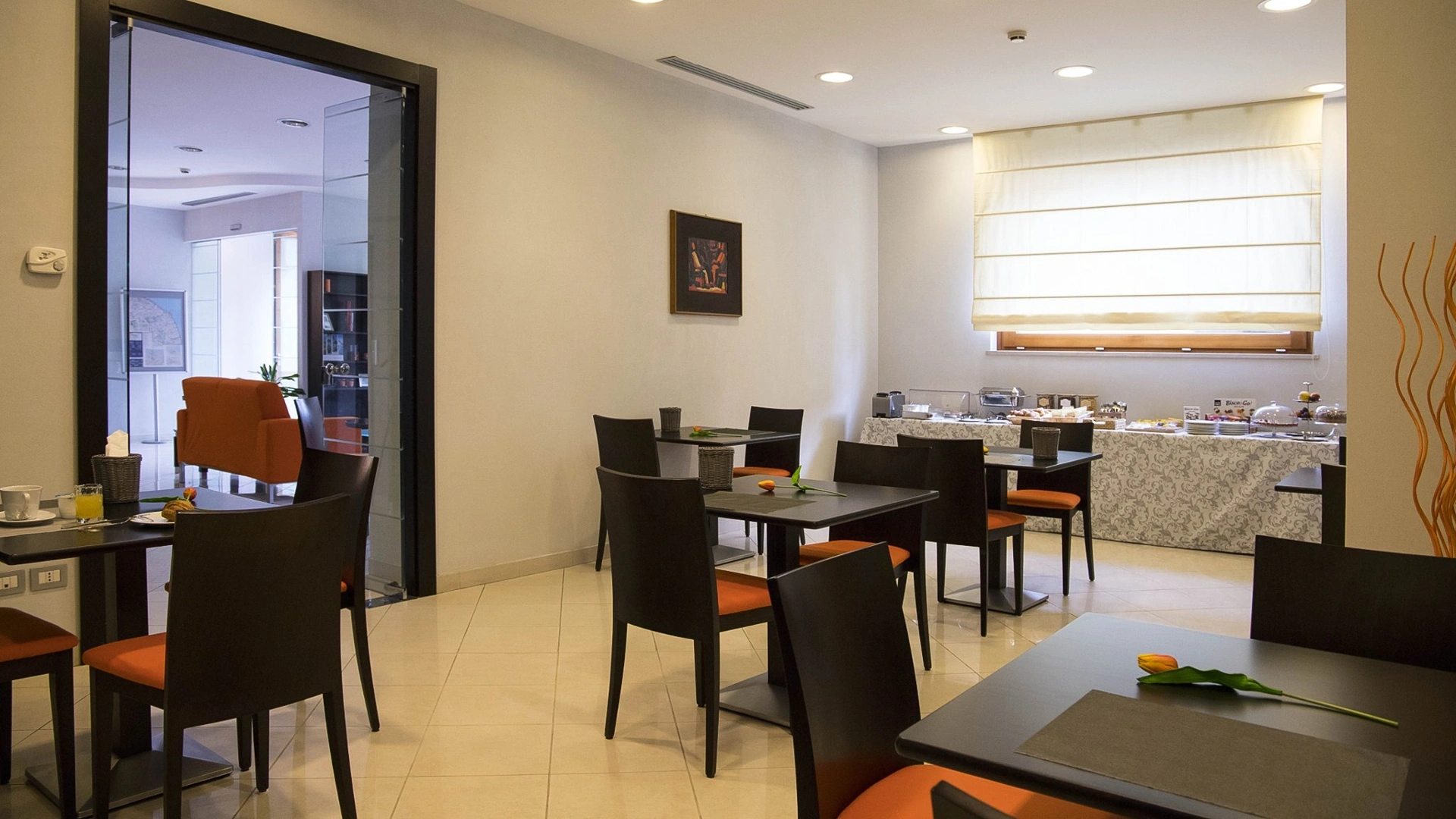 Le petit-déjeuner est servi sous forme de buffet et propose un choix de plats sucrés et salés, des fruits frais et des produits pour les coeliaques. L'hôtel ne possède pas de restaurant, mais il est possible de prendre ses repas dans des restaurants partenaires à proximité.