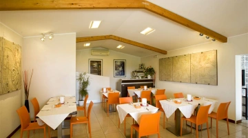 Le petit-déjeuner buffet, servi dans la salle dédiée, propose une sélection de produits sucrés et salés accompagnés de café express préparé sur demande. Le restaurant de l'hôtel propose des plats de viande et de poisson de la cuisine locale.