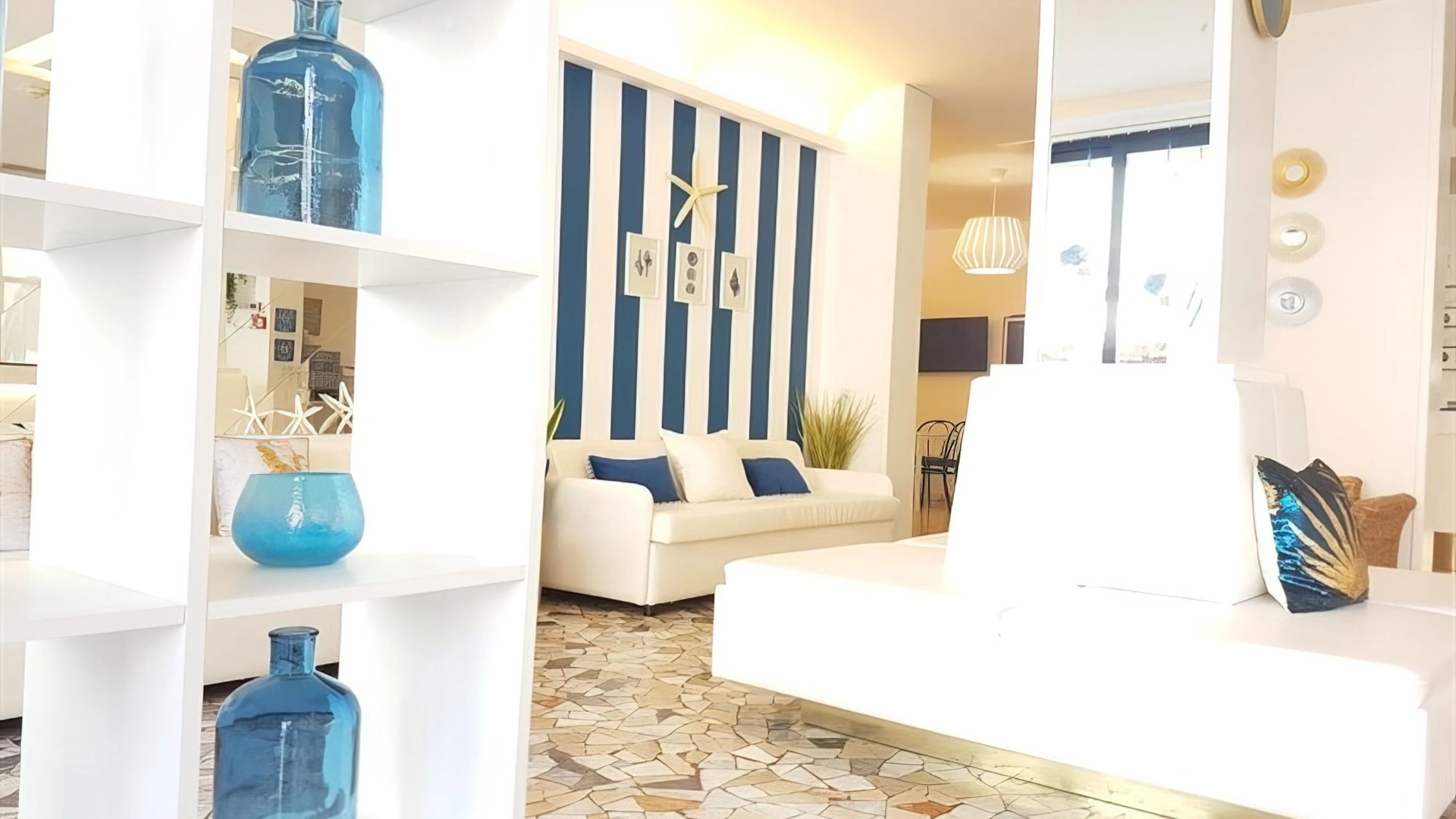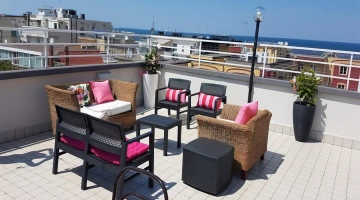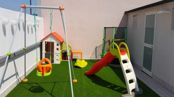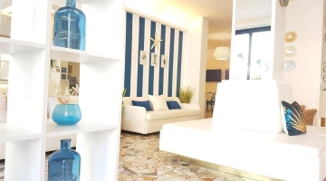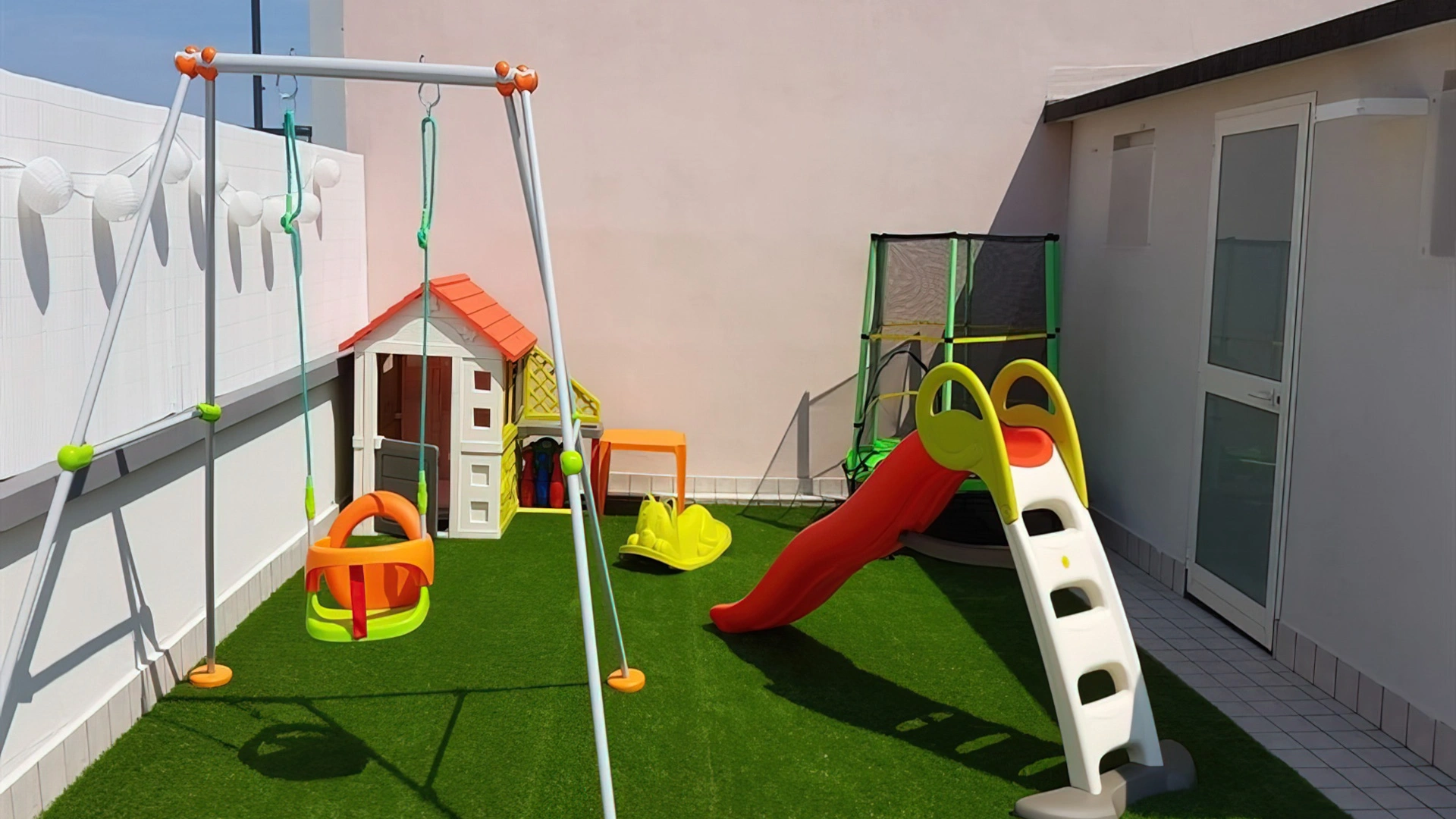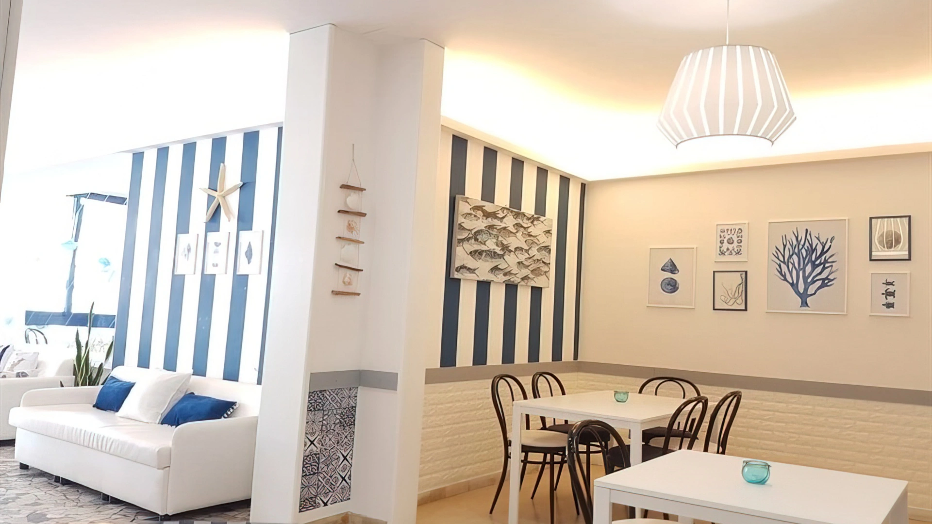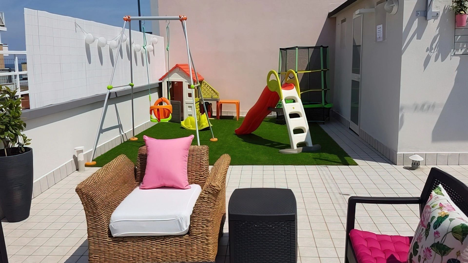 Porche en plein air donnant sur la promenade, terrasse panoramique surplombant la mer et équipée d'une aire de jeux dédiée aux enfants. En outre: bar et espace TV, salle de lecture, ascenseur, aire de jeux interne pour enfants.