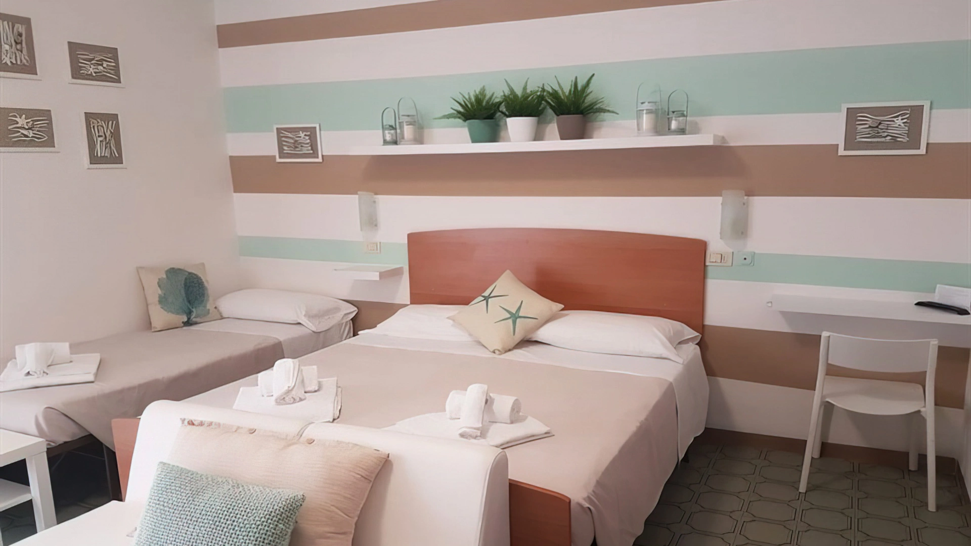 Confortables et agréablement décorées, certaines avec vue mer, elles sont toutes équipées de TV, climatisation et ventilateur de plafond, Wi-Fi, coffre-fort, salle de bain avec cabine de douche et sèche-cheveux, set de courtoisie de salle de bain et minibar non approvisionné sur demande. Presque toutes les chambres disposent d'un balcon.