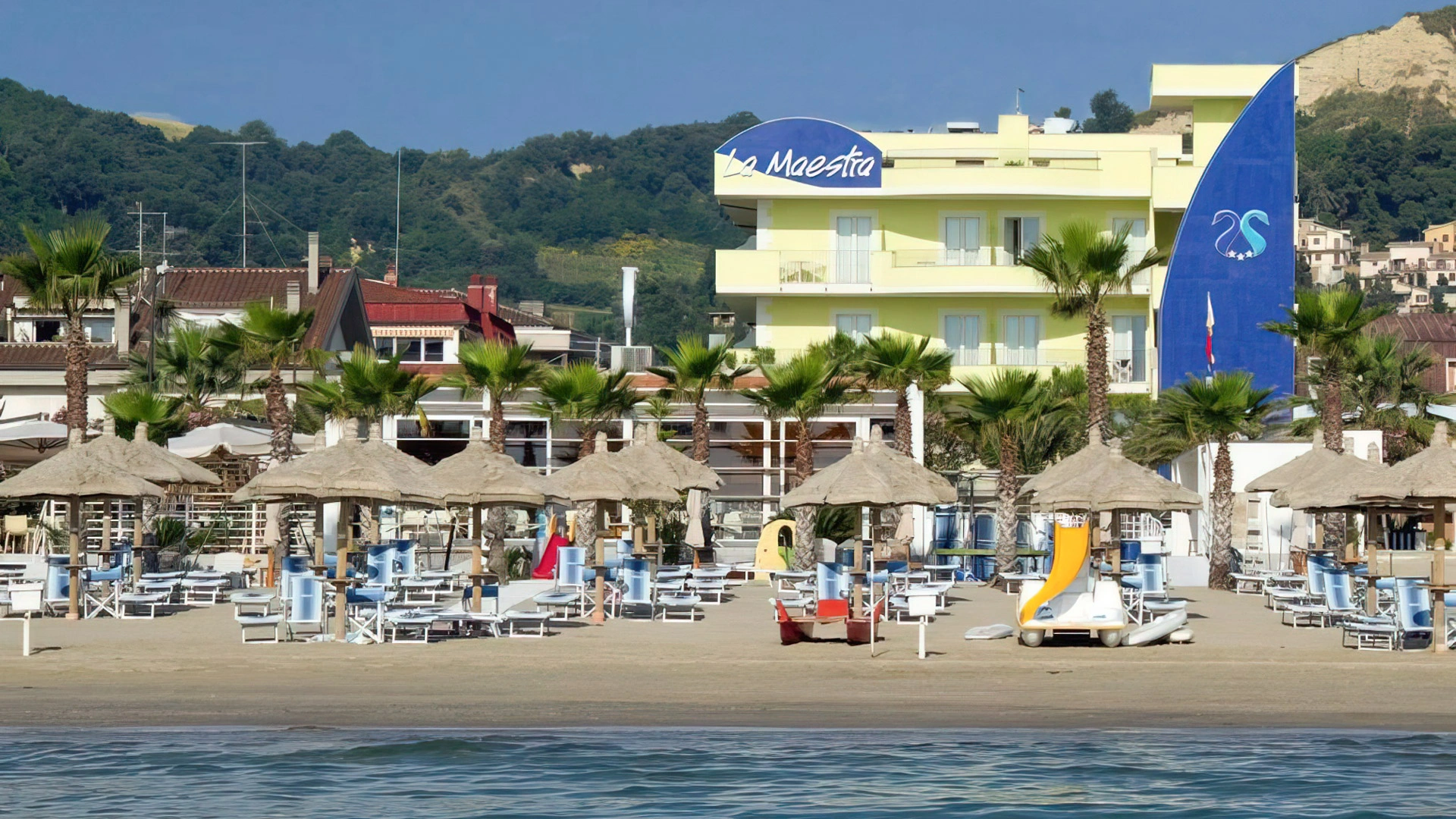 L'Hôtel La Maestra est un hôtel 3 étoiles à la gestion familiale situé en bord de mer à Grottammare. Il propose des hébergements climatisés avec balcon, télévision et Wi-Fi fibre, également adaptés aux familles et aux groupes jusqu'à 4 personnes. Il dispose d'un restaurant proposant une cuisine typique à base de poisson et d'espaces extérieurs accueillants et meublés. Il est accessible aux personnes handicapées, accepte les animaux et bénéficie d'une convention avec un établissement balnéaire voisin.