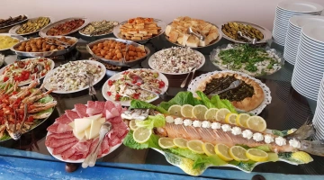 Chaque matin, un petit-déjeuner continental est servi sous forme de buffet composé de plats sucrés et salés. Le restaurant propose une cuisine locale à base de poisson et des plats internationaux avec un menu à 3 choix et un buffet d'accompagnements. Des variantes végétaliennes et sans gluten sont possibles sur demande.
