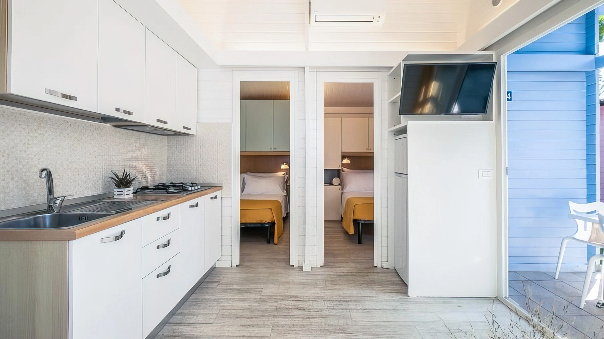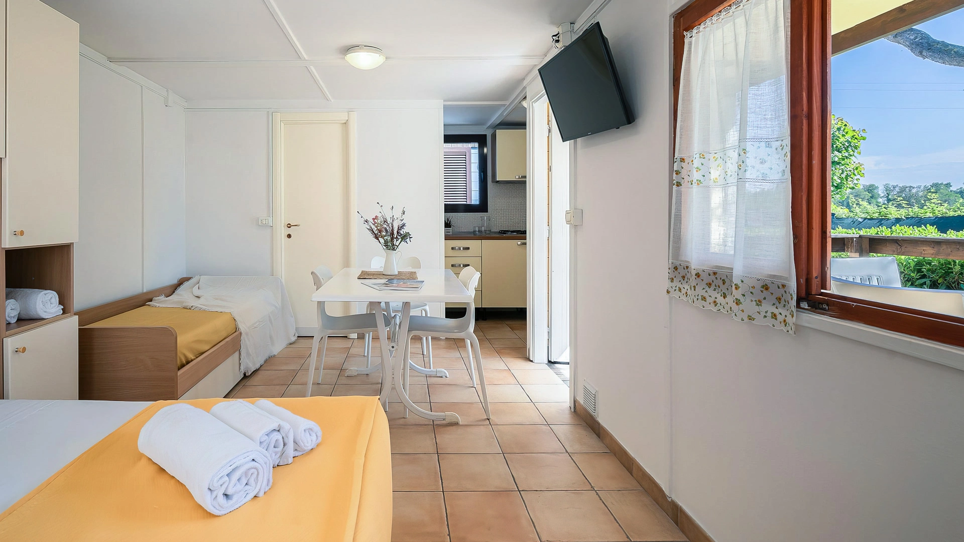 Les bungalows studio ne disposent pas de jardin privé et se composent d'une pièce simple avec un lit, un canapé-lit et une kitchenette.