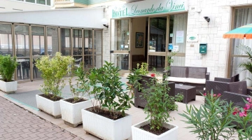 L' hôtel Leonardo Da Vinci, un établissement 3 étoiles situé à Pesaro, se trouve directement sur la plage. Il propose une piscine, des chambres avec vue sur mer et une connexion Wi-Fi. Les animaux de compagnie sont les bienvenus.