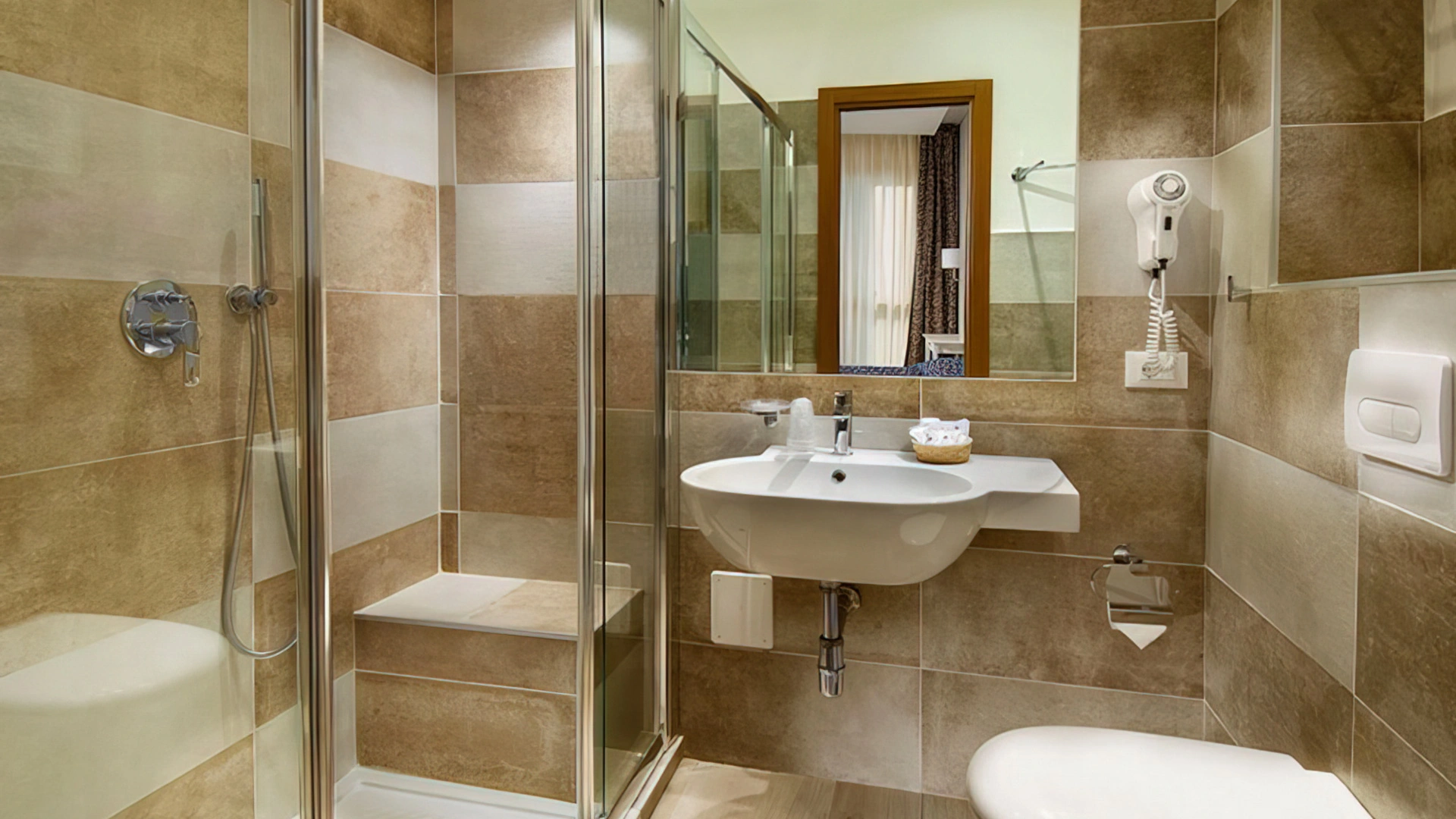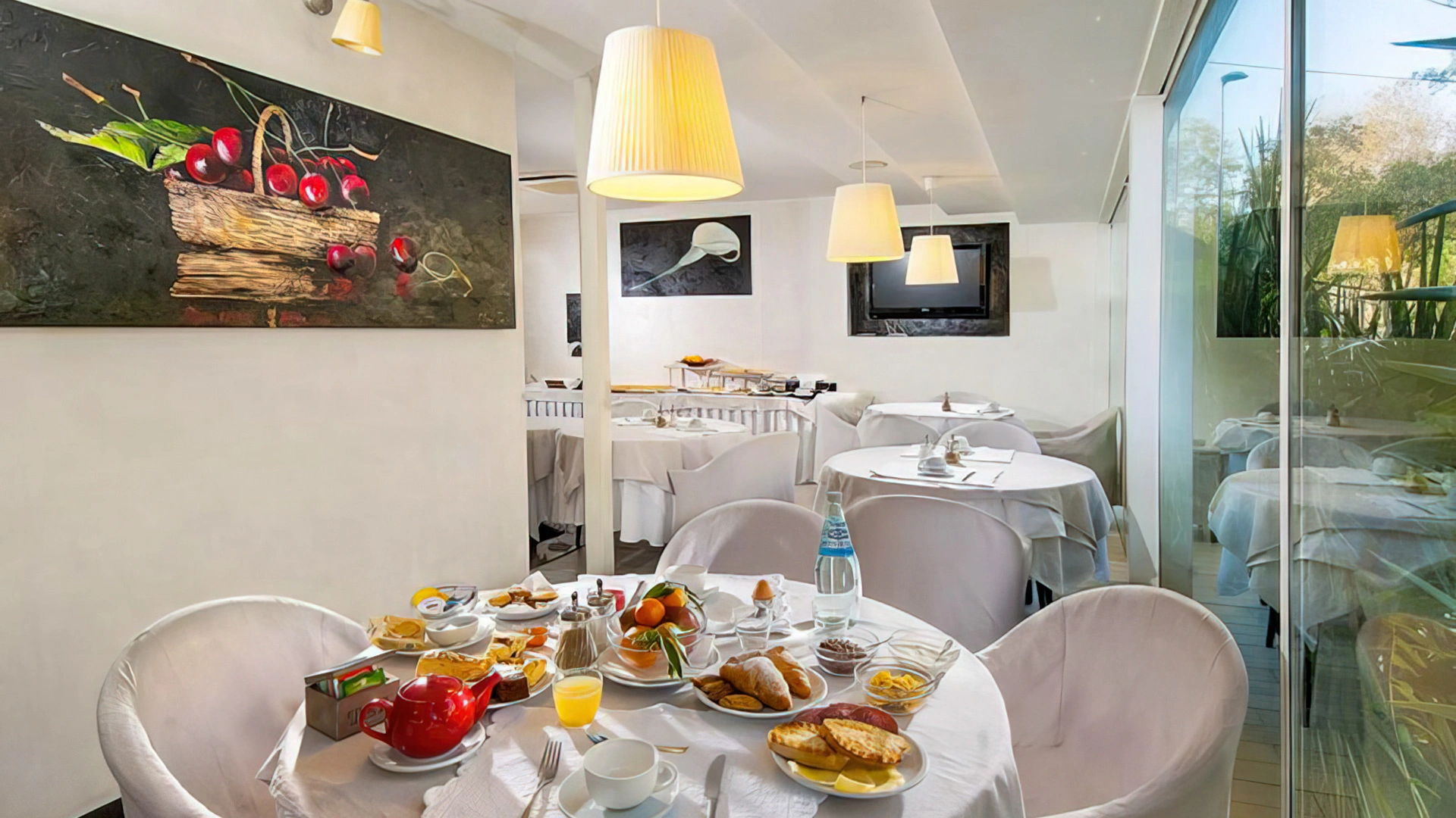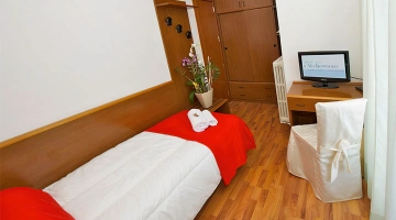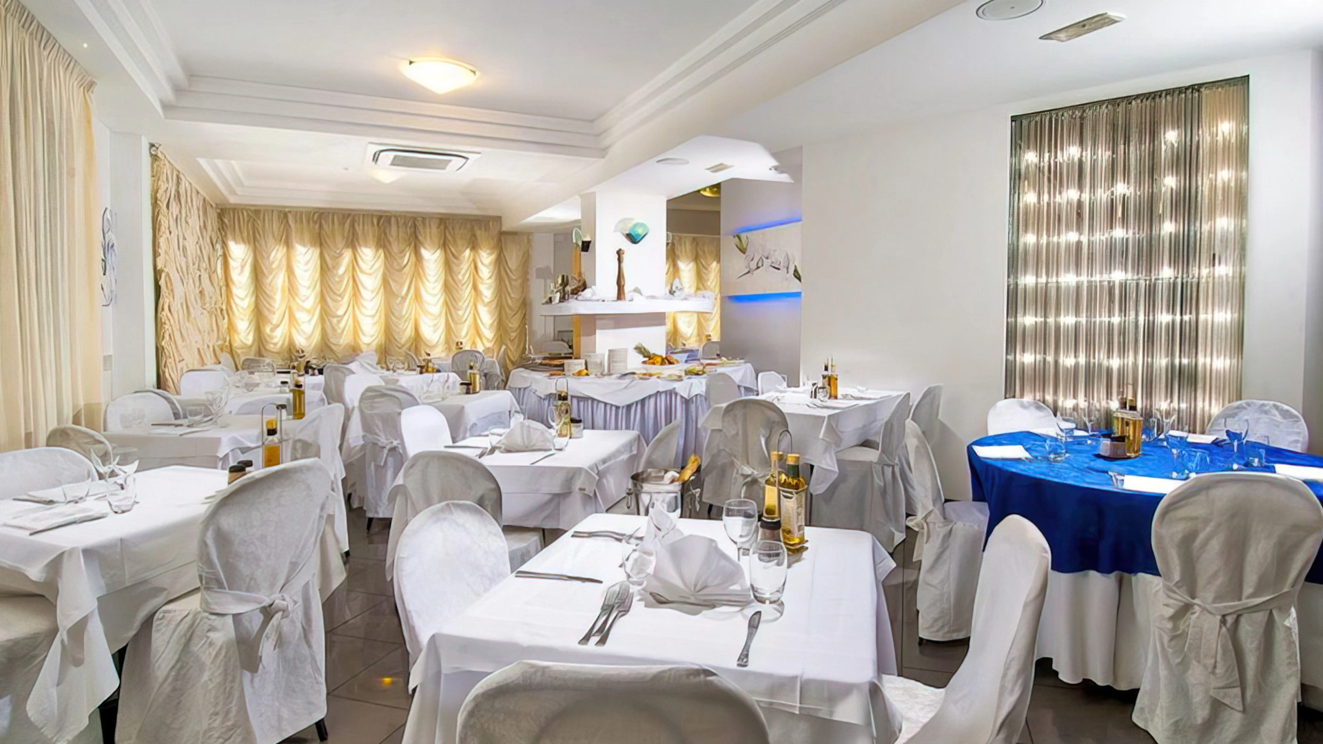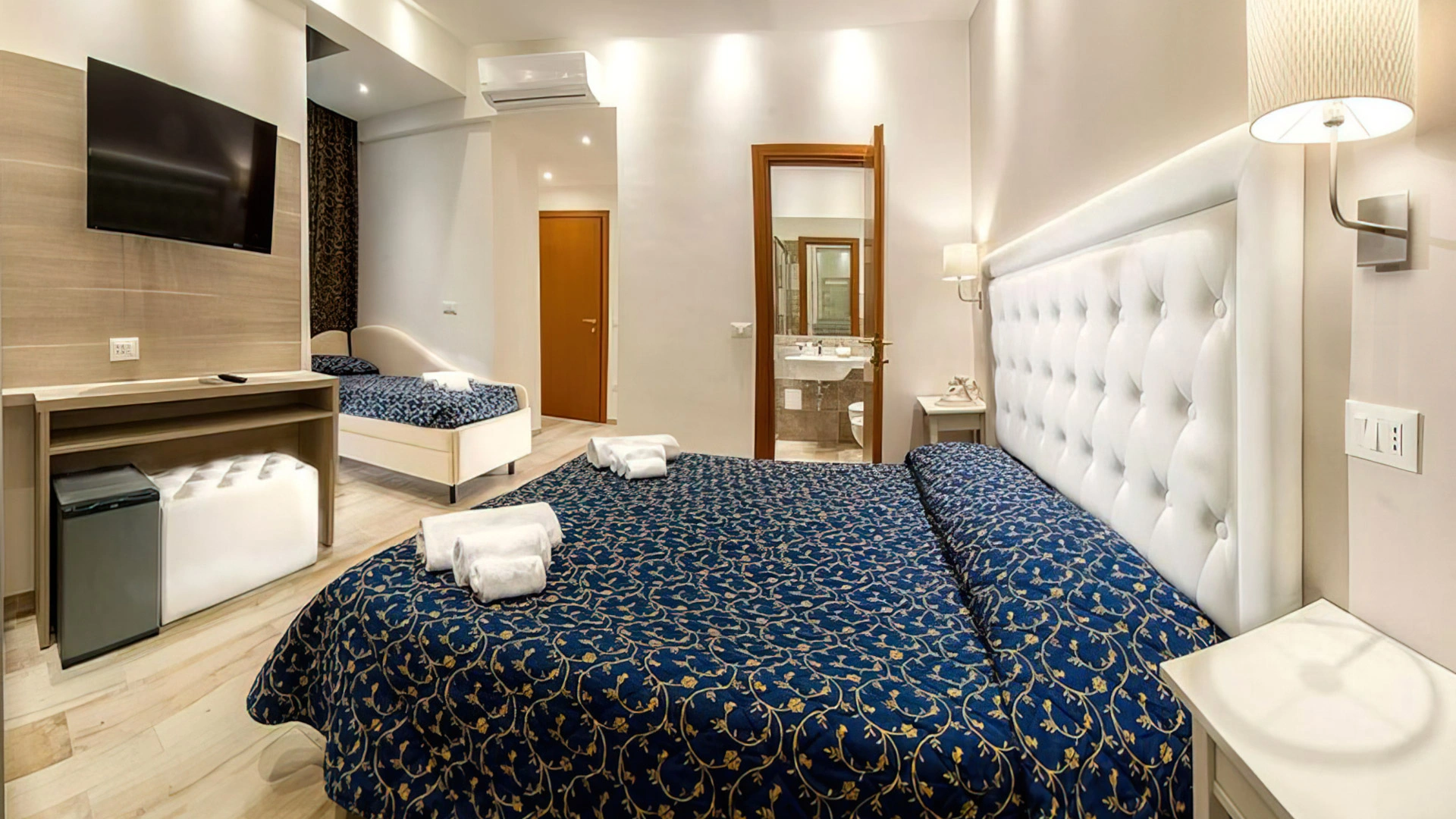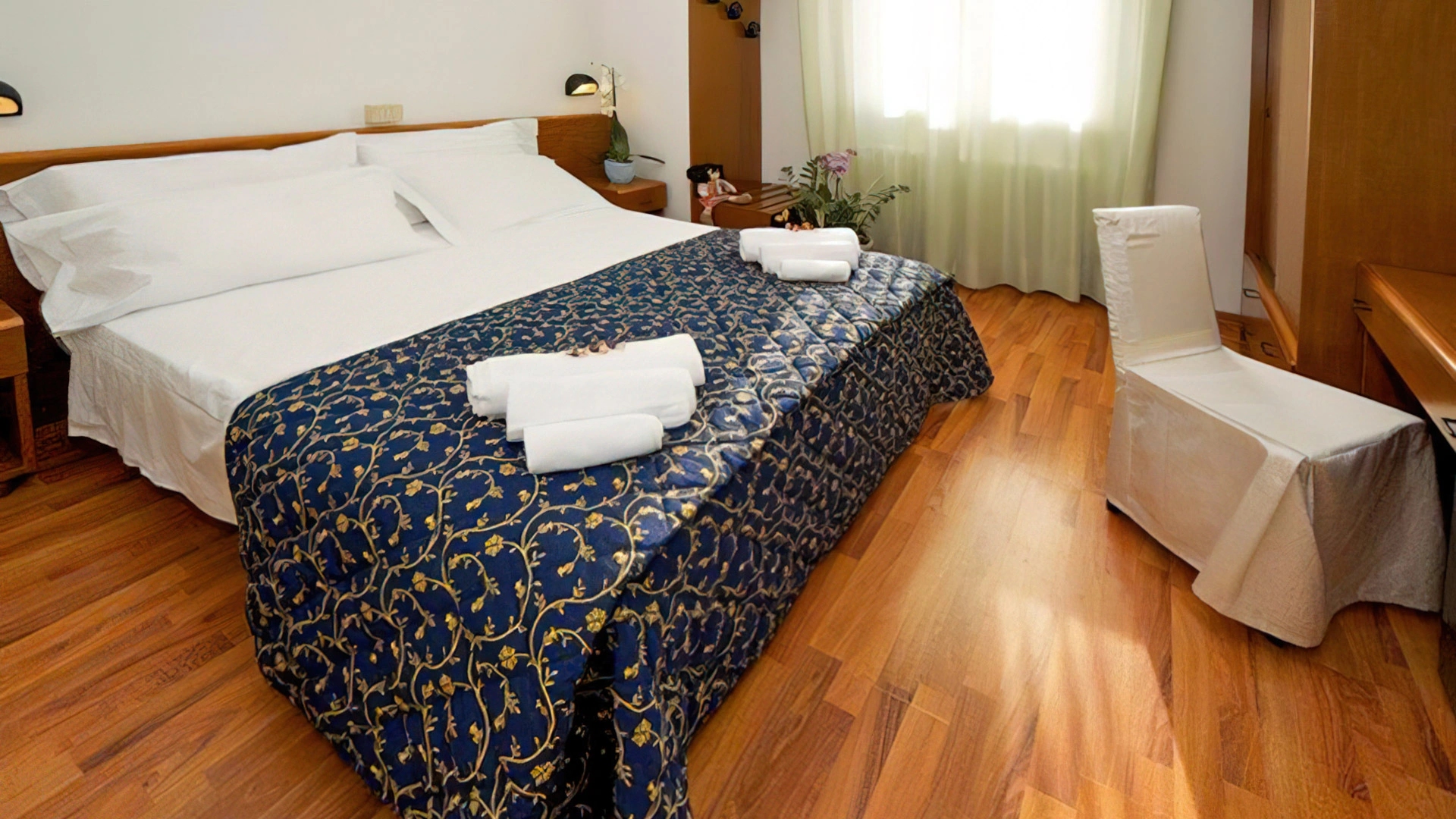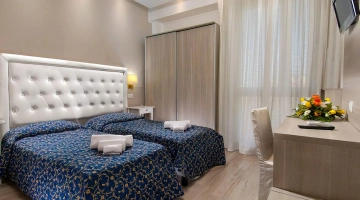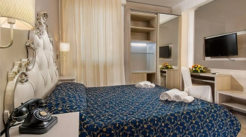 Les chambres sont équipées de climatisation, TV, coffre-fort, téléphone, minibar non approvisionné, salle de bain avec sèche-cheveux, douche. Certaines chambres disposent d'un balcon et d'une vue sur la mer.