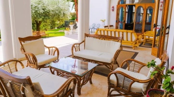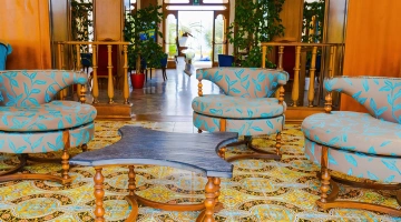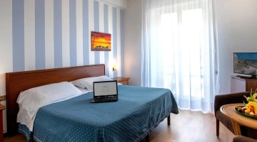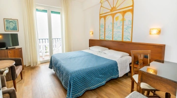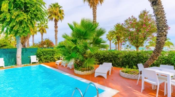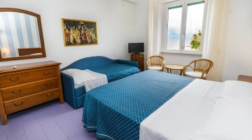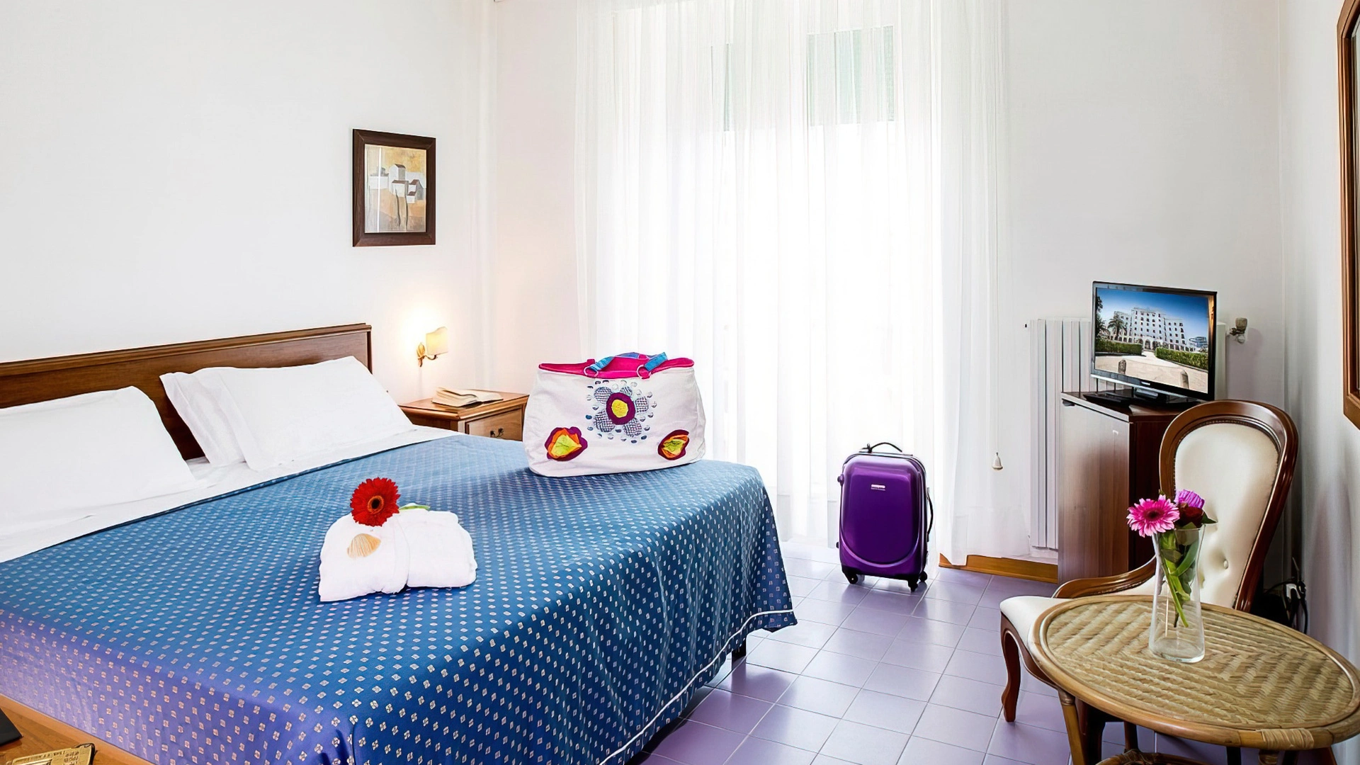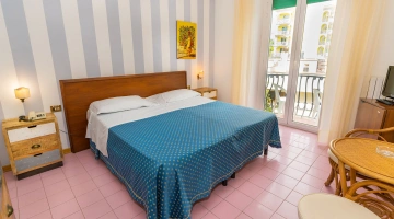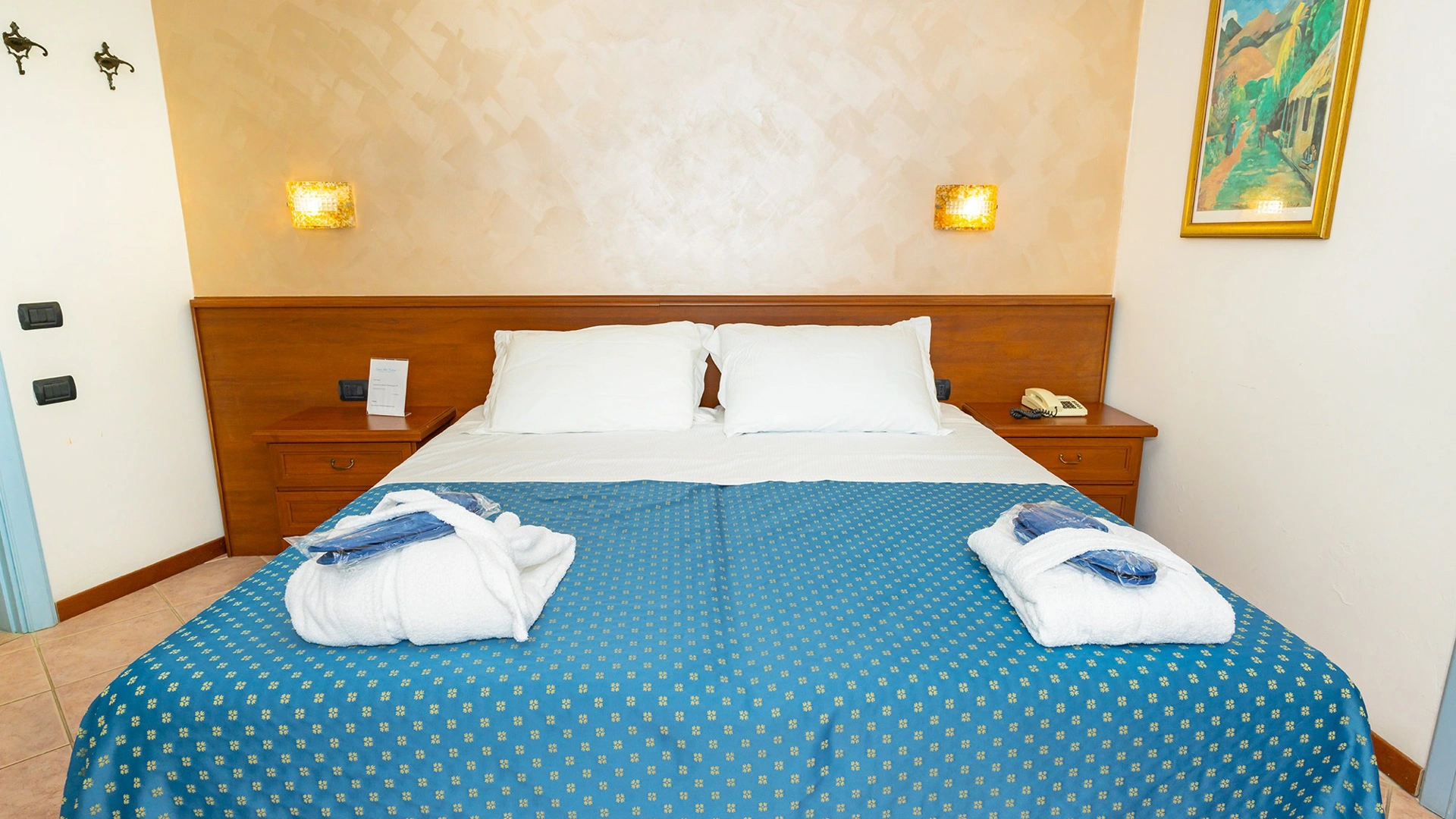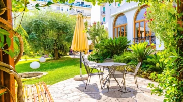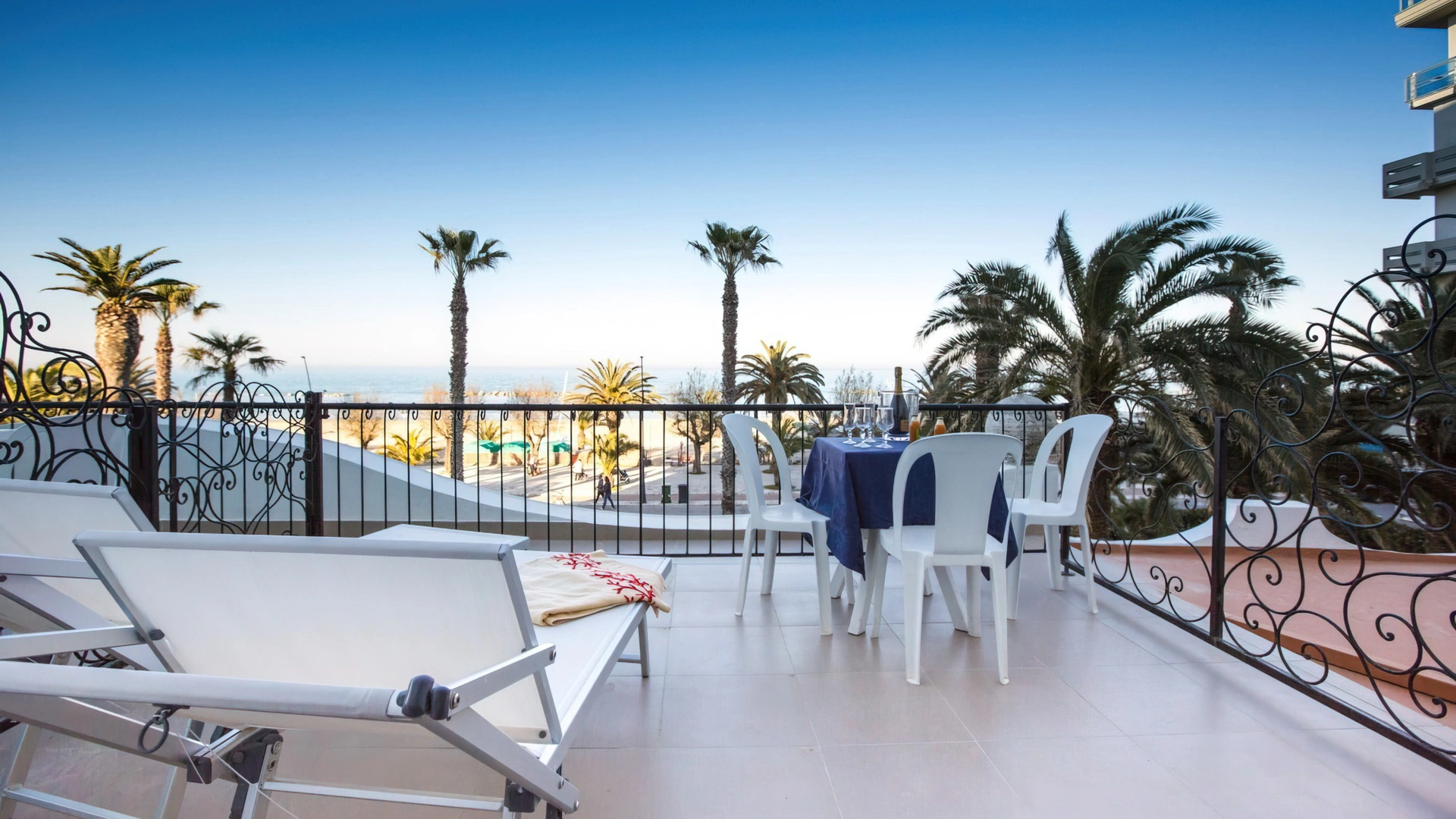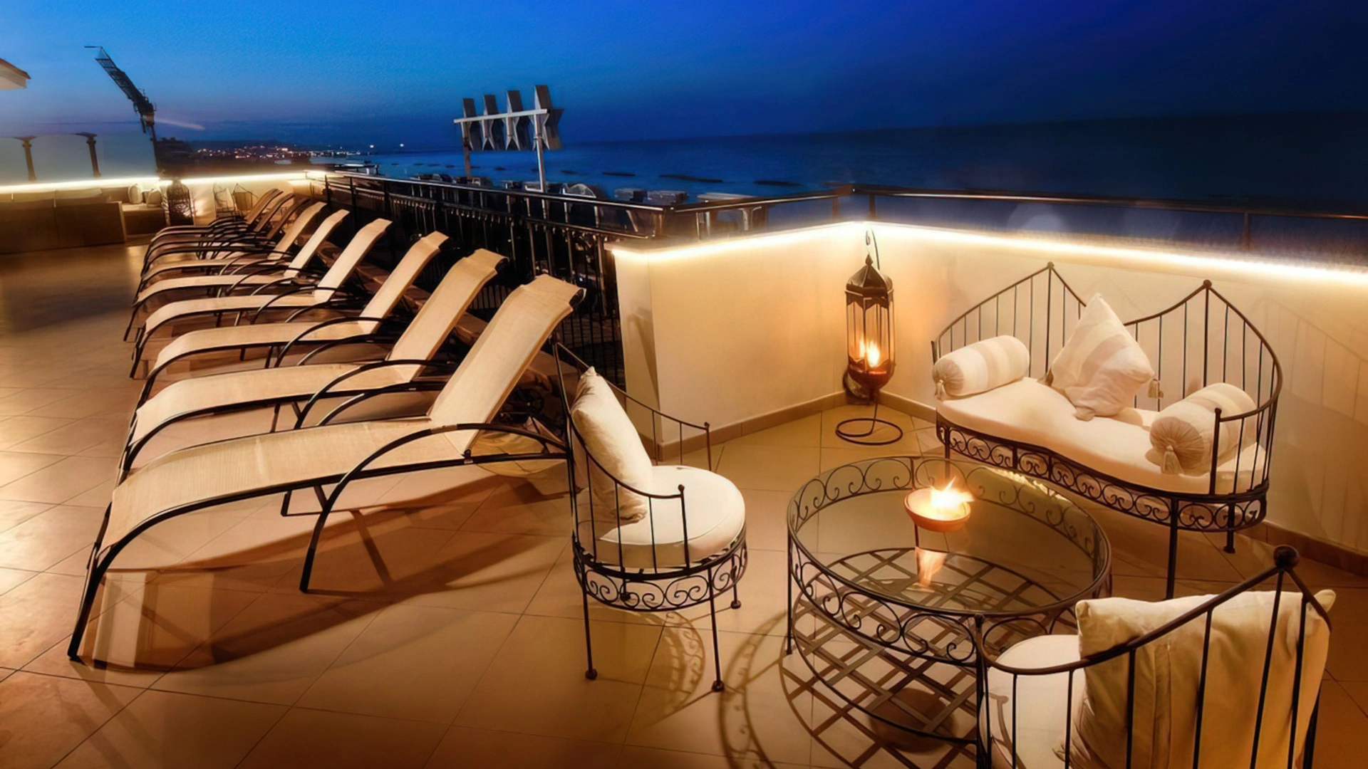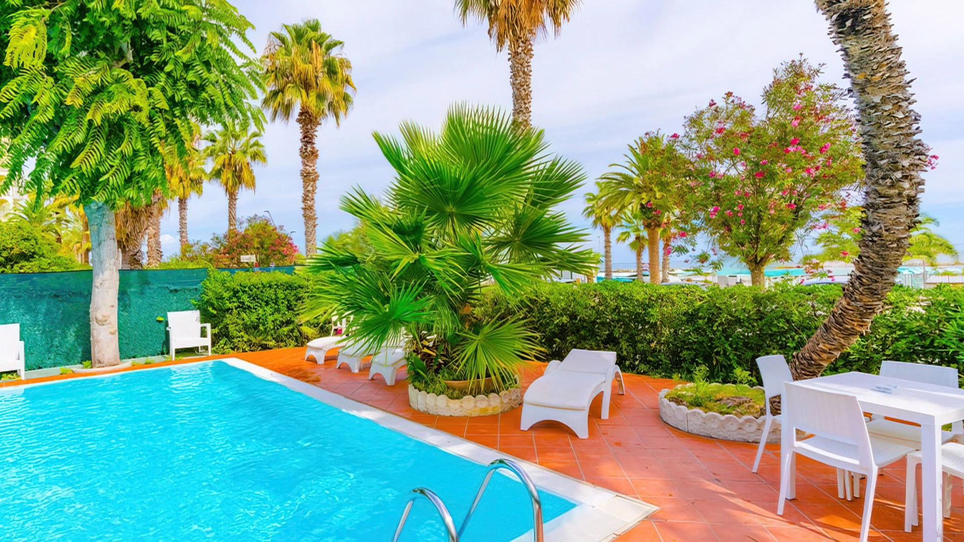 L'établissement propose des chambres, des solutions familiales avec entrée commune et espaces séparés, ainsi que des hébergements plus spacieux et plus élégants. Tous les logements sont équipés de la climatisation, du Wi-Fi, de la télévision par satellite avec chaînes Sky, d'un coffre-fort, d'un téléphone, d'un minibar et d'une salle de bain privative avec douche et sèche-cheveux. Certaines chambres disposent d'un balcon avec vue sur la mer. Les hébergements les plus exclusifs bénéficient de vastes terrasses face à la mer, équipées d'une mini-piscine, tandis que d'autres sont également agrémentés d'un sauna et d'un espace bien-être privé.