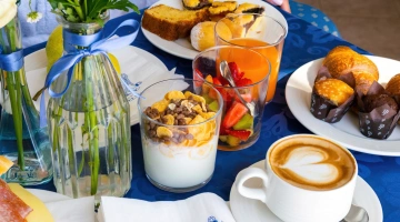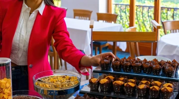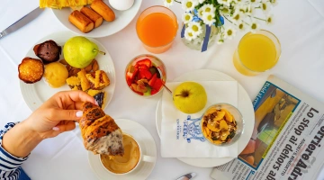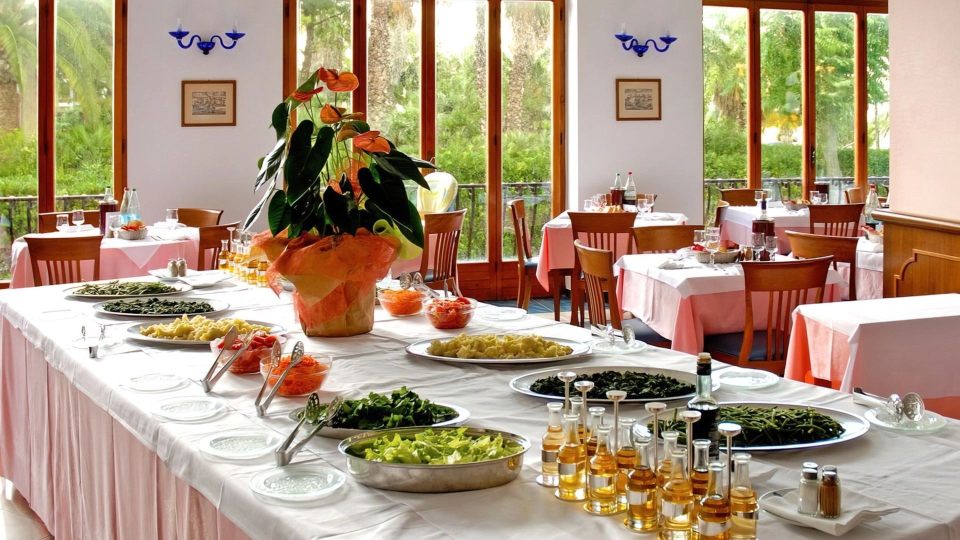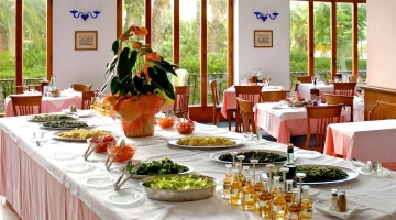 Le petit-déjeuner est un buffet sucré et salé. Le restaurant propose des plats typiques et propose sur demande des produits pour intolérances ou régimes alimentaires particuliers. Panier-repas disponible.