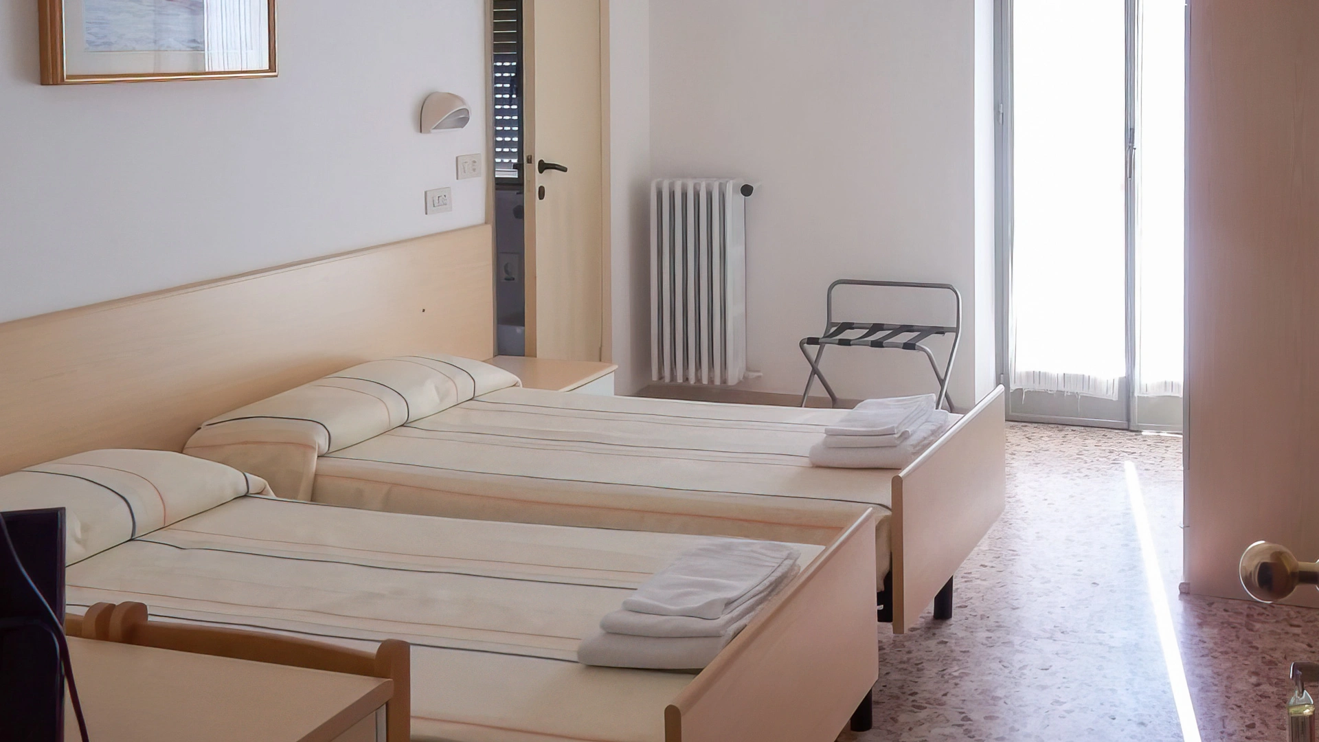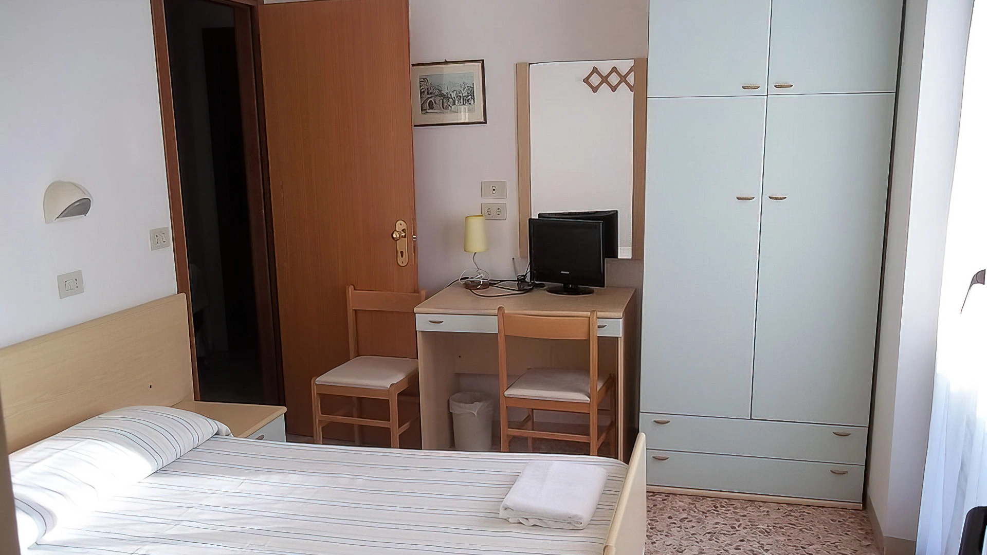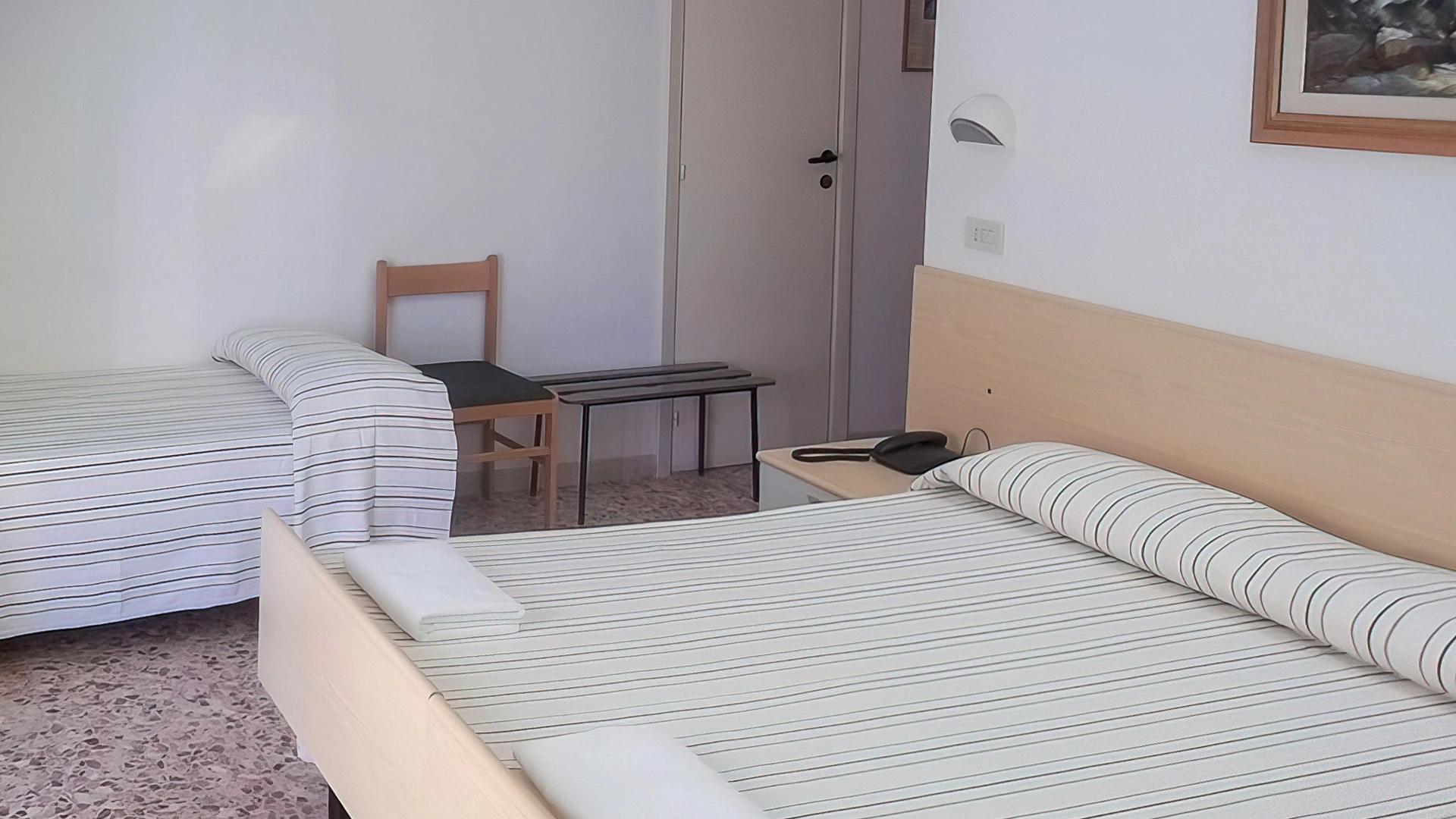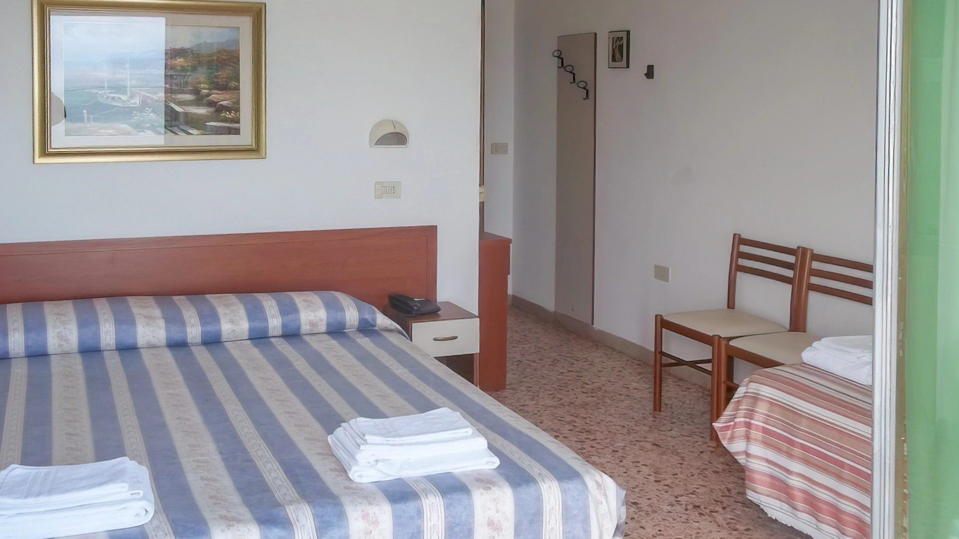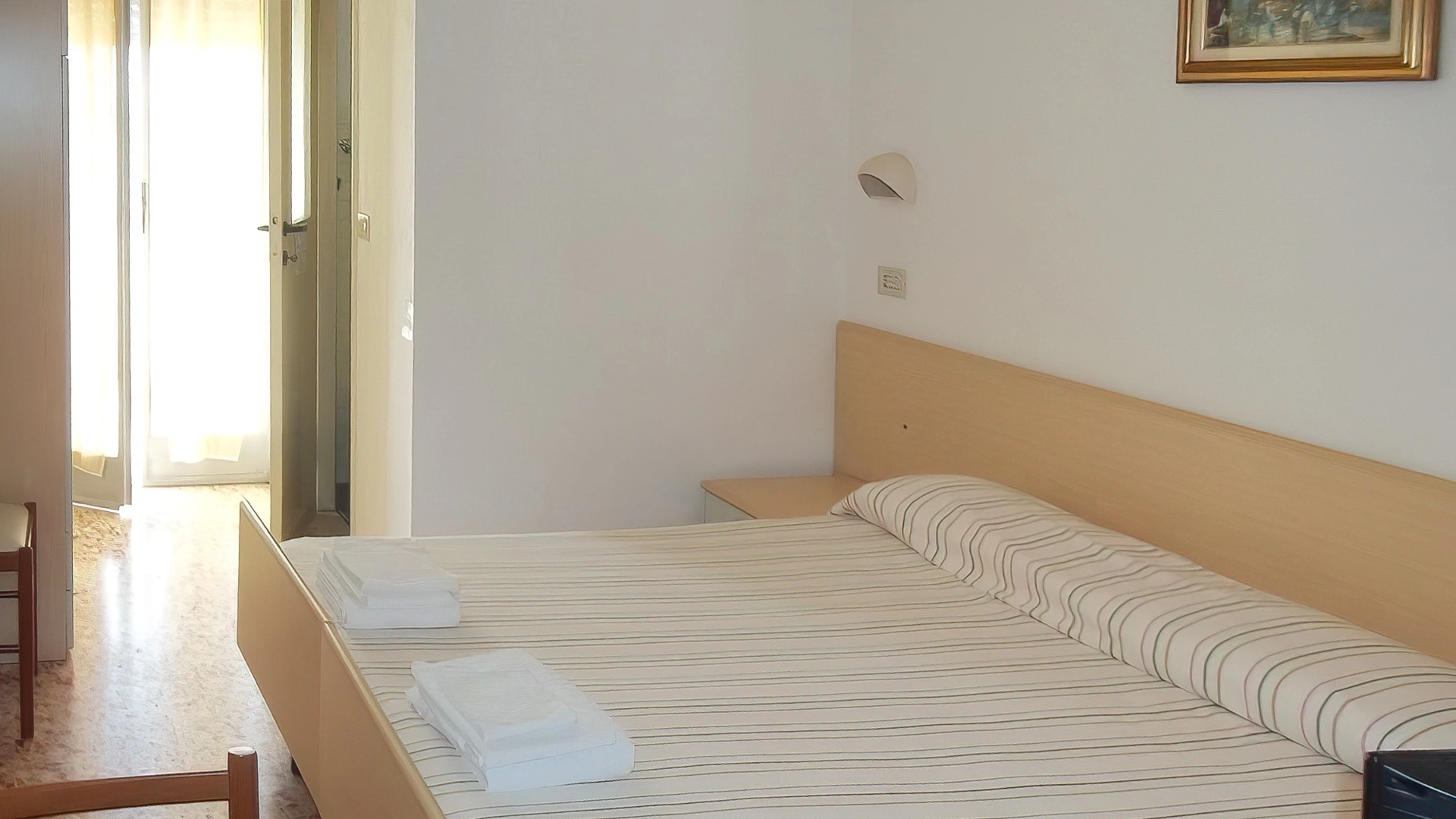 Les chambres sont équipées de fibre Wi-Fi, TV, coffre-fort, téléphone, balcon, salle de bain avec douche ou baignoire (avec rideau, dans les chambres triples), sèche-cheveux sur demande et kit de courtoisie. Certaines chambres sont équipées de la climatisation et la plupart ont vue sur la mer.