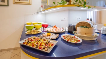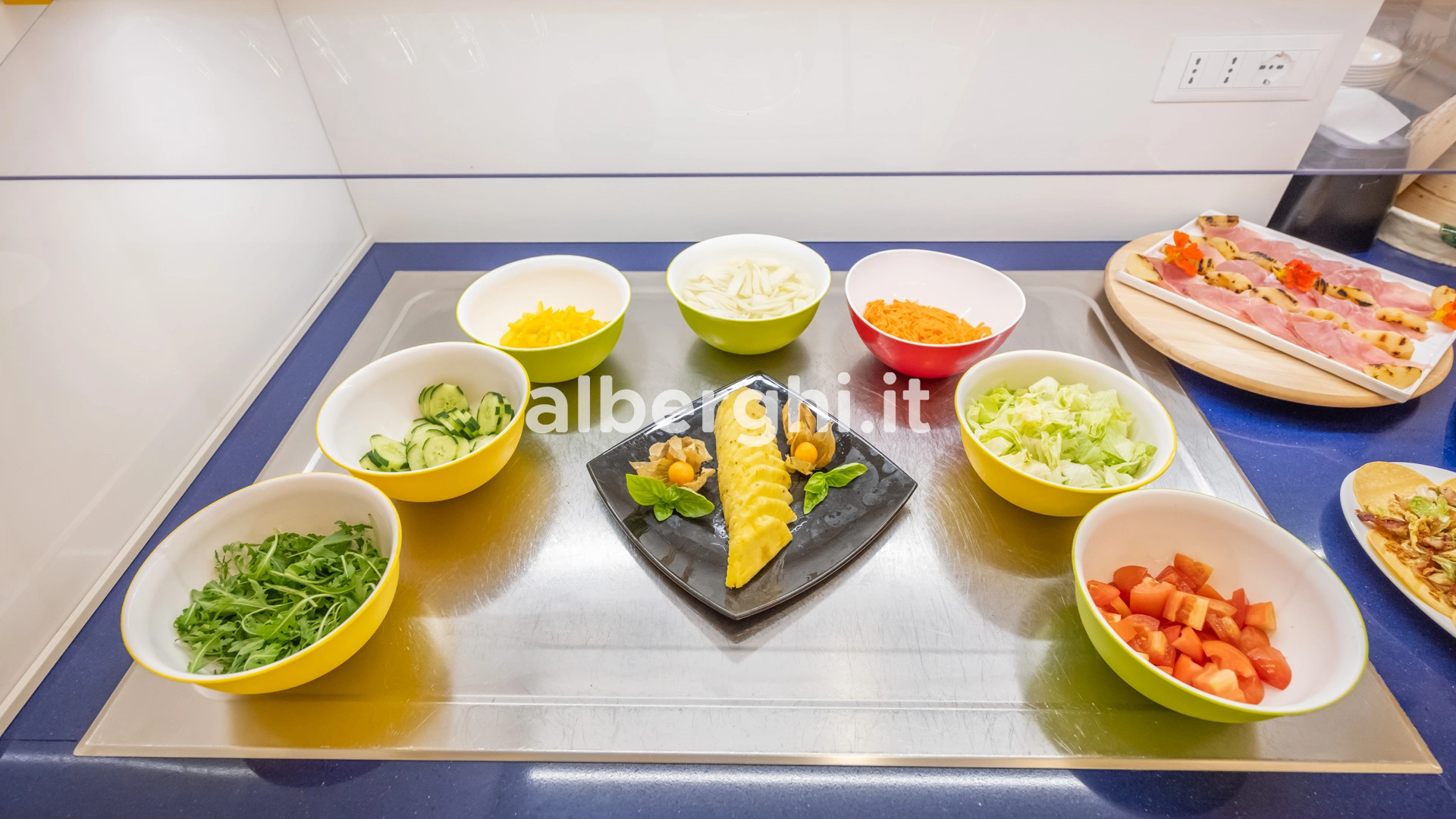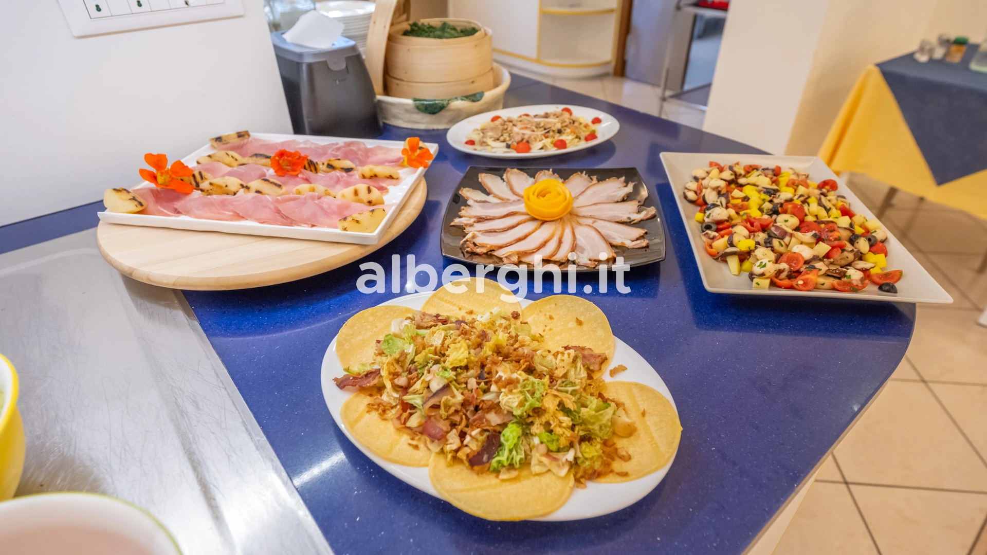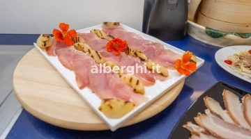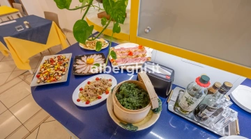 Le petit-déjeuner, servi sous forme de buffet, comprend des options sucrées et salées. Le restaurant propose deux menus au choix et, sur demande, des plats végétariens, végétaliens et sans gluten. Les pâtes et les desserts sont faits maison.