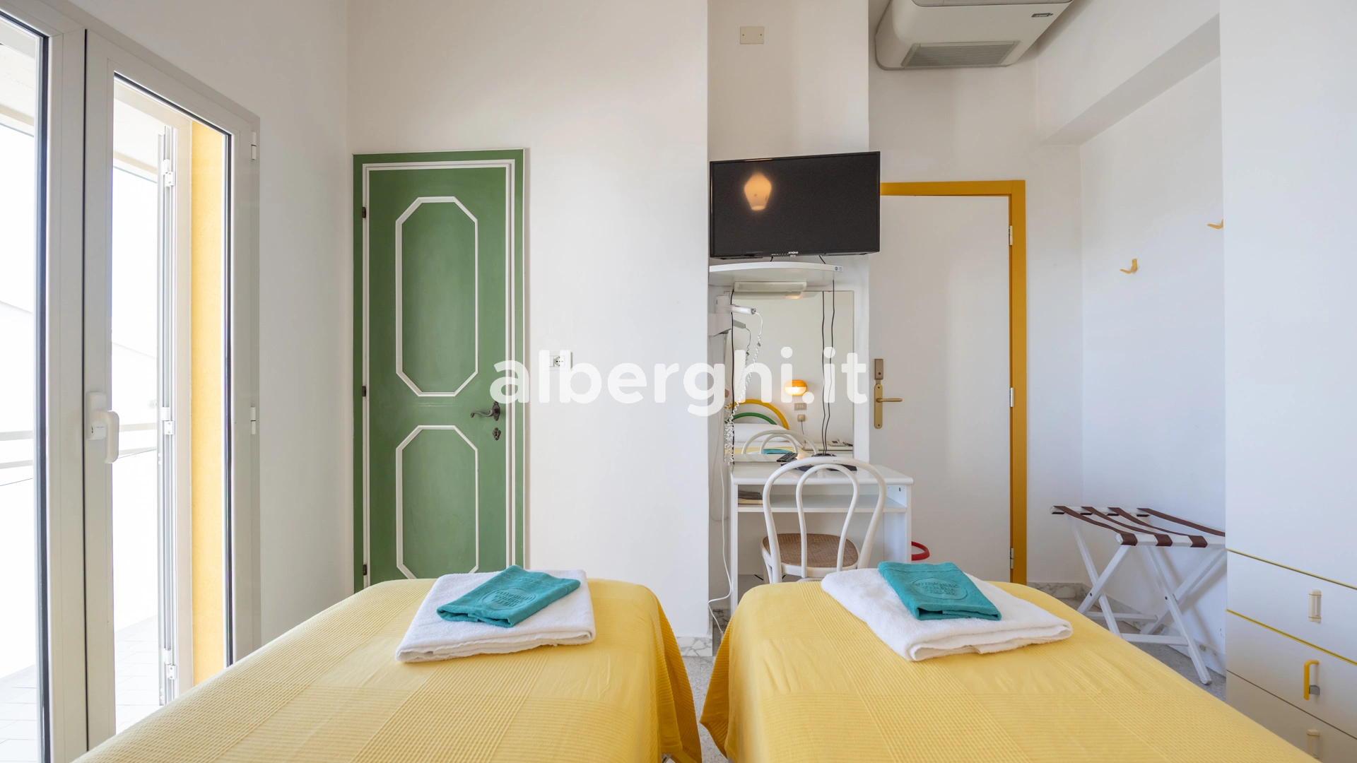 Les chambres sont équipées d'un balcon, d'une télévision, d'un coffre-fort, de la climatisation, d'une connexion Wi-Fi, d'un téléphone et d'une salle de bain avec douche (avec cabine ou rideau), sèche-cheveux et set de courtoisie, minibar (sur demande et payant), vue sur la mer dans la plupart des chambres. Des solutions familiales sont disponibles.