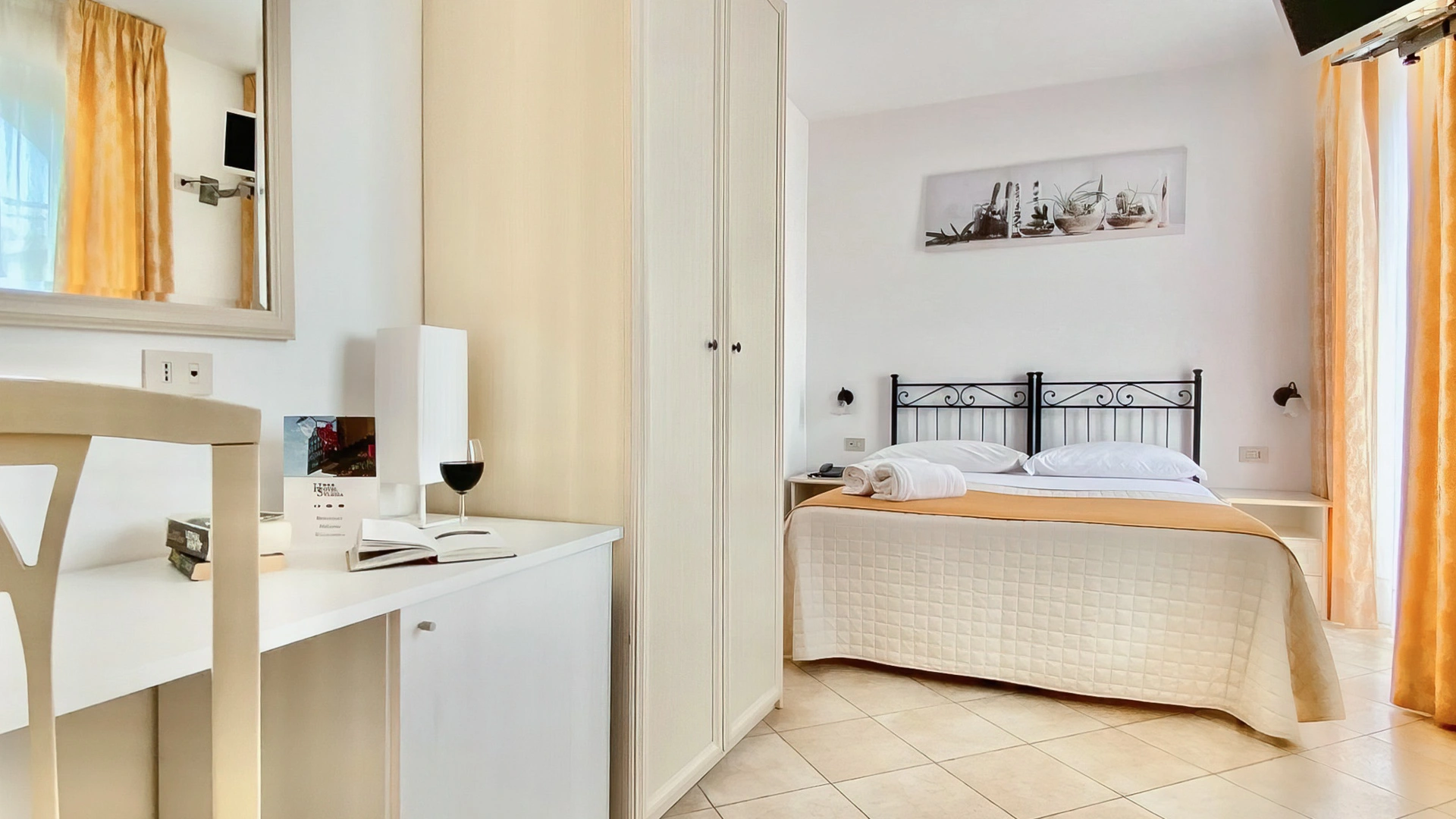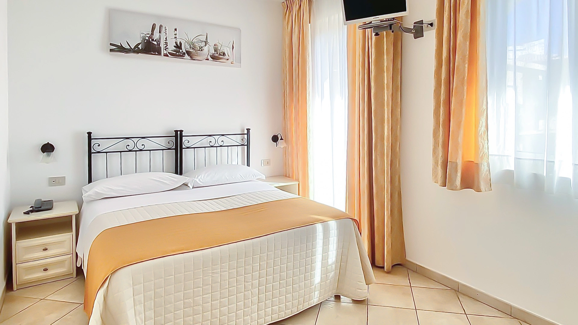 Toutes les chambres sont meublées dans un style méditerranéen et disposent d'un balcon, de la climatisation/chauffage individuel, du Wi-Fi, de la télévision par satellite, d'un minibar, d'un coffre-fort et d'une salle de bains privative avec sèche-cheveux et articles de toilette gratuits.