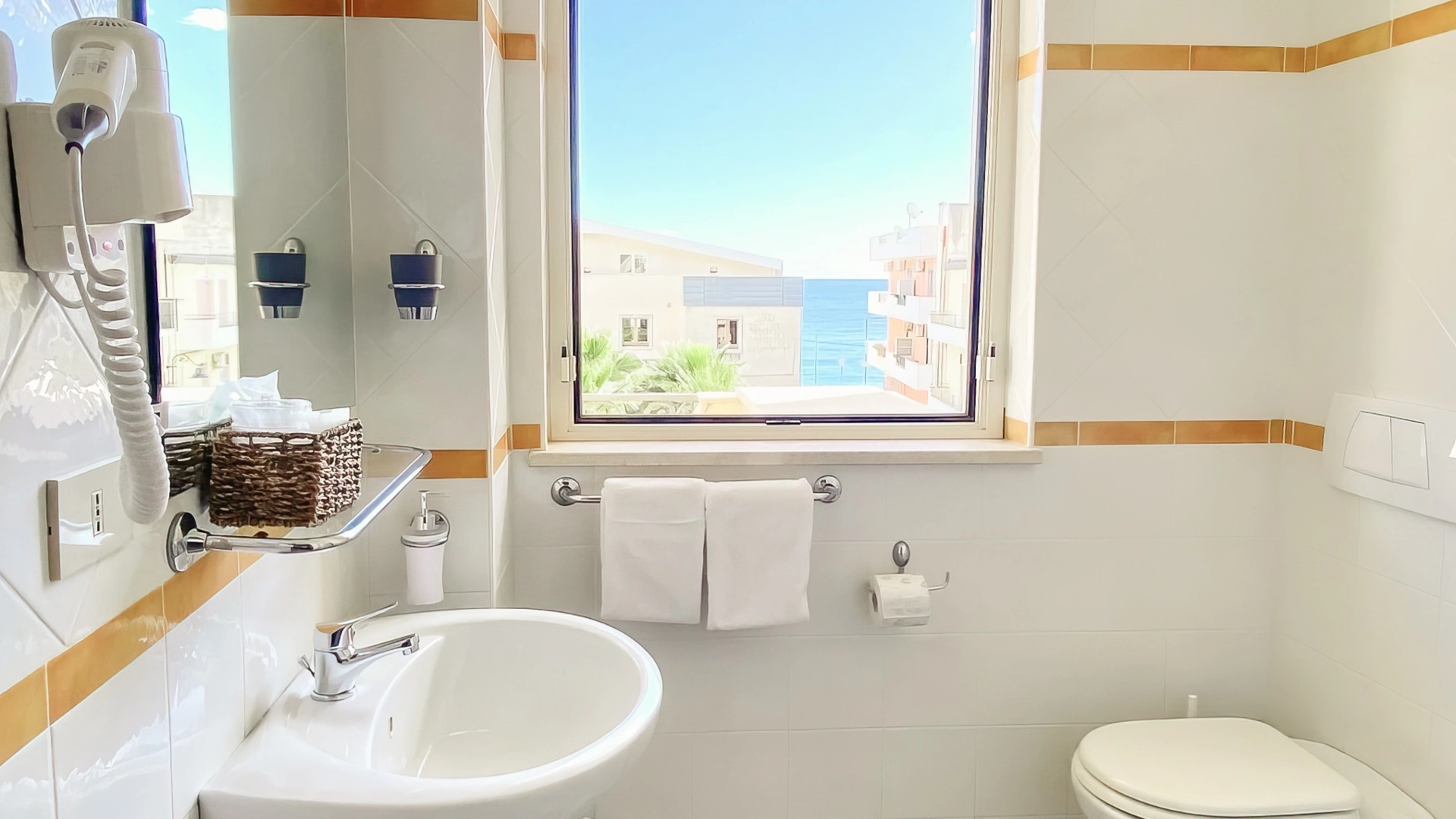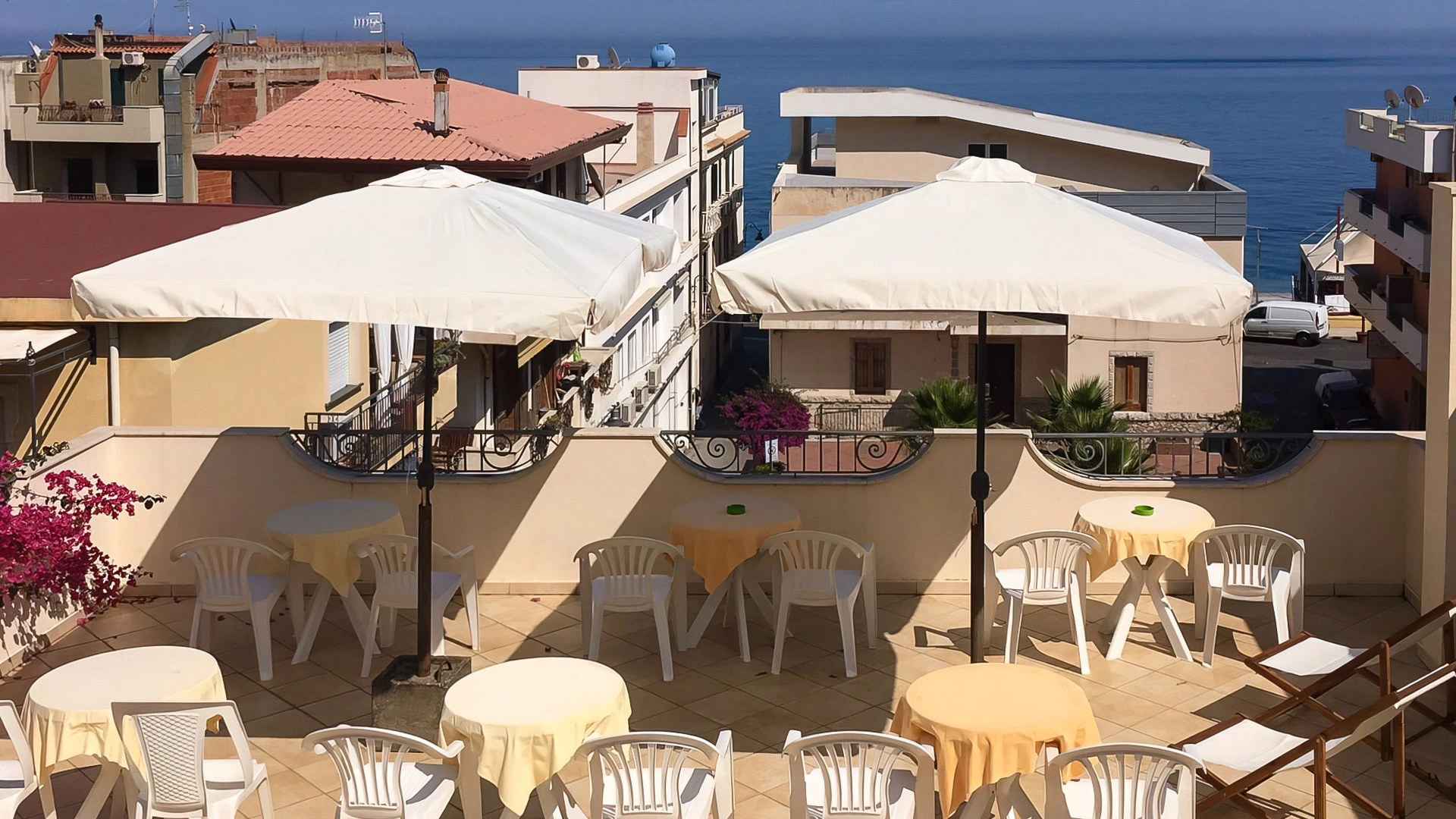 Certaines chambres disposent d'un balcon donnant sur la mer ou sur le jardin situé devant l'hôtel.