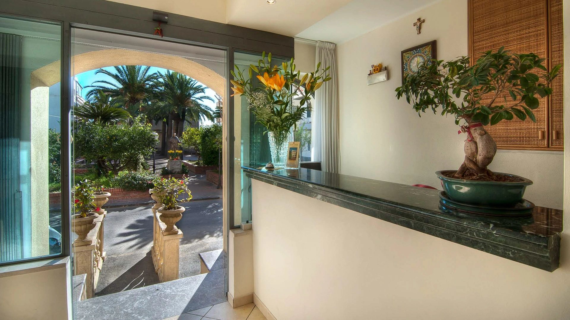 L'hôtel est situé sur l'avenue principale de Letojanni, à deux pas de la plage. Le centre historique et la plage publique sont à moins de 10 minutes à pied, tandis que la gare est à moins de 15 minutes. Le centre de Taormina est à environ 20 minutes en voiture, et le port de Messine et l'aéroport de Catane à environ 50 minutes. On accède à la région par l'autoroute A18, en prenant la sortie Taormina puis en continuant sur la SS114 en direction de Letojanni.