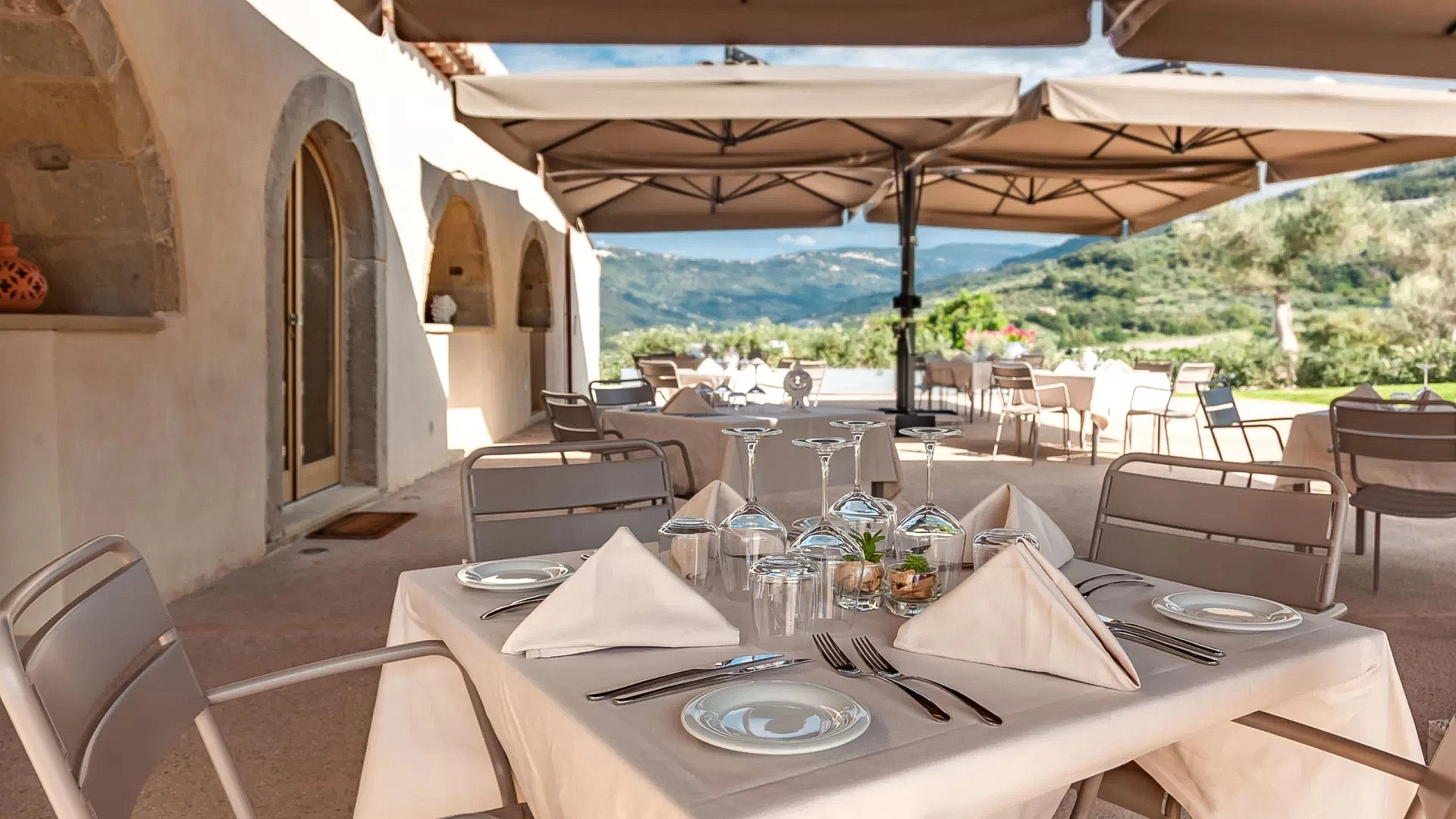 Un petit-déjeuner buffet continental est servi jusqu'à midi dans la salle à manger ou sur la terrasse. Des options sans gluten et adaptées aux régimes alimentaires particuliers sont disponibles. Le restaurant est ouvert sur réservation d'avril à octobre et propose une carte de saison mettant à l'honneur les saveurs traditionnelles de la Sicile.