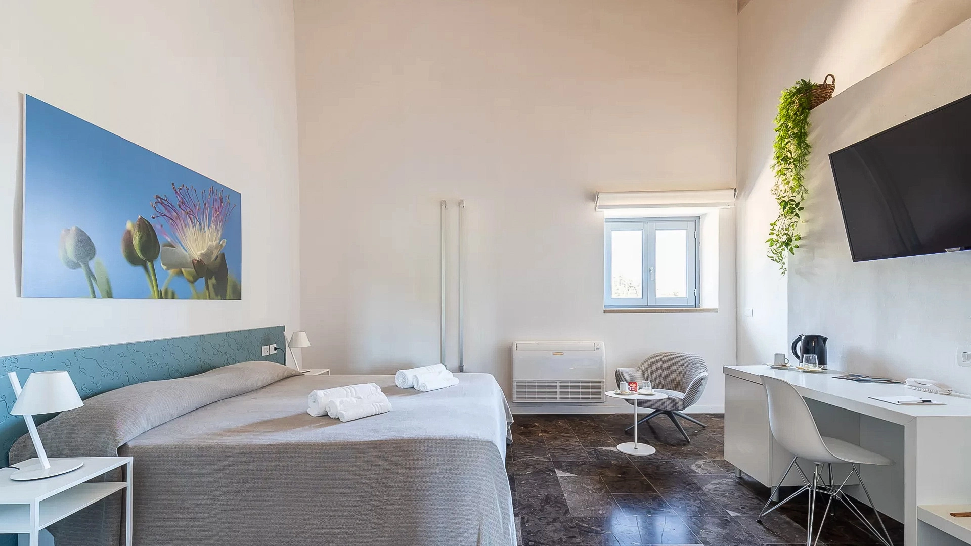 L'établissement compte 9 chambres, toutes équipées de la climatisation, du Wi-Fi, d'un minibar, d'une télévision Sky de 50 pouces, d'une salle de bains avec douche et sèche-cheveux. Certaines disposent d'un espace extérieur privé.