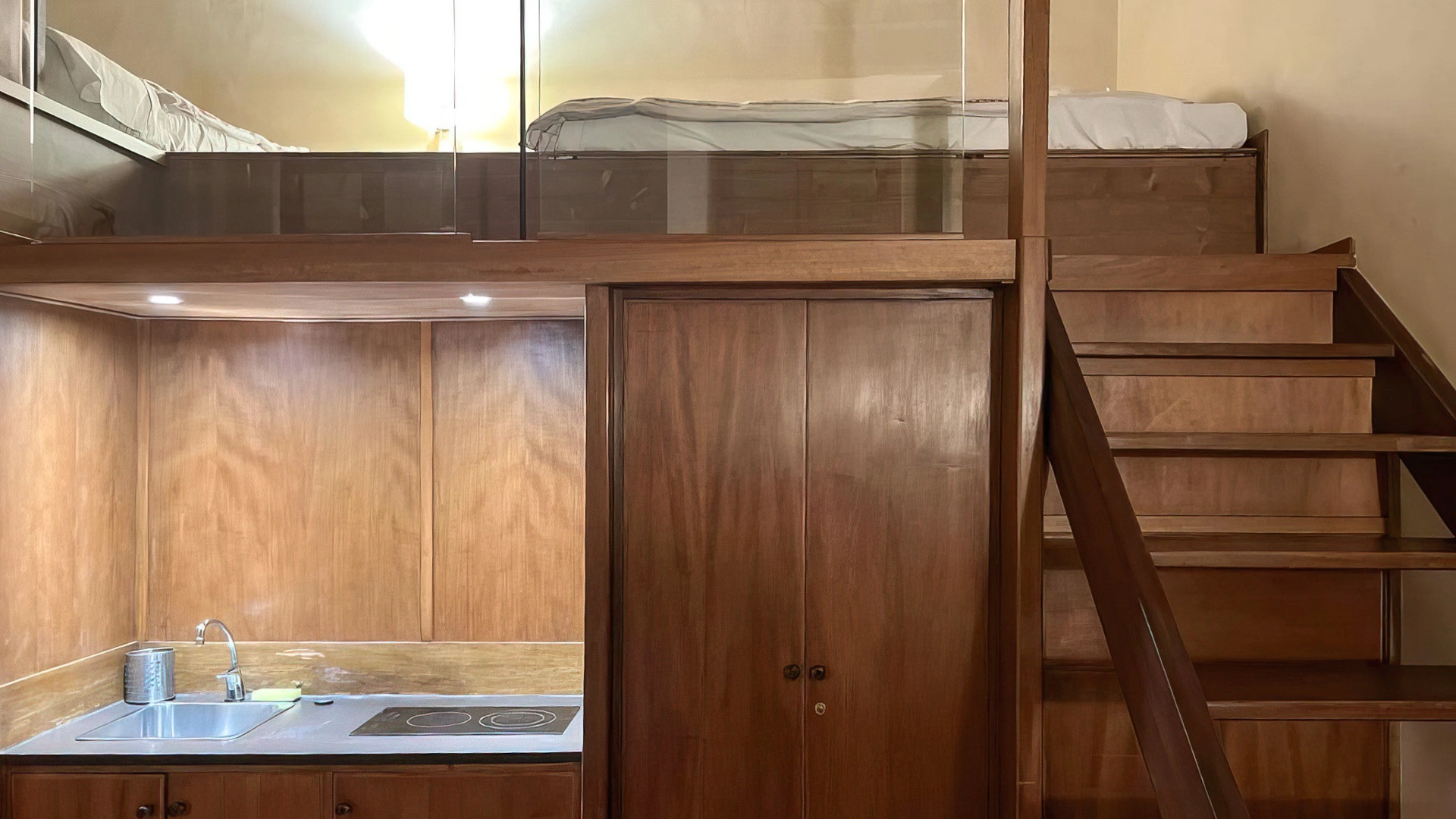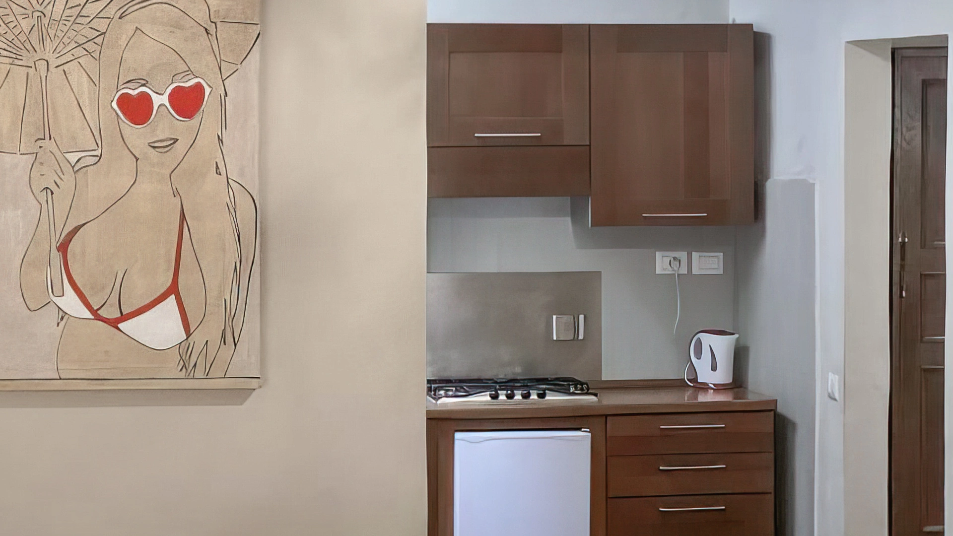L'appartement, pouvant accueillir jusqu'à 4 personnes, comprend une kitchenette avec réfrigérateur, un salon avec télévision et une salle de bains avec douche.