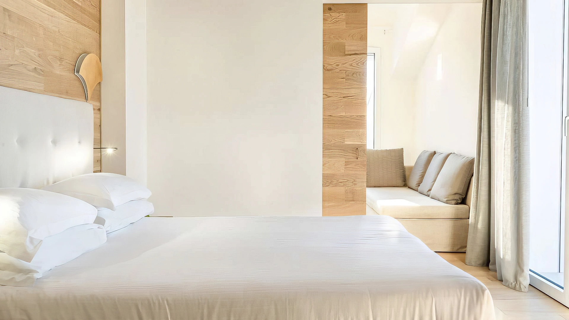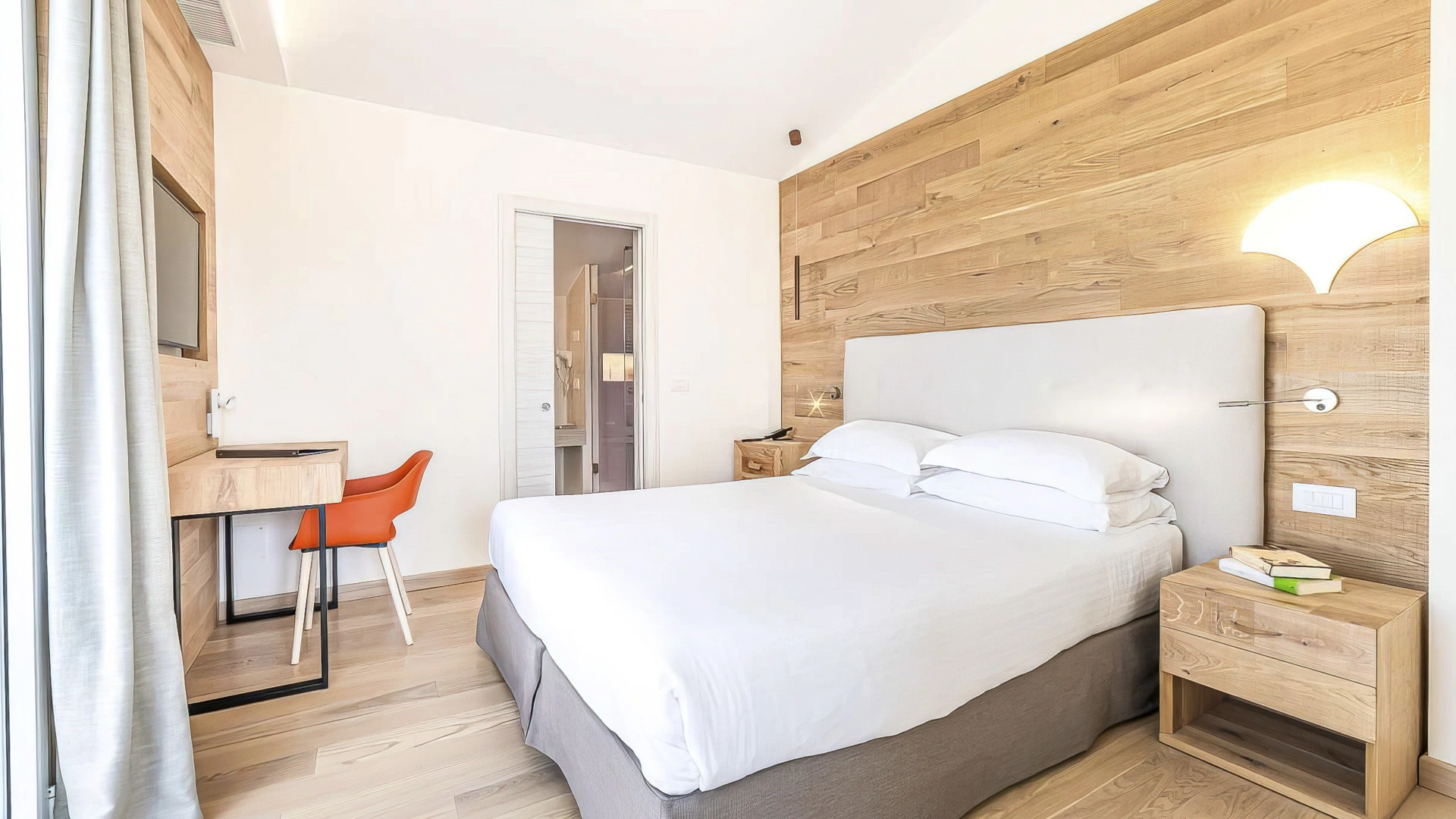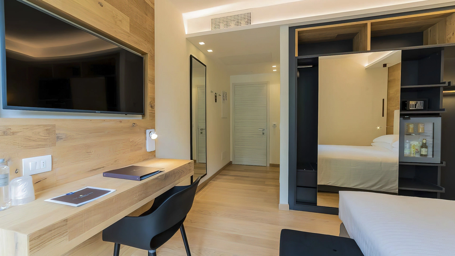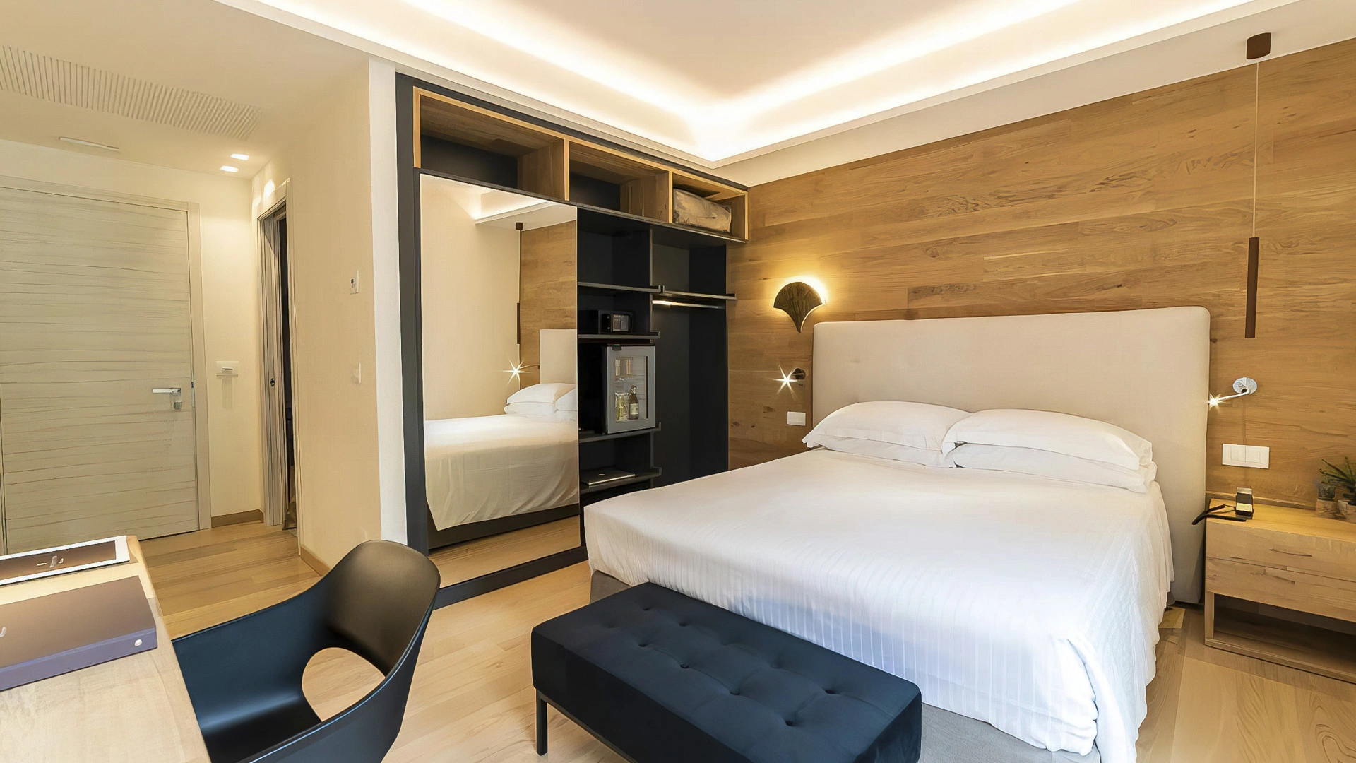Des solutions familiales avec coin salon et canapé-lit sont disponibles, ainsi que des chambres plus grandes avec deux espaces nuit, terrasse privée et baignoire d'hydromassage. Certaines comprennent également un dressing pour plus de confort.