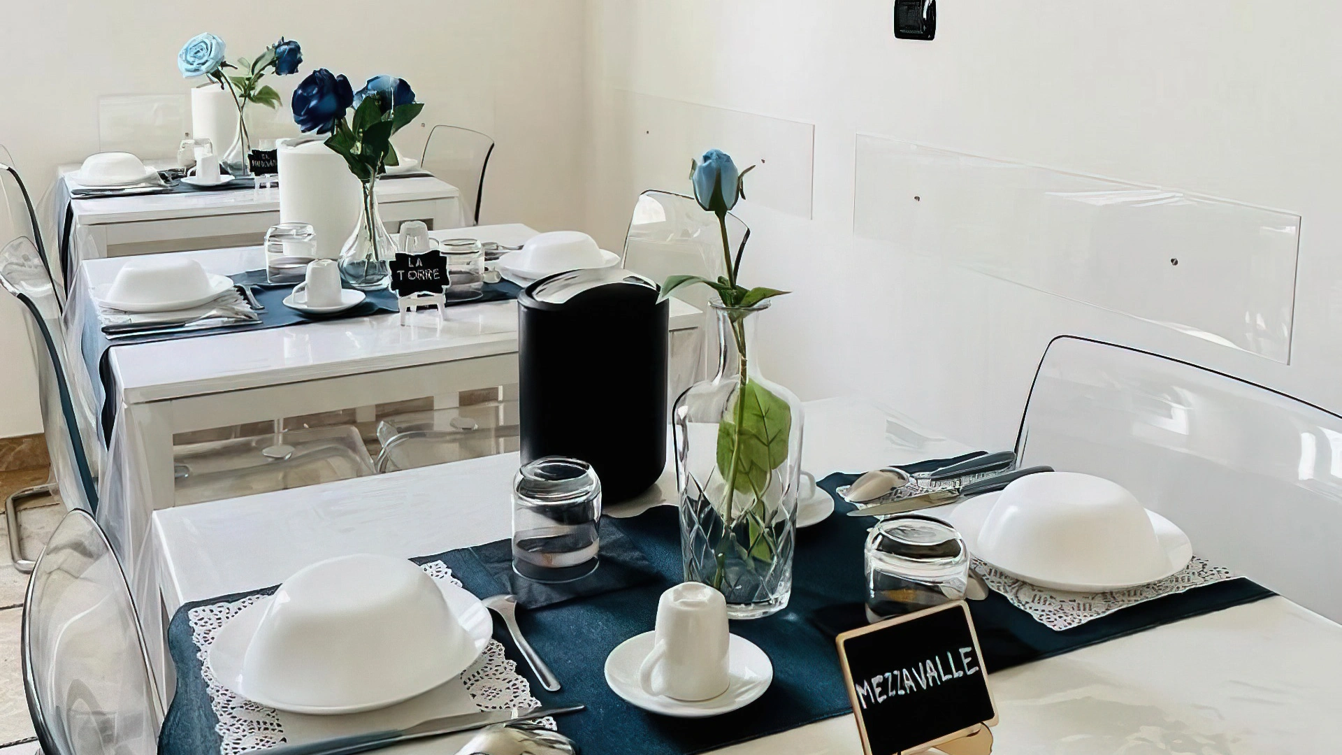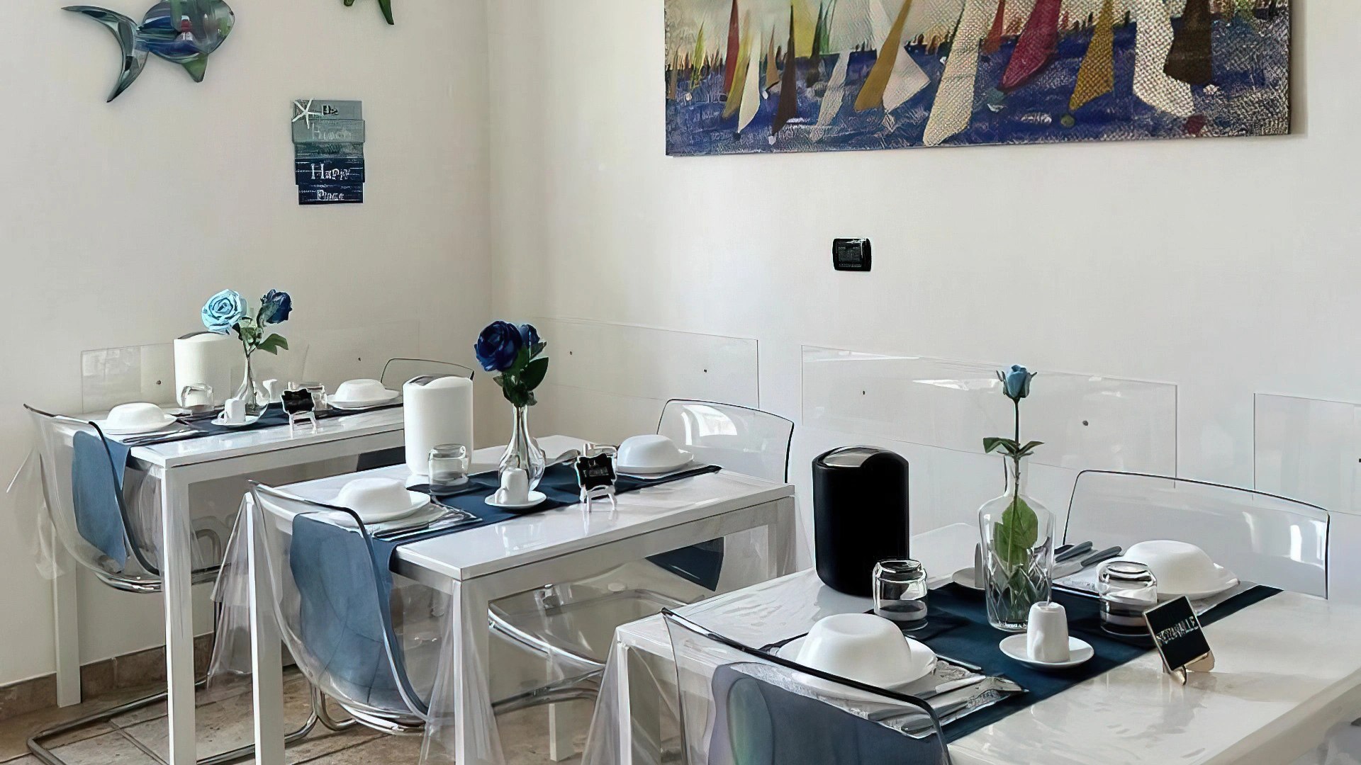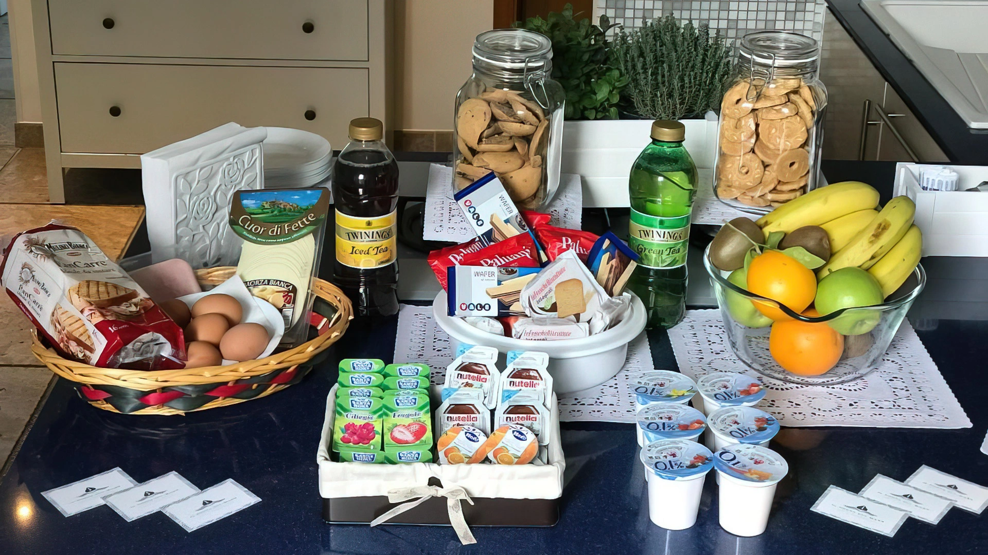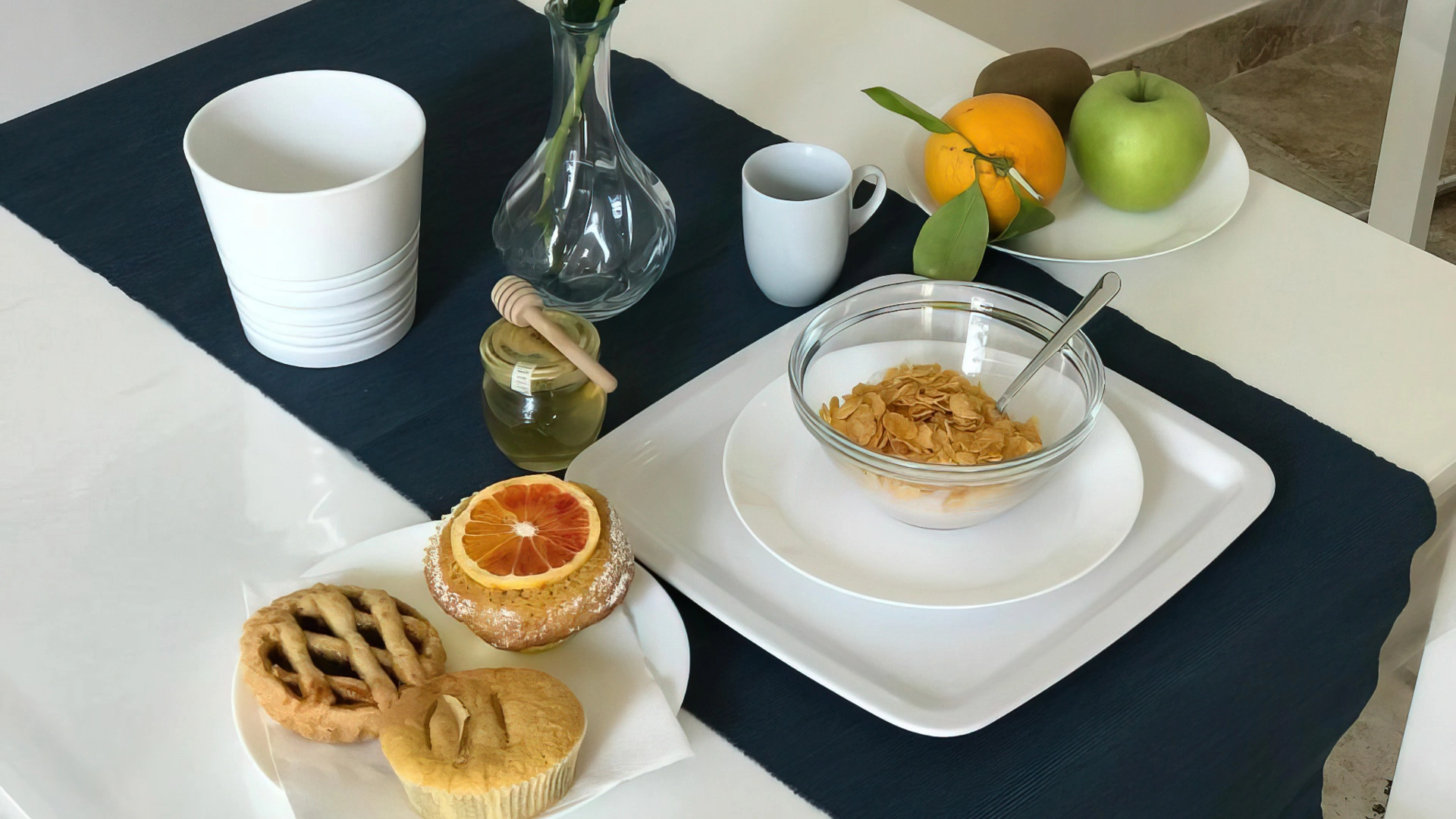 La colazione a buffet prevede principalmente caffè e dolci, anche se non manca una piccola selezione di prodotti salati. Viene servita in una confortevole saletta con tavolini e televisione. La cucina comune è attrezzata con frigorifero e forno a microonde per favorire una gestione autonoma dei pasti durante il soggiorno dei clienti.